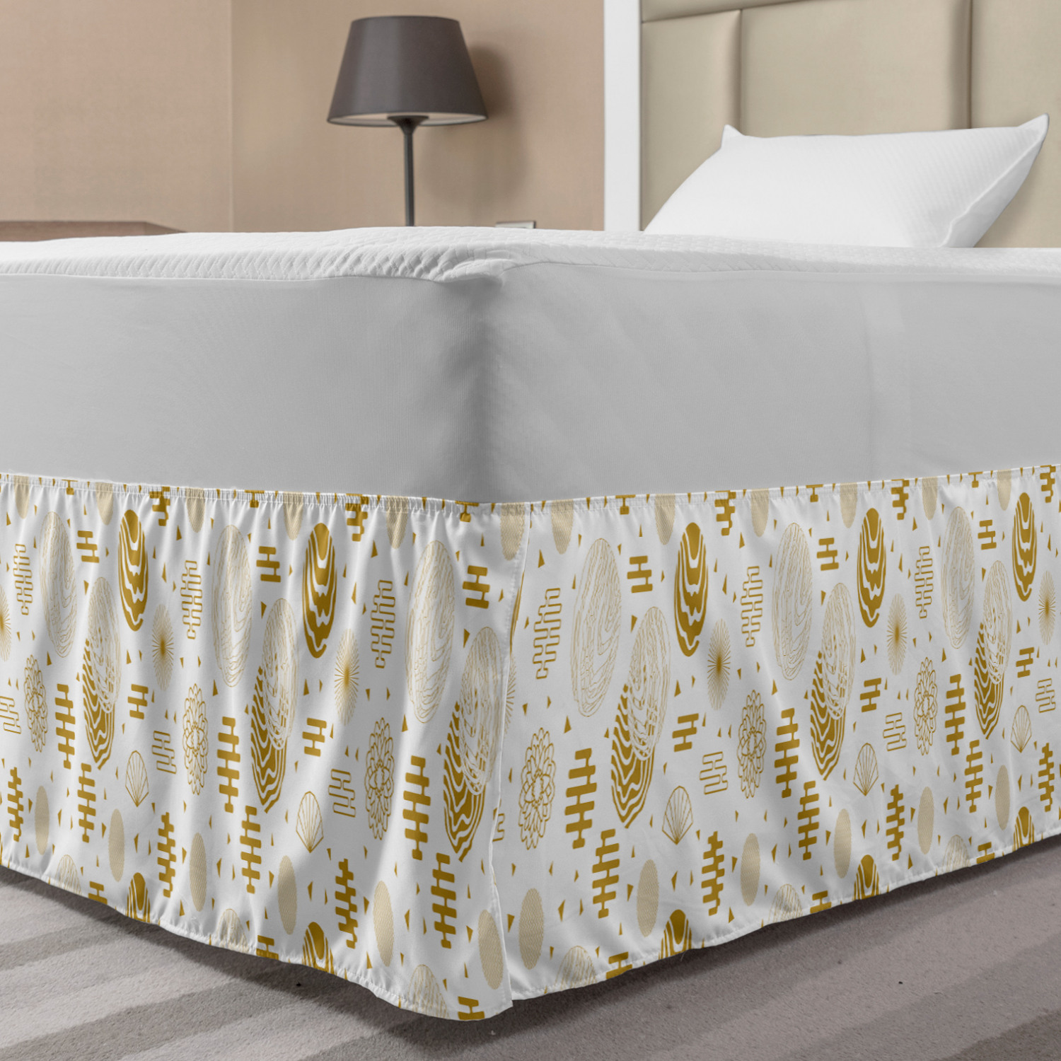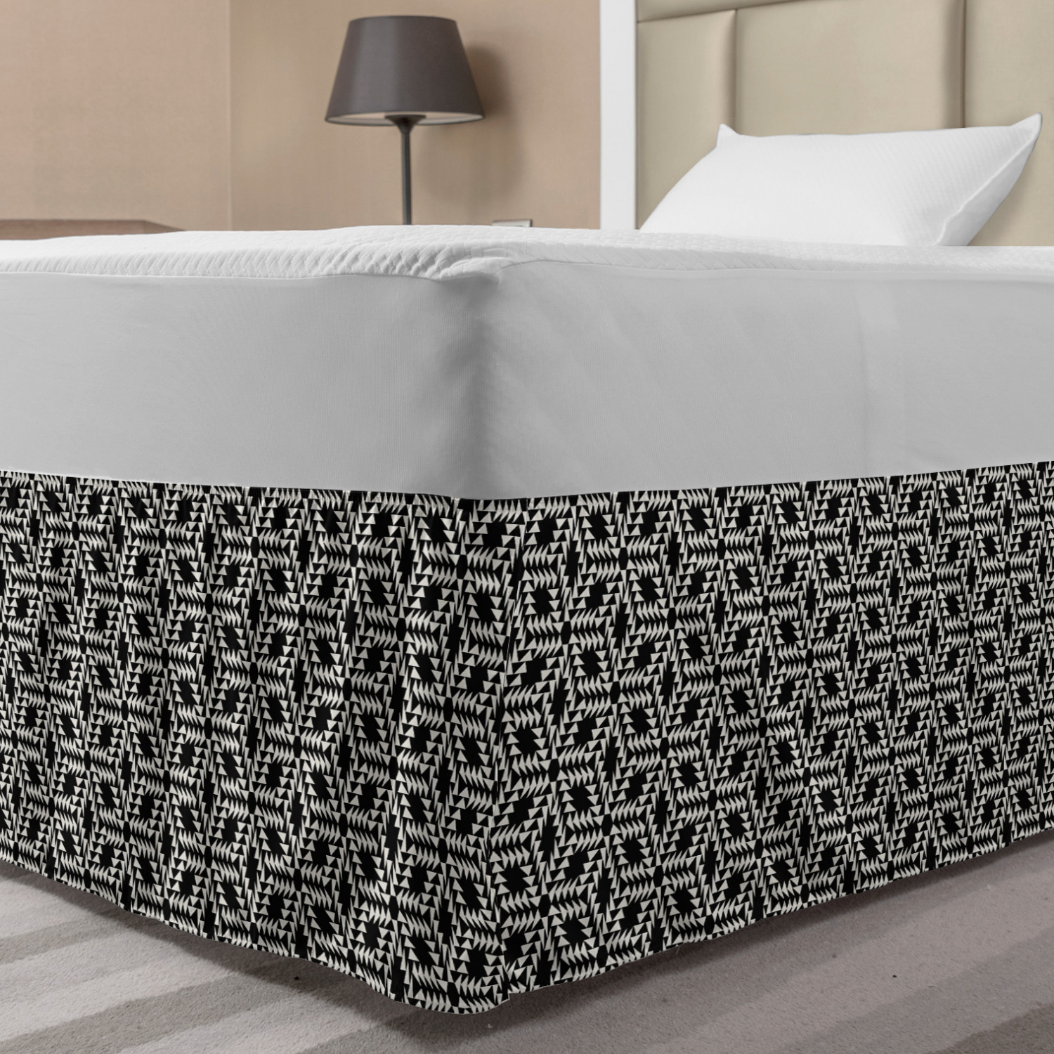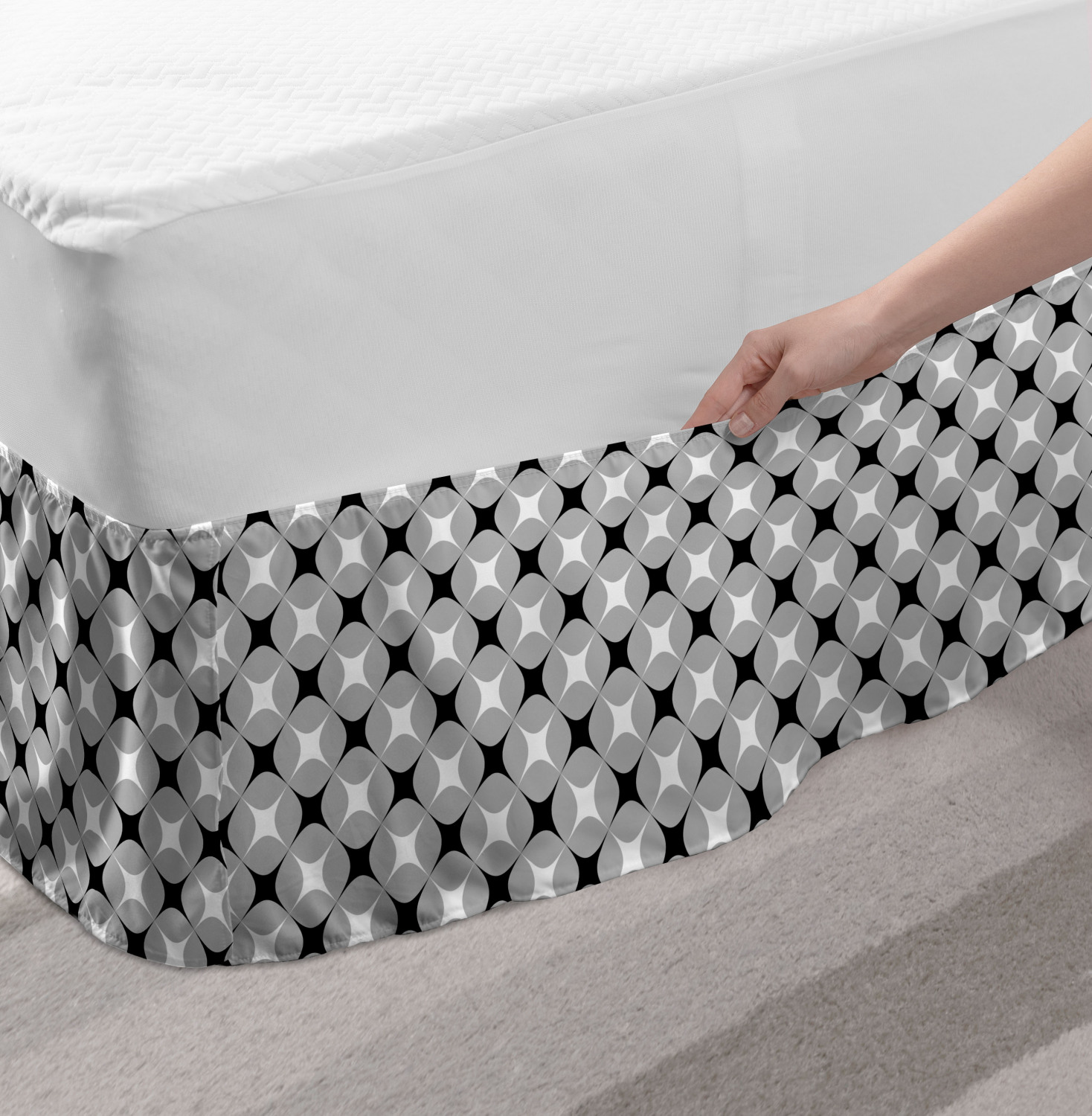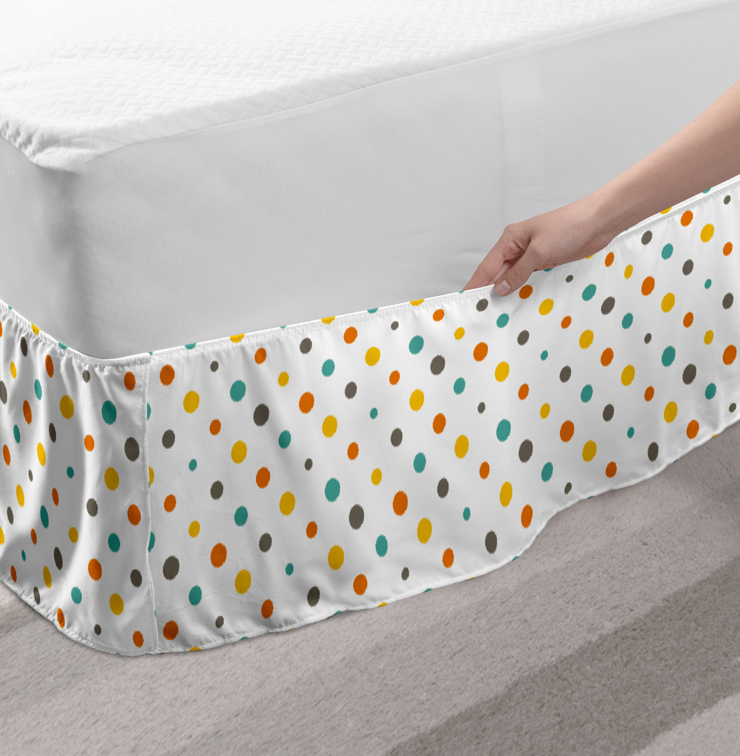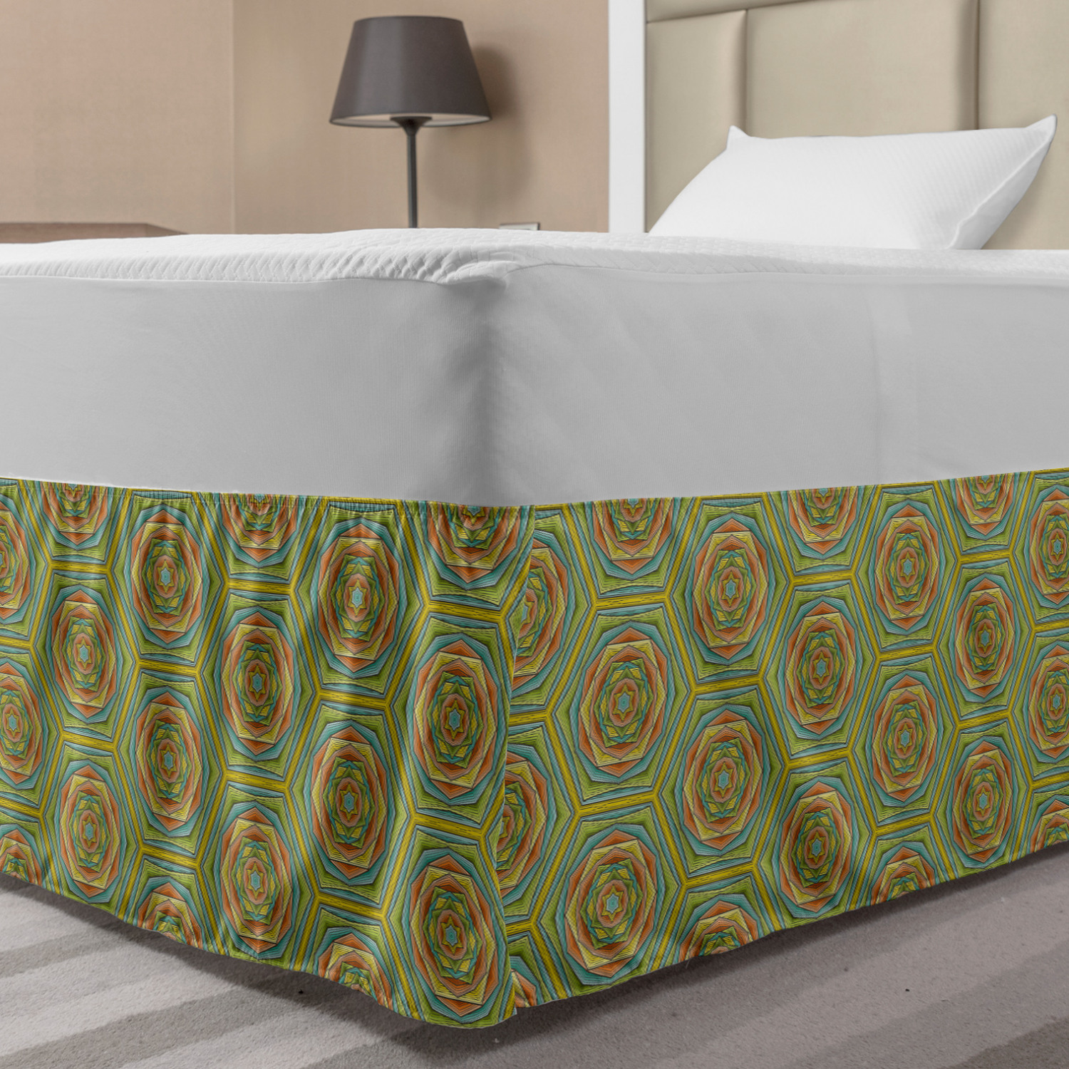 Ambesonne Geometric Items Bedskirt Elastic Wrap Around Skirt Gathered Design Ambesonne Bedskirt Bedroom Decor Wrap Around Elastic Bed Skirt Gathered Design In 4 sizes. 15 inches drop. All around wrap gathered. MADE IN TURKEY. MADE FROM - High quality 100% brushed soft microfiber fabric. Suitable for most types of beds. FEATURES - Install easily with elastic straps wrap under the mattress. Stays in place. Split corners. MACHINE WASHABLE - On cold cycle. Dryer safe and iron easy. No fading colors. For bedroom decor. PRINTED - With state of the art digital printing technology. Long-lasting bold colors & clear image. Change your bedroom's style with a simple touch of bedskirt! Our bedskirts are very easy to use; you can easily put around this elastic bed skirt and fasten up with straps under your mattress. Bring new energy to your master suite with colors and thousands of different patterns. You can easily match your bedding sets with our varied bed skirts. You can play safe and create vintage decor easily with these bed ruffles that belongs to retro-times. But you can ask for novelty and combine this piece with your modern choices. Our bed skirt is smartly designed with modern split corners. And you don't need to worry if it gets dusty or dirty. Just machine wash in the cold cycle and tumble dry on low. Thanks to new printing techniques the colors will not fade easily. Design a neat look for your bed with this gathered bed skirt. It is designed with a slim/low style ruffle to catch a more contemporary line. You can give these bed skirts as a Christmas, birthday, wedding gift, mother's day or house warming gift. It can be a great present for your mother, father, newly married friends, grandmother, aunt, uncle. The digital images we display have the most accurate color possible, however, due to differences in computer monitors, we cannot be responsible for variations in color between the actual product and your screen. Due to manual measurement, please kindly allow 1-2 cm discrepancy.