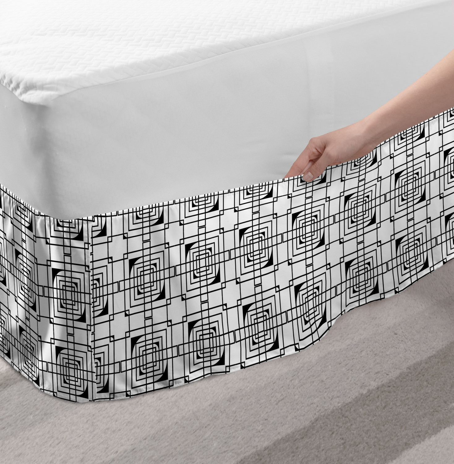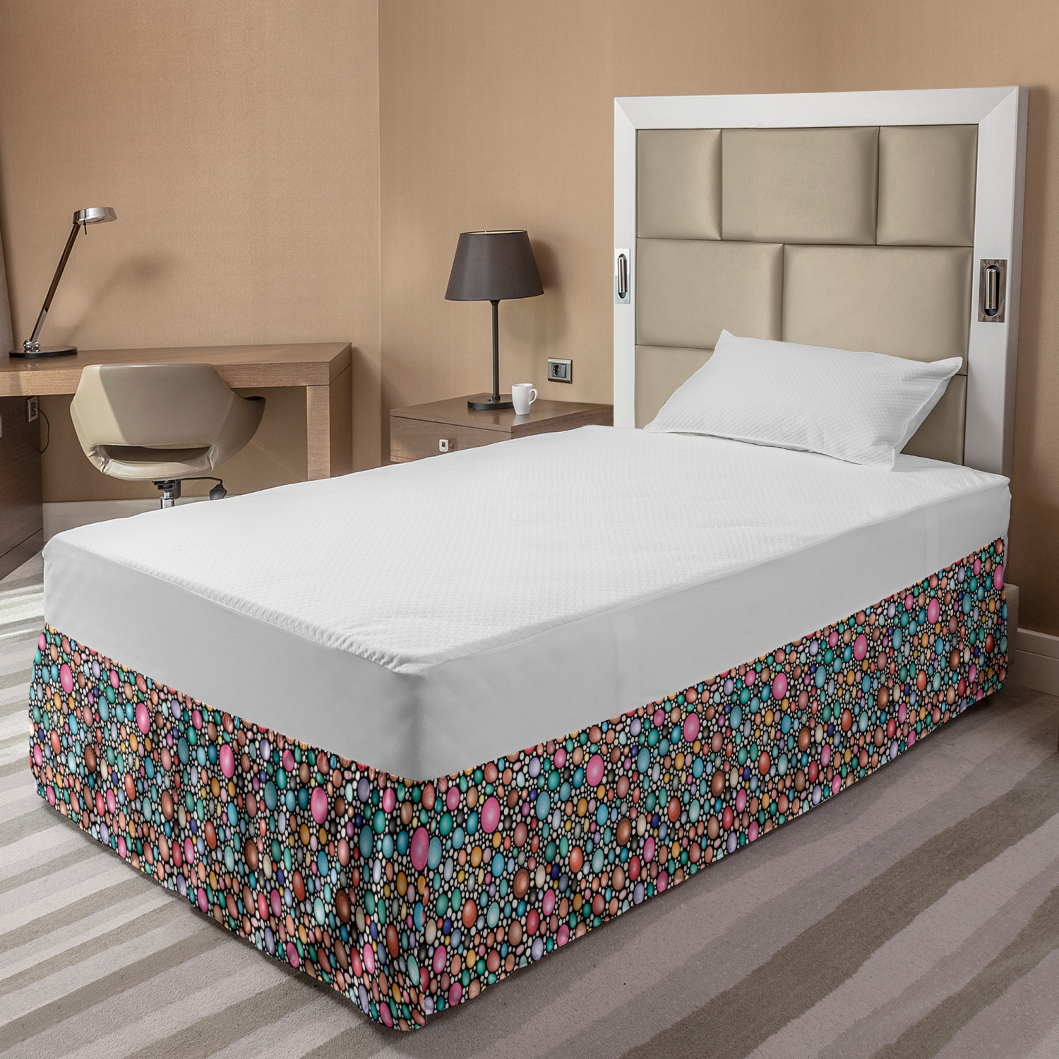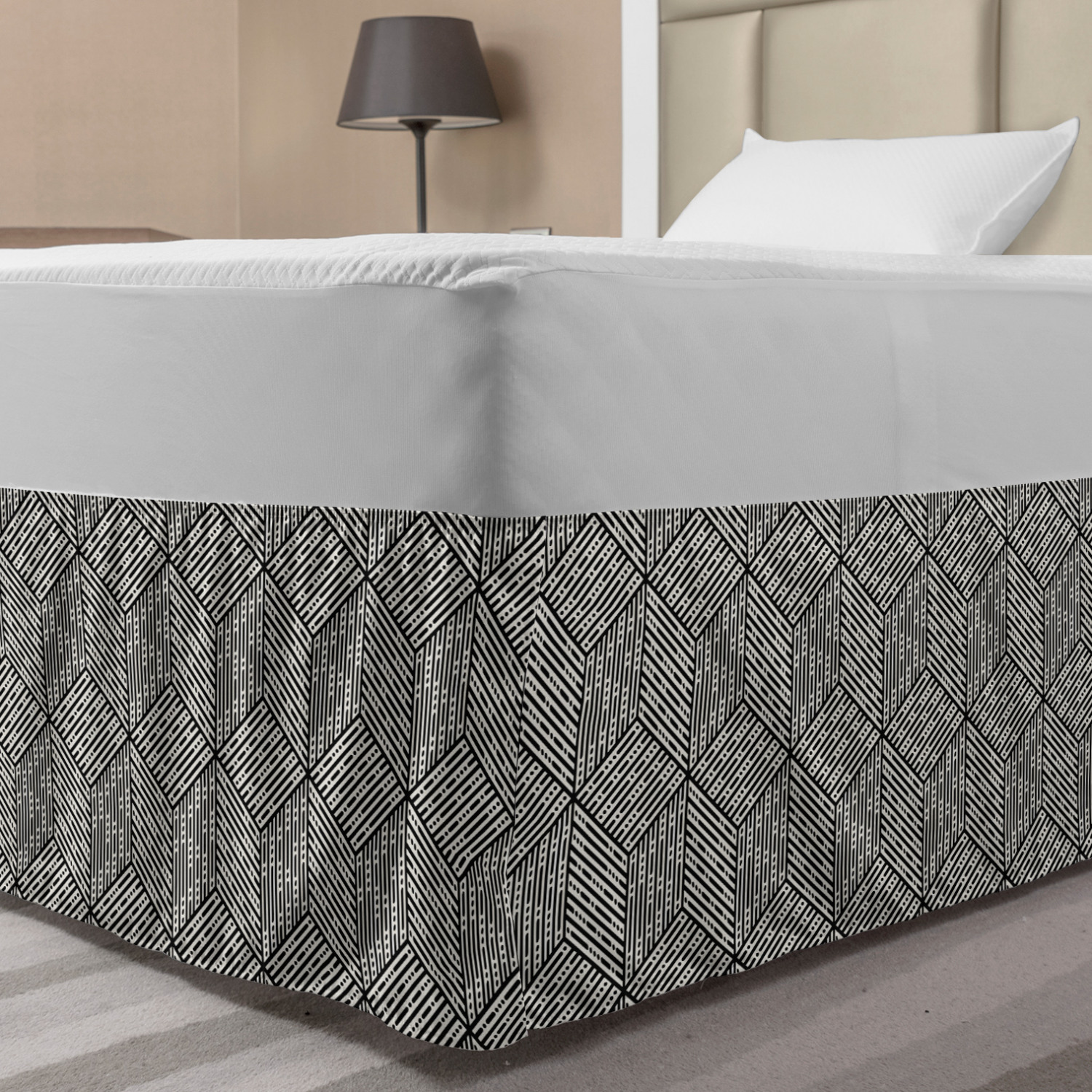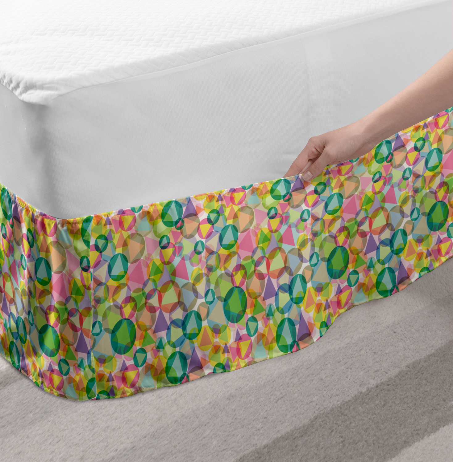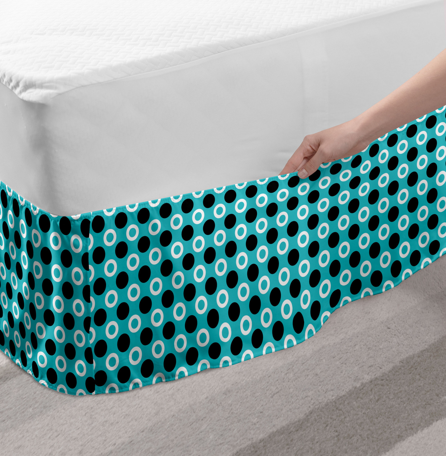 Ambesonne Geometric Items Bedskirt Elastic Wrap Around Skirt Gathered Design Ambesonne Bedskirt Bedroom Decor Wrap Around Elastic Bed Skirt Gathered Design In 4 sizes. 15 inches drop. All around wrap gathered. MADE IN TURKEY. MADE FROM - High quality 100% brushed soft microfiber fabric. Suitable for most types of beds. FEATURES - Install easily with elastic straps wrap under the mattress. Stays in place. Split corners. MACHINE WASHABLE - On cold cycle. Dryer safe and iron easy. No fading colors. For bedroom decor. PRINTED - With state of the art digital printing technology. Long-lasting bold colors & clear image. Change your bedroom's style with a simple touch of bedskirt! Our bedskirts are very easy to use; you can easily put around this elastic bed skirt and fasten up with straps under your mattress. Bring new energy to your master suite with colors and thousands of different patterns. You can easily match your bedding sets with our varied bed skirts. You can play safe and create vintage decor easily with these bed ruffles that belongs to retro-times. But you can ask for novelty and combine this piece with your modern choices. Our bed skirt is smartly designed with modern split corners. And you don't need to worry if it gets dusty or dirty. Just machine wash in the cold cycle and tumble dry on low. Thanks to new printing techniques the colors will not fade easily. Design a neat look for your bed with this gathered bed skirt. It is designed with a slim/low style ruffle to catch a more contemporary line. You can give these bed skirts as a Christmas, birthday, wedding gift, mother's day or house warming gift. It can be a great present for your mother, father, newly married friends, grandmother, aunt, uncle. The digital images we display have the most accurate color possible, however, due to differences in computer monitors, we cannot be responsible for variations in color between the actual product and your screen. Due to manual measurement, please kindly allow 1-2 cm discrepancy.