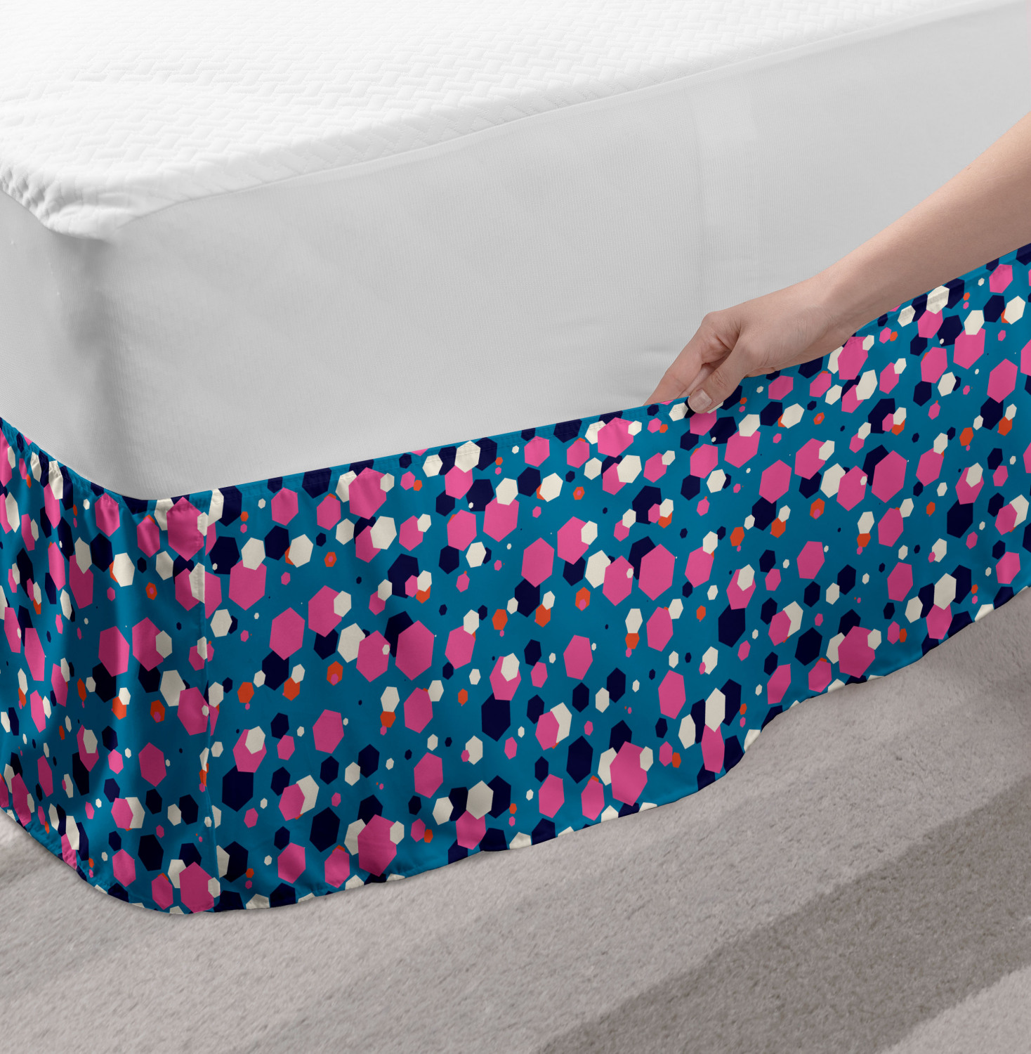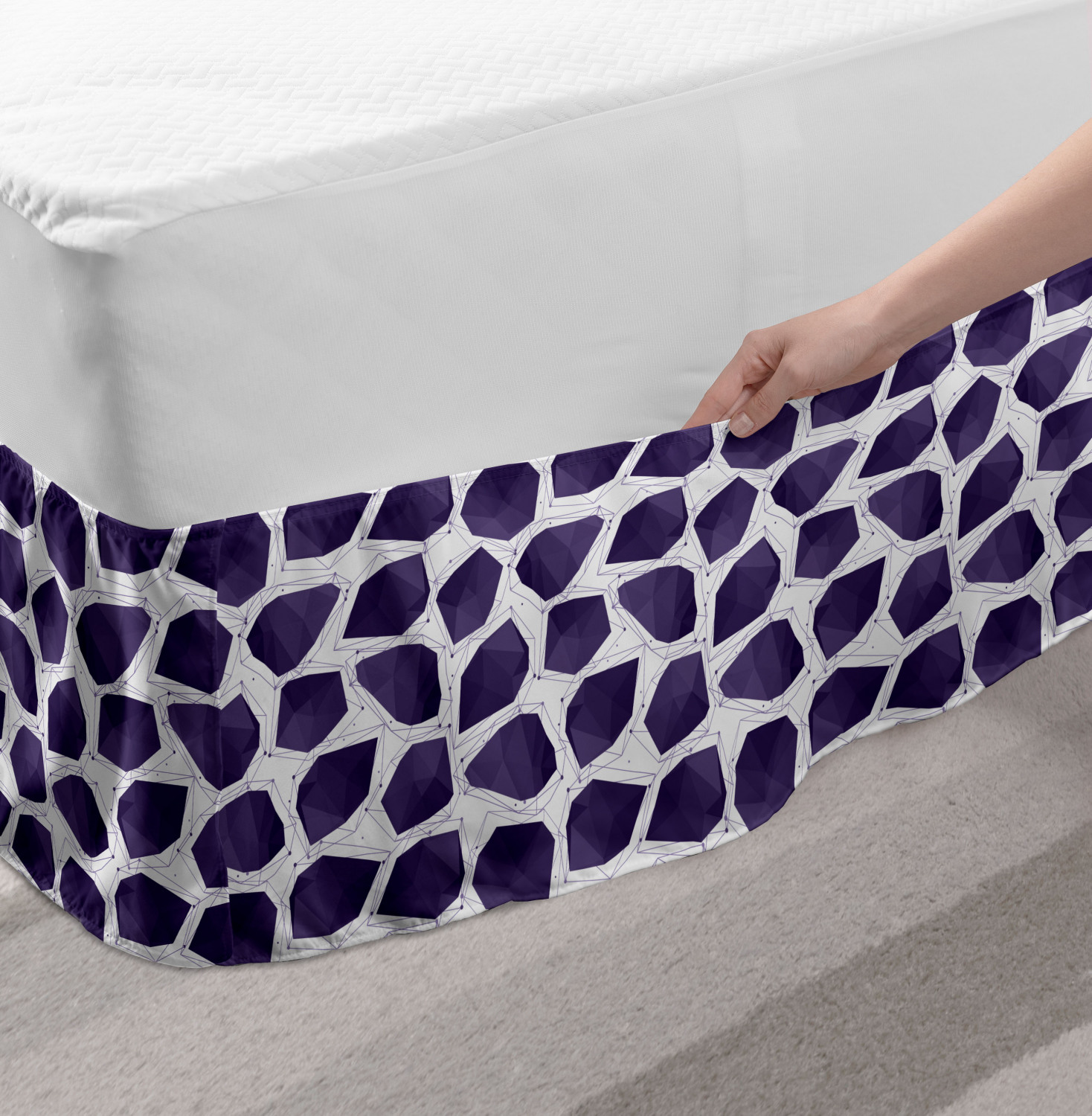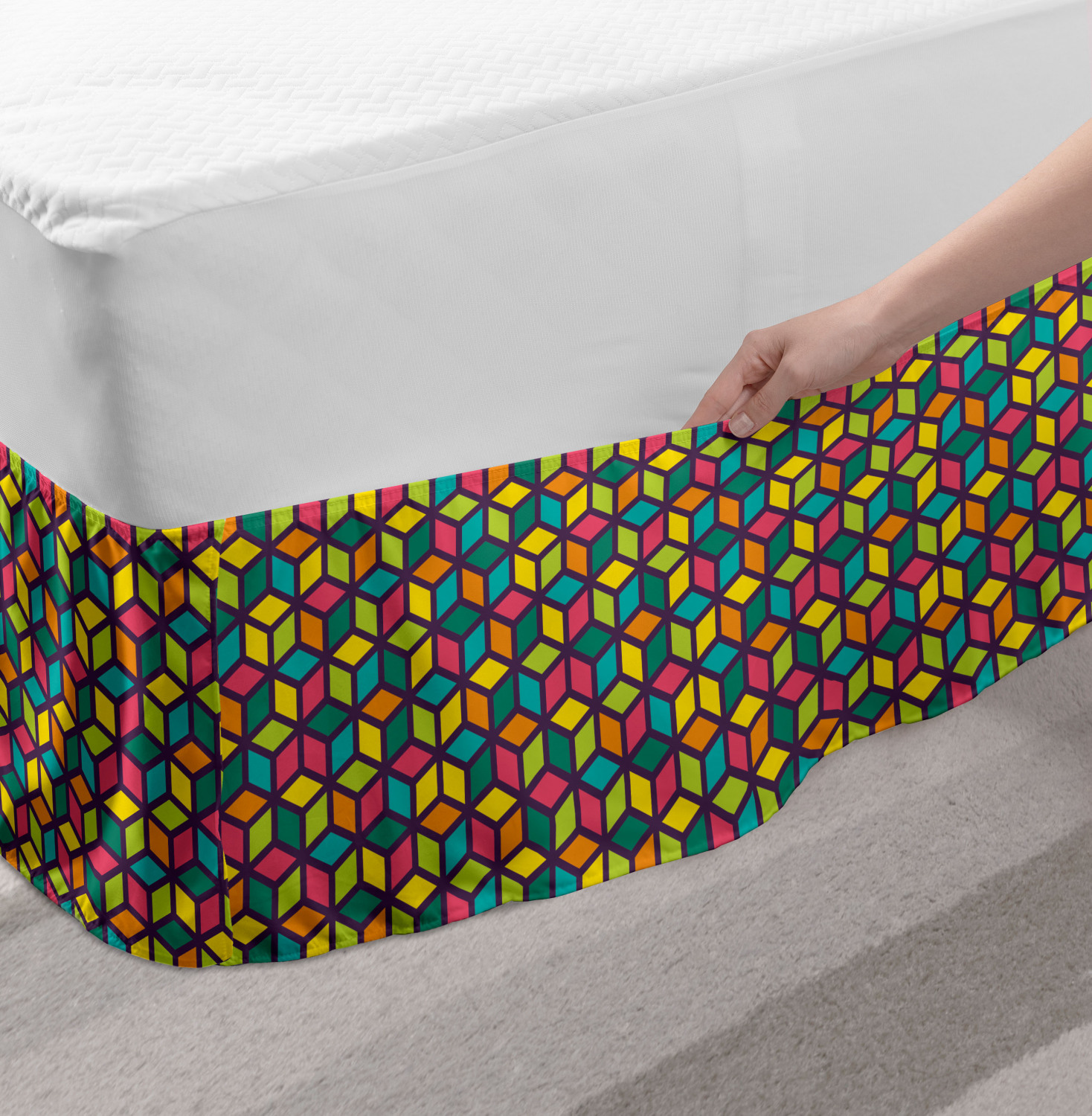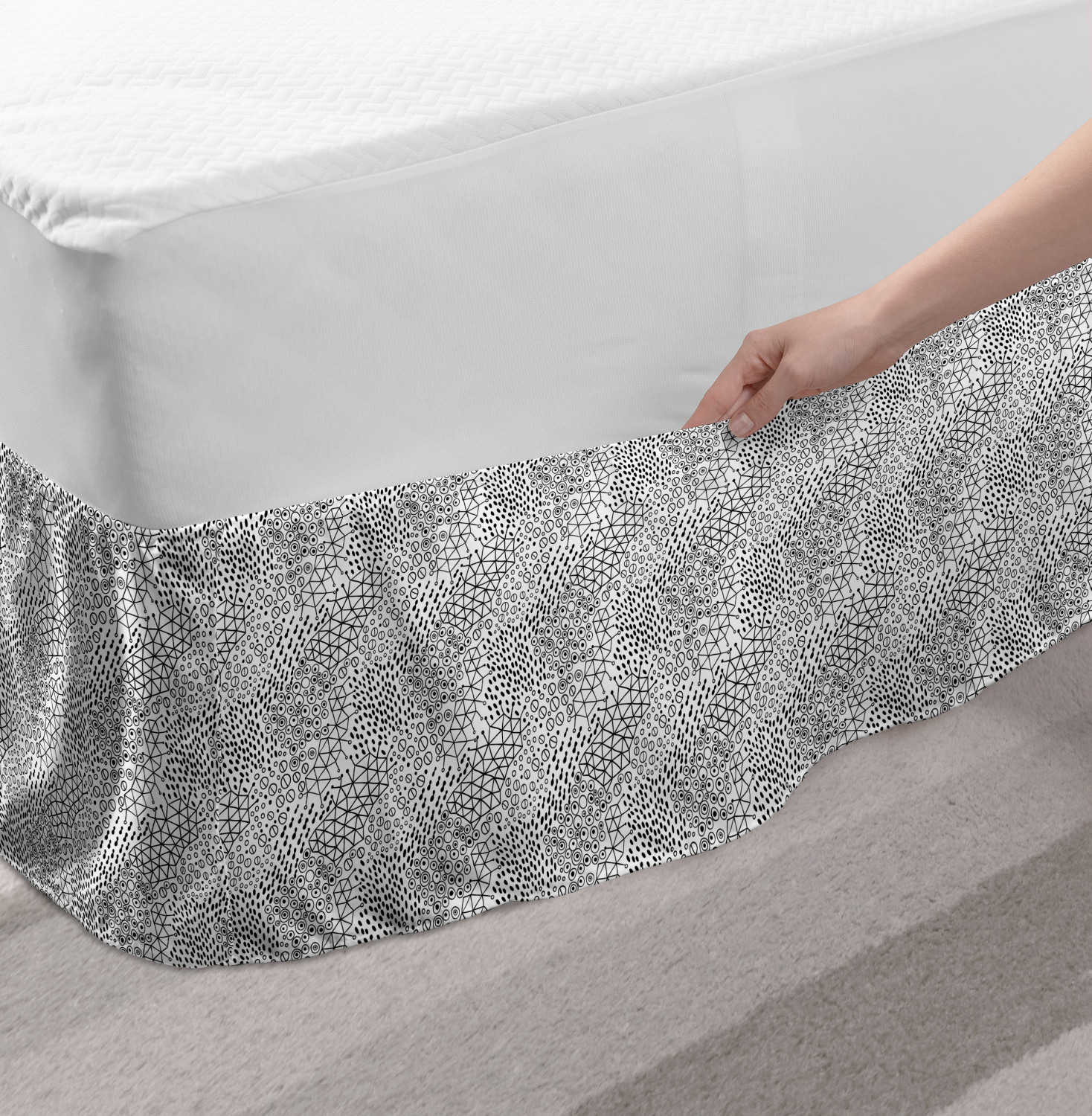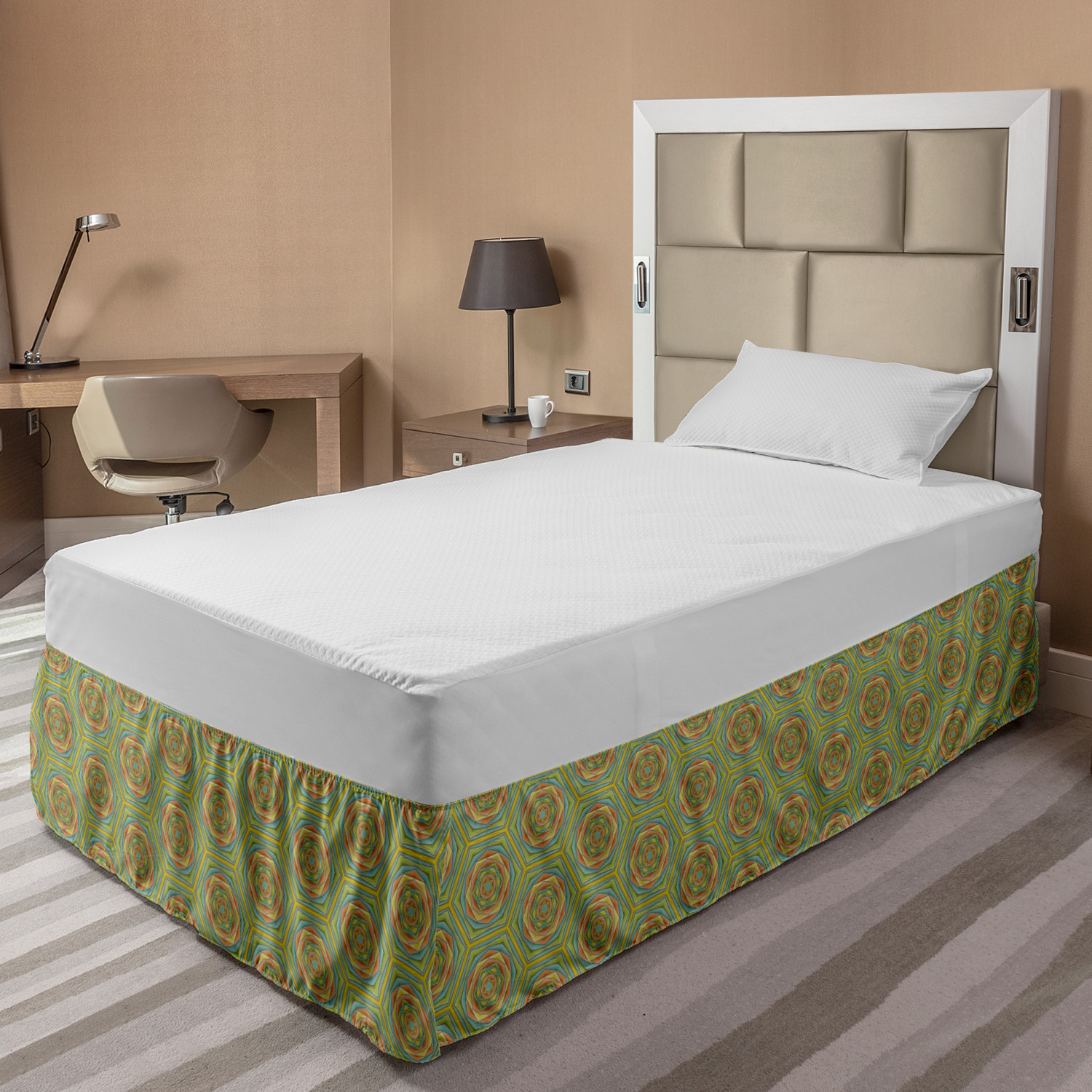 Ambesonne Geometric Items Bedskirt Elastic Wrap Around Skirt Gathered Design Ambesonne Bedskirt Bedroom Decor Wrap Around Elastic Bed Skirt Gathered Design In 4 sizes. 15 inches drop. All around wrap gathered. MADE IN TURKEY. MADE FROM - High quality 100% brushed soft microfiber fabric. Suitable for most types of beds. FEATURES - Install easily with elastic straps wrap under the mattress. Stays in place. Split corners. MACHINE WASHABLE - On cold cycle. Dryer safe and iron easy. No fading colors. For bedroom decor. PRINTED - With state of the art digital printing technology. Long-lasting bold colors & clear image. Change your bedroom's style with a simple touch of bedskirt! Our bedskirts are very easy to use; you can easily put around this elastic bed skirt and fasten up with straps under your mattress. Bring new energy to your master suite with colors and thousands of different patterns. You can easily match your bedding sets with our varied bed skirts. You can play safe and create vintage decor easily with these bed ruffles that belongs to retro-times. But you can ask for novelty and combine this piece with your modern choices. Our bed skirt is smartly designed with modern split corners. And you don't need to worry if it gets dusty or dirty. Just machine wash in the cold cycle and tumble dry on low. Thanks to new printing techniques the colors will not fade easily. Design a neat look for your bed with this gathered bed skirt. It is designed with a slim/low style ruffle to catch a more contemporary line. You can give these bed skirts as a Christmas, birthday, wedding gift, mother's day or house warming gift. It can be a great present for your mother, father, newly married friends, grandmother, aunt, uncle. The digital images we display have the most accurate color possible, however, due to differences in computer monitors, we cannot be responsible for variations in color between the actual product and your screen. Due to manual measurement, please kindly allow 1-2 cm discrepancy.