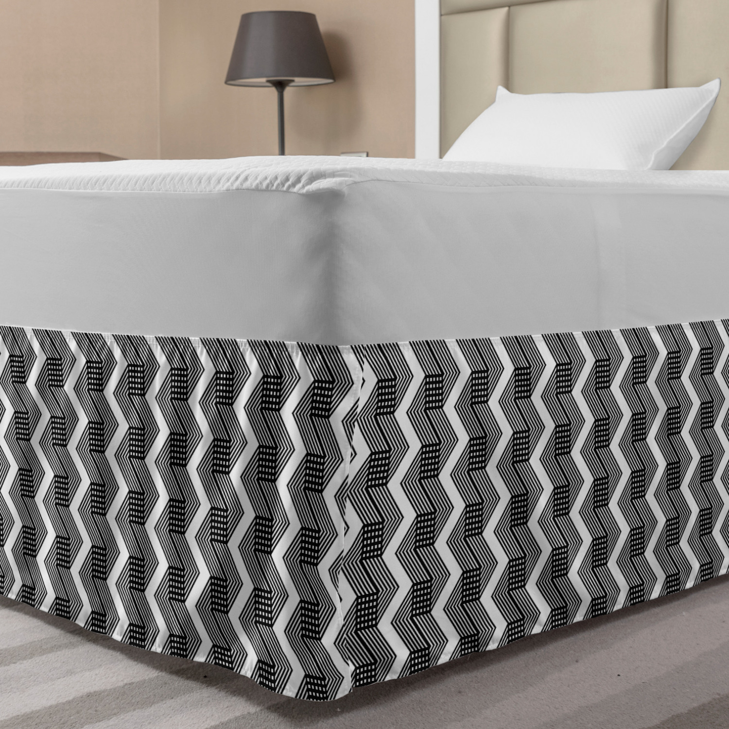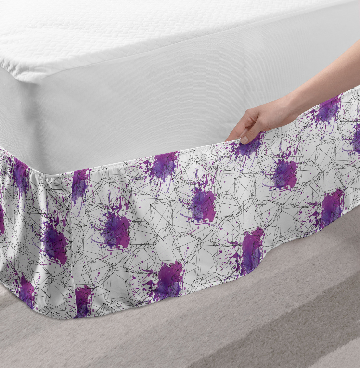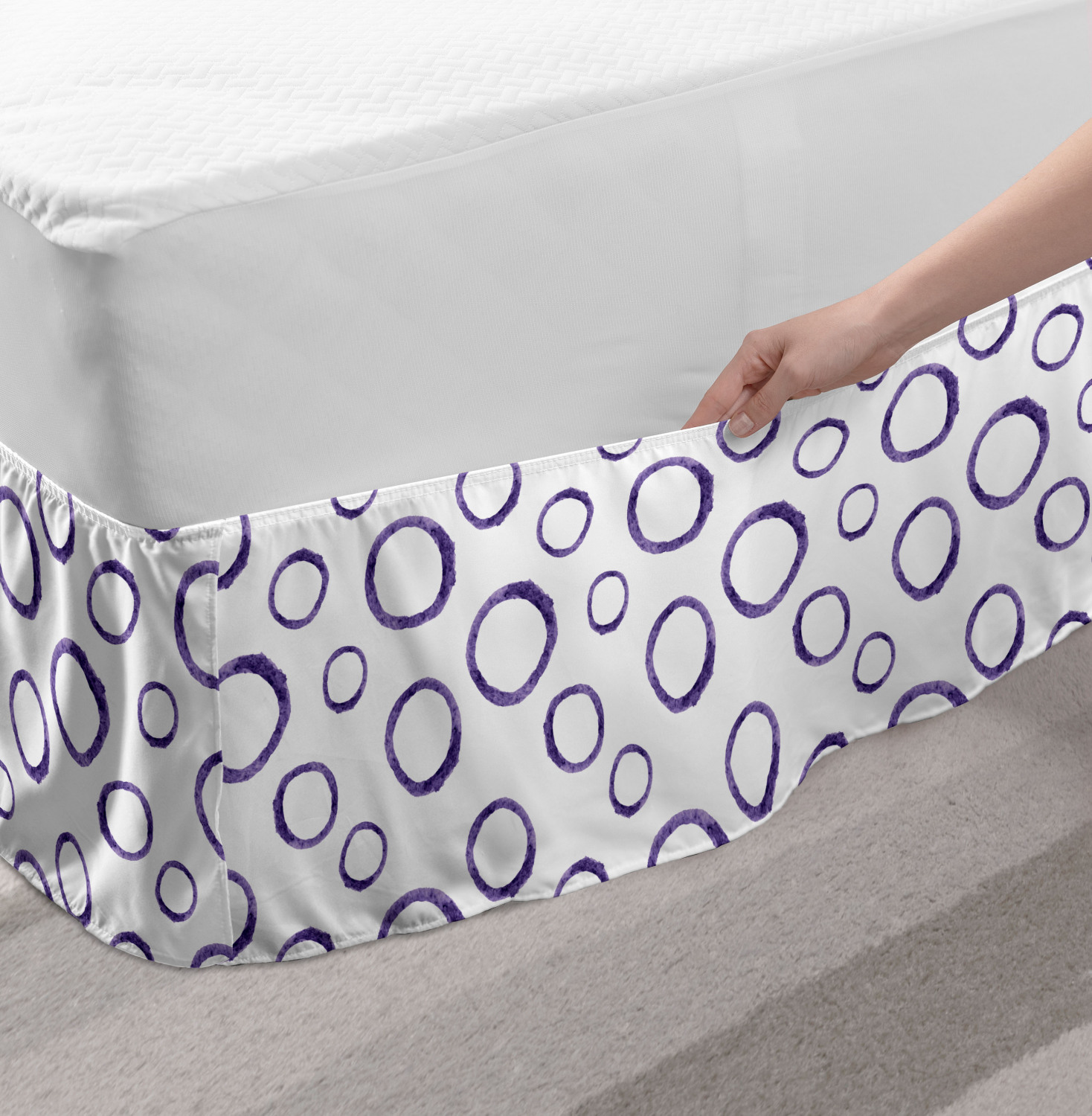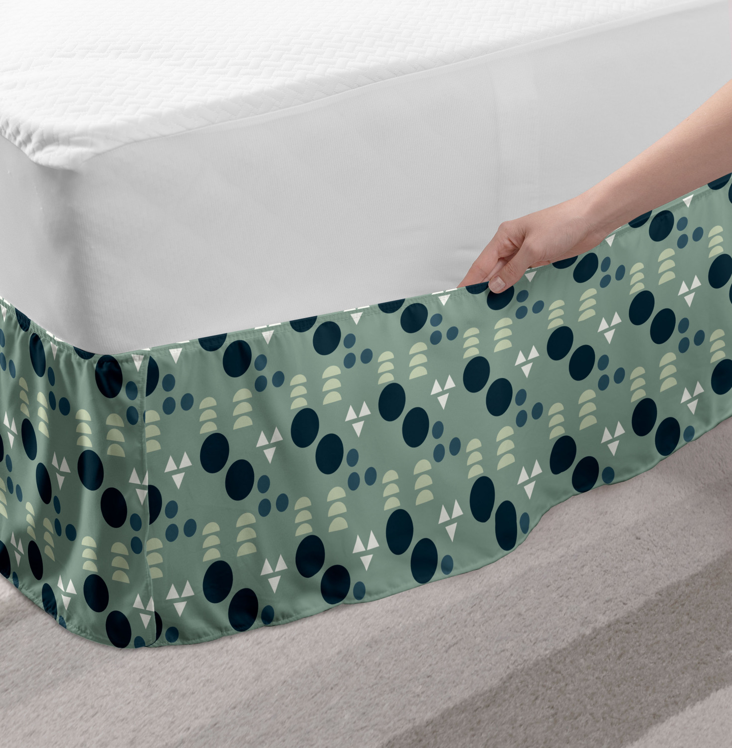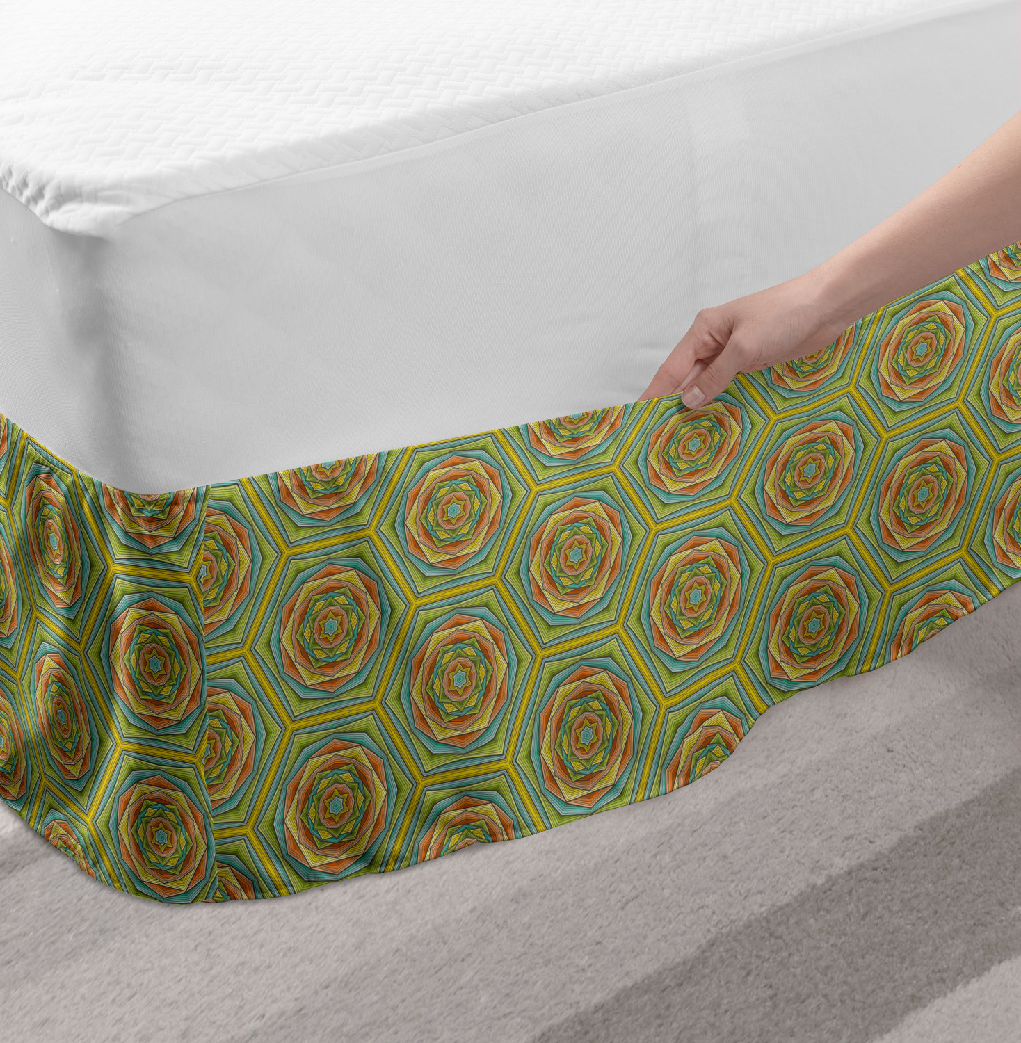 Ambesonne Geometric Items Bedskirt Elastic Wrap Around Skirt Gathered Design Ambesonne Bedskirt Bedroom Decor Wrap Around Elastic Bed Skirt Gathered Design In 4 sizes. 15 inches drop. All around wrap gathered. MADE IN TURKEY. MADE FROM - High quality 100% brushed soft microfiber fabric. Suitable for most types of beds. FEATURES - Install easily with elastic straps wrap under the mattress. Stays in place. Split corners. MACHINE WASHABLE - On cold cycle. Dryer safe and iron easy. No fading colors. For bedroom decor. PRINTED - With state of the art digital printing technology. Long-lasting bold colors & clear image. Change your bedroom's style with a simple touch of bedskirt! Our bedskirts are very easy to use; you can easily put around this elastic bed skirt and fasten up with straps under your mattress. Bring new energy to your master suite with colors and thousands of different patterns. You can easily match your bedding sets with our varied bed skirts. You can play safe and create vintage decor easily with these bed ruffles that belongs to retro-times. But you can ask for novelty and combine this piece with your modern choices. Our bed skirt is smartly designed with modern split corners. And you don't need to worry if it gets dusty or dirty. Just machine wash in the cold cycle and tumble dry on low. Thanks to new printing techniques the colors will not fade easily. Design a neat look for your bed with this gathered bed skirt. It is designed with a slim/low style ruffle to catch a more contemporary line. You can give these bed skirts as a Christmas, birthday, wedding gift, mother's day or house warming gift. It can be a great present for your mother, father, newly married friends, grandmother, aunt, uncle. The digital images we display have the most accurate color possible, however, due to differences in computer monitors, we cannot be responsible for variations in color between the actual product and your screen. Due to manual measurement, please kindly allow 1-2 cm discrepancy.