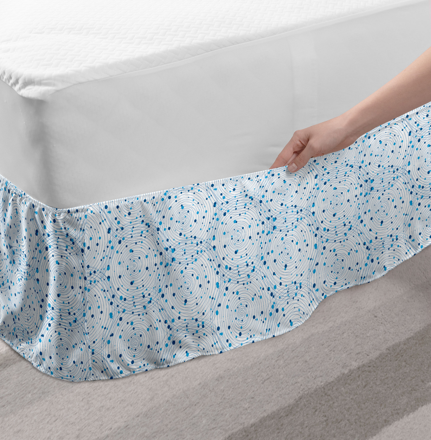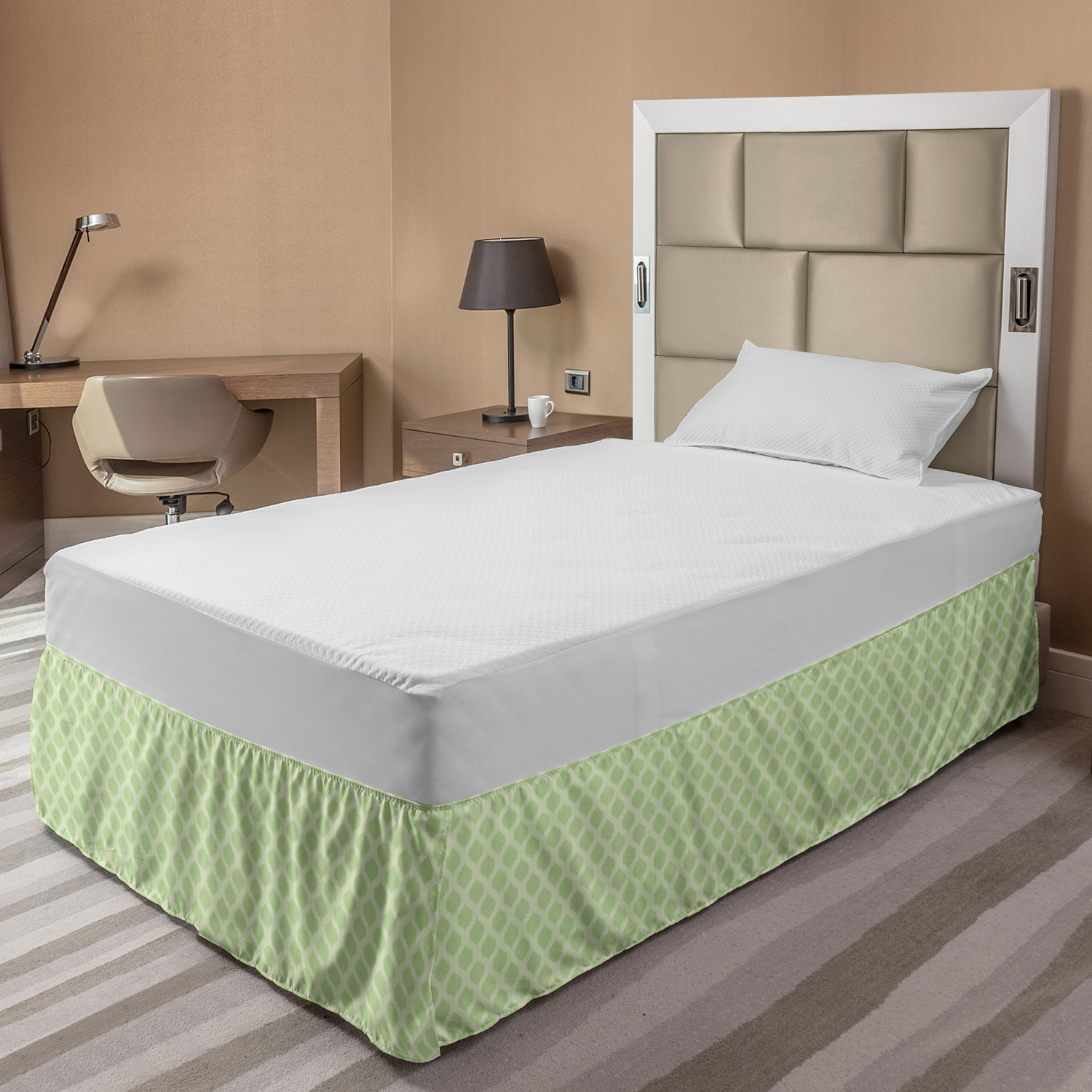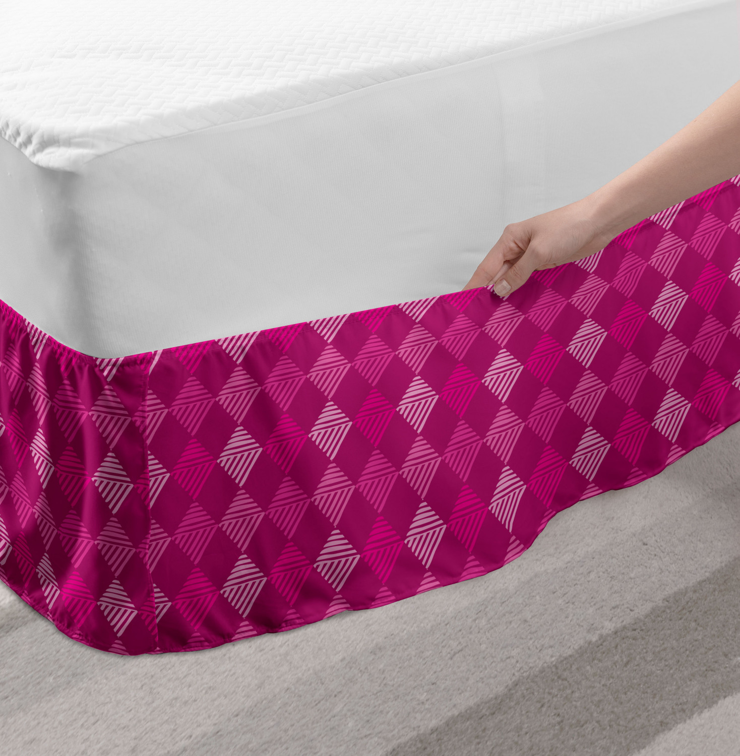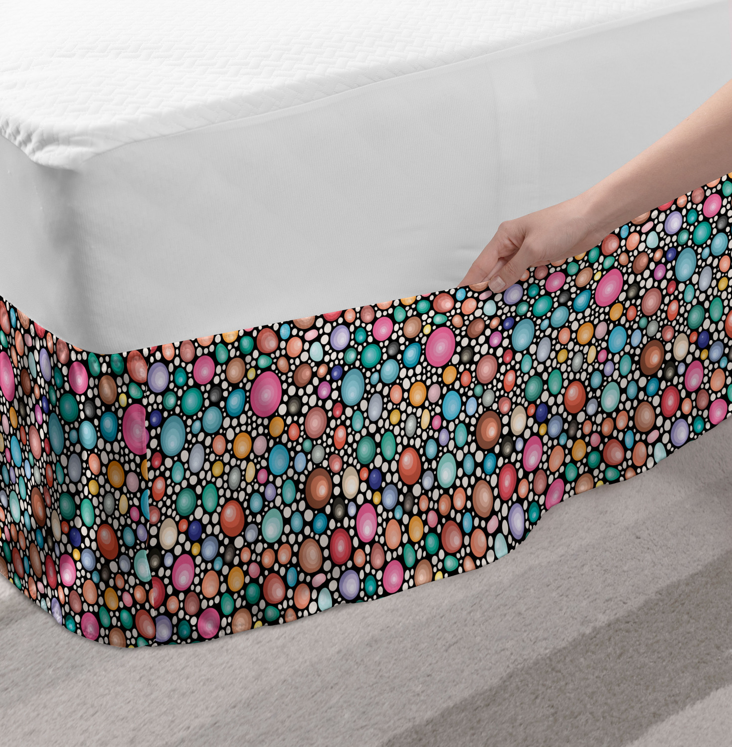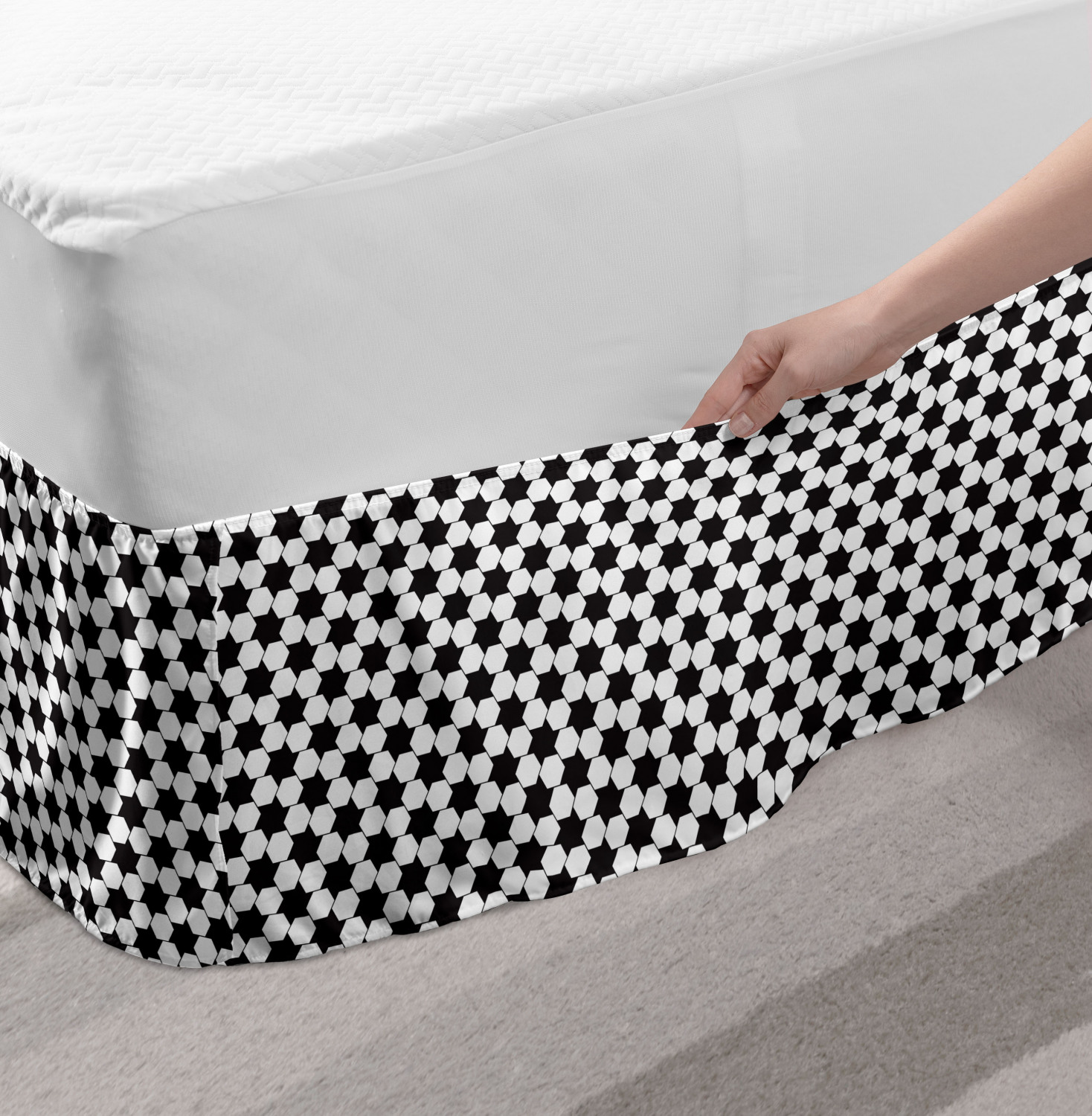 Ambesonne Geometric Items Bedskirt Elastic Wrap Around Skirt Gathered Design Ambesonne Bedskirt Bedroom Decor Wrap Around Elastic Bed Skirt Gathered Design In 4 sizes. 15 inches drop. All around wrap gathered. MADE IN TURKEY. MADE FROM - High quality 100% brushed soft microfiber fabric. Suitable for most types of beds. FEATURES - Install easily with elastic straps wrap under the mattress. Stays in place. Split corners. MACHINE WASHABLE - On cold cycle. Dryer safe and iron easy. No fading colors. For bedroom decor. PRINTED - With state of the art digital printing technology. Long-lasting bold colors & clear image. Change your bedroom's style with a simple touch of bedskirt! Our bedskirts are very easy to use; you can easily put around this elastic bed skirt and fasten up with straps under your mattress. Bring new energy to your master suite with colors and thousands of different patterns. You can easily match your bedding sets with our varied bed skirts. You can play safe and create vintage decor easily with these bed ruffles that belongs to retro-times. But you can ask for novelty and combine this piece with your modern choices. Our bed skirt is smartly designed with modern split corners. And you don't need to worry if it gets dusty or dirty. Just machine wash in the cold cycle and tumble dry on low. Thanks to new printing techniques the colors will not fade easily. Design a neat look for your bed with this gathered bed skirt. It is designed with a slim/low style ruffle to catch a more contemporary line. You can give these bed skirts as a Christmas, birthday, wedding gift, mother's day or house warming gift. It can be a great present for your mother, father, newly married friends, grandmother, aunt, uncle. The digital images we display have the most accurate color possible, however, due to differences in computer monitors, we cannot be responsible for variations in color between the actual product and your screen. Due to manual measurement, please kindly allow 1-2 cm discrepancy.