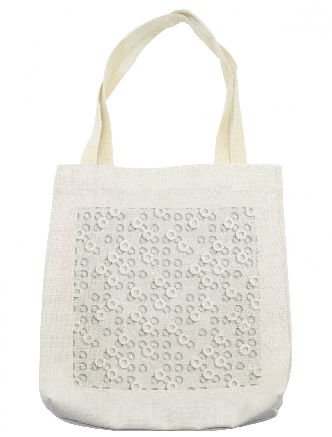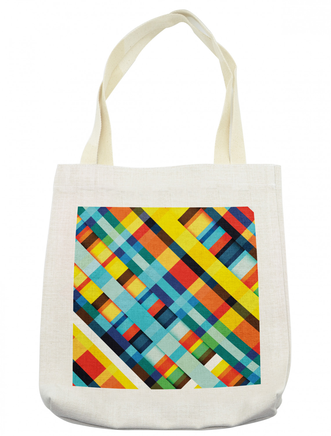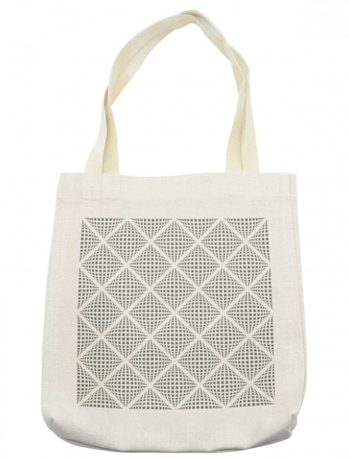 Ambesonne Geometric Themed Tote Bag Reusable Linen Sack Shopping Books Beach Ambesonne Tote Bag Cloth Linen Reusable Bag for Shopping Books Beach and More. SIZE: 16.5"W x 14"H. Has fabric over the shoulder handles. Long-lasting. The image printed on one side. STYLISH DESIGN: Color of bag: Cream. ECOFRIENDLY MATERIAL: Made from 100% linen with sturdy, heavy-duty stitching. Holds up to 30 pounds. MULTI-PURPOSE: Grocery bag, library tote, laundry bag, beach tote, pool, work & MORE! Fun. Versatile. PRINTED - With state of the art digital printing technology. Proudly designed & printed in the USA. No more plastic or paper bags! Go green with this fully recyclable and reusable linen tote bag. Perfect size for all your needs with a large capacity. With comfortable and sturdy over the shoulder straps. Make this shopping tote your new favorite grocery bag, library tote, beach tote, diaper bag. It offers a lot of conveniences when storing things like an iPad, a 13" laptop, textbooks, cellphones, keys, makeup bags, daily essentials or other stuff. Just start thinking of all the places you can use this versatile eco bag! Shopping for groceries, going to the library, having a picnic in the park, school, yoga class, travel. It has a simple and stylish design, no zippers, pockets or lining. Just linen with finest quality finishing. The heavy-duty stitching will last longer without loosening threads and can hold up to 30 pounds of weight. Compared to cotton, linen requires less water to cultivate and is 30% stronger. Great gift idea for him or her, young or old, for any occasion. With the widest range of prints you'll find anywhere, you are sure to find the right design for that special person! EASY CARE: Machine washable at 40°C (104°F) with light colors, tumble dry at gentle mode, hang to dry, iron damp with steam if necessary. Every wash will make it softer. The image is only printed ON ONE SIDE of the bag. Environmentally friendly, no dye substance harming the health of your family. Colors won't fade thanks to new digital printing methods.
