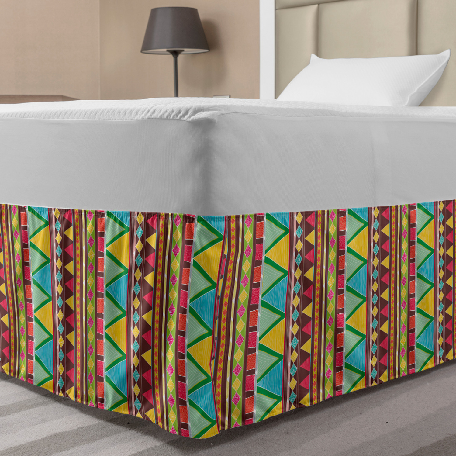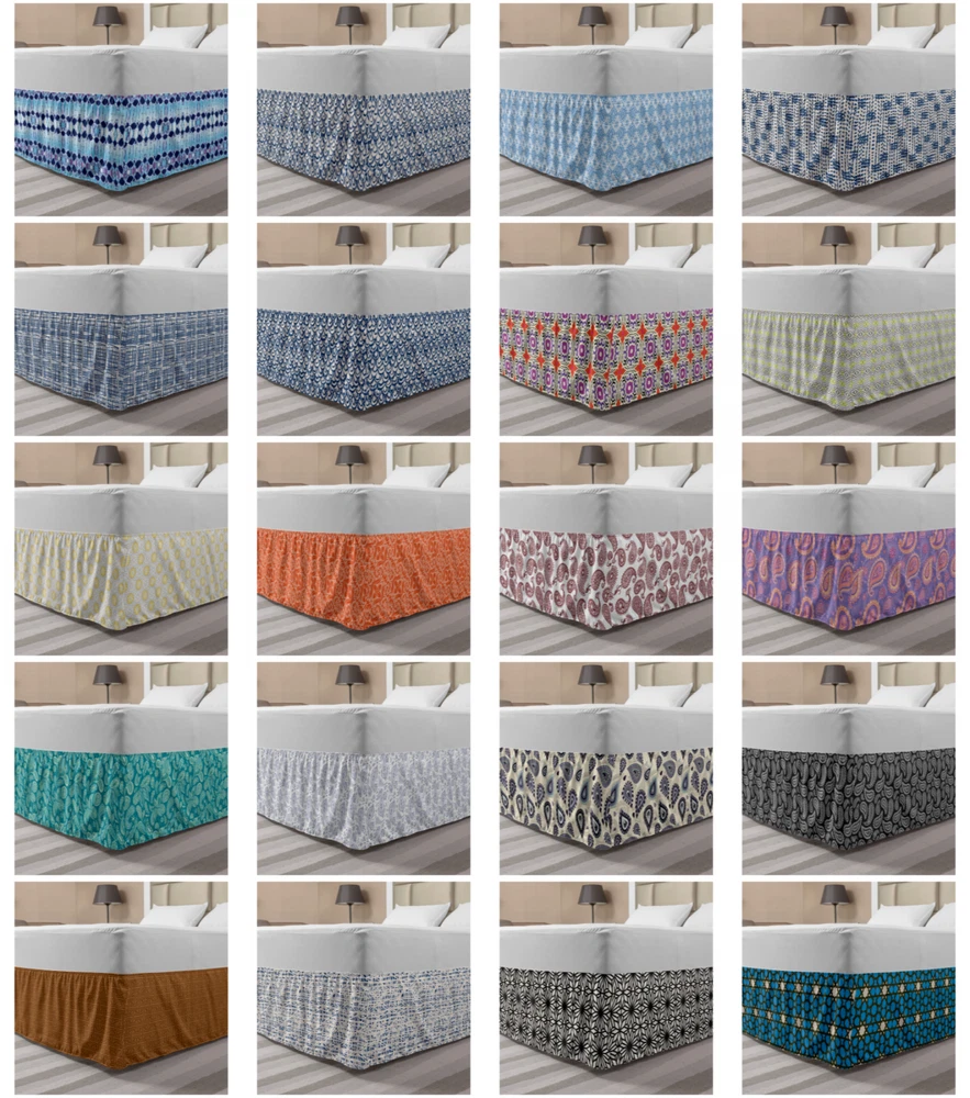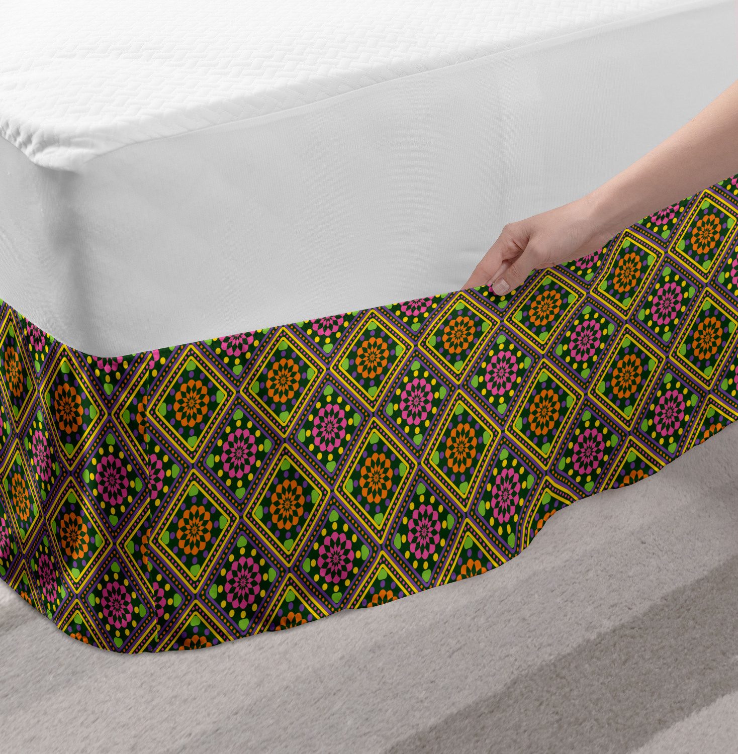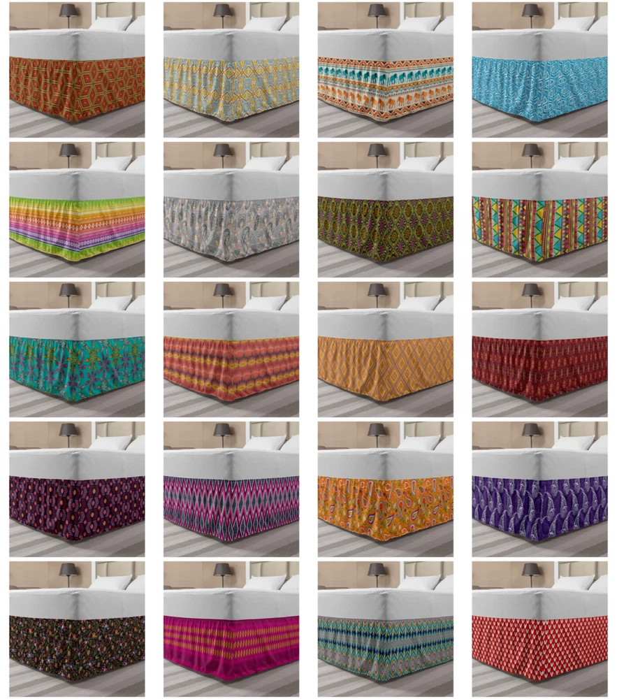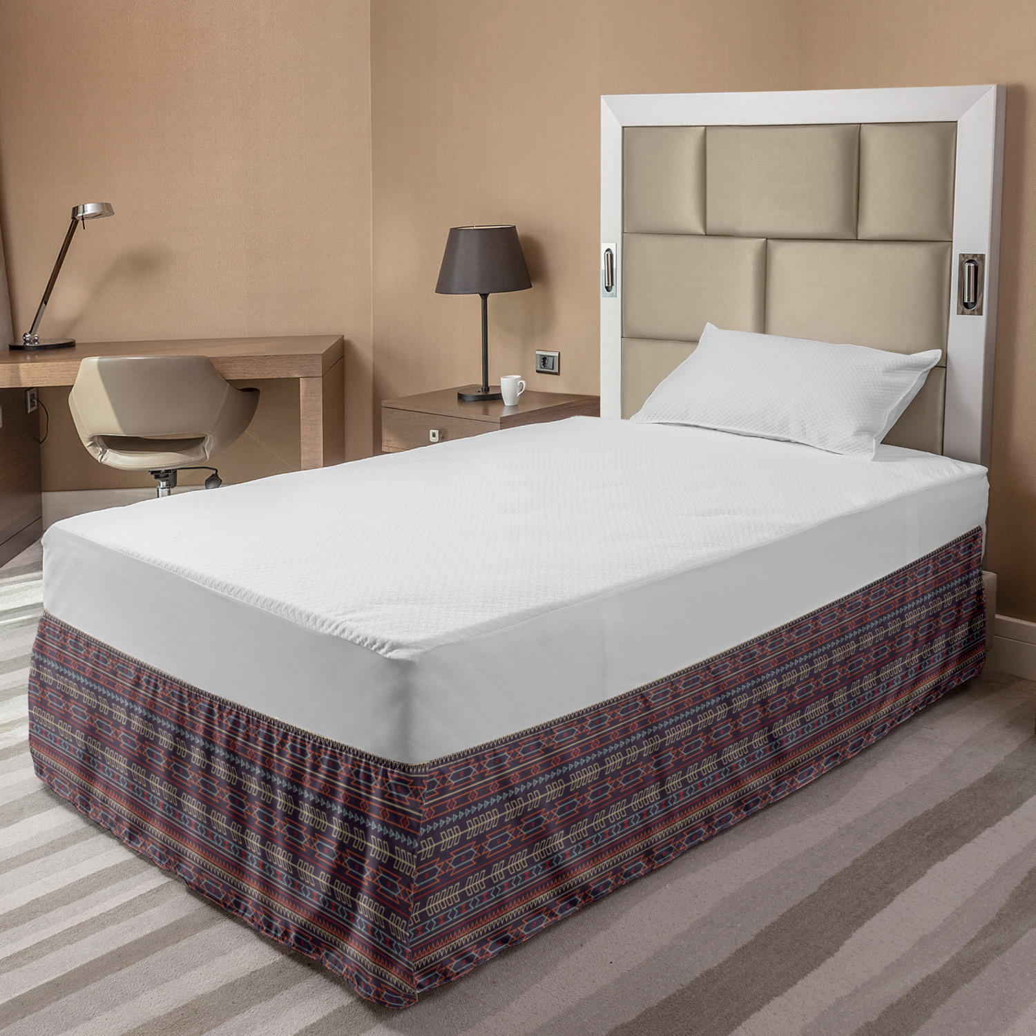 Ambesonne Oriental Bedskirt Elastic Wrap Around Skirt Gathered Design Ambesonne Bedskirt Bedroom Decor Wrap Around Elastic Bed Skirt Gathered Design In 4 sizes. 15 inches drop. All around wrap gathered. MADE IN TURKEY. MADE FROM - High quality 100% brushed soft microfiber fabric. Suitable for most types of beds. FEATURES - Install easily with elastic straps wrap under the mattress. Stays in place. Split corners. MACHINE WASHABLE - On cold cycle. Dryer safe and iron easy. No fading colors. For bedroom decor. PRINTED - With state of the art digital printing technology. Long-lasting bold colors & clear image. Change your bedroom's style with a simple touch of bedskirt! Our bedskirts are very easy to use; you can easily put around this elastic bed skirt and fasten up with straps under your mattress. Bring new energy to your master suite with colors and thousands of different patterns. You can easily match your bedding sets with our varied bed skirts. You can play safe and create vintage decor easily with these bed ruffles that belongs to retro-times. But you can ask for novelty and combine this piece with your modern choices. Our bed skirt is smartly designed with modern split corners. And you don't need to worry if it gets dusty or dirty. Just machine wash in the cold cycle and tumble dry on low. Thanks to new printing techniques the colors will not fade easily. Design a neat look for your bed with this gathered bed skirt. It is designed with a slim/low style ruffle to catch a more contemporary line. You can give these bed skirts as a Christmas, birthday, wedding gift, mother's day or house warming gift. It can be a great present for your mother, father, newly married friends, grandmother, aunt, uncle. The digital images we display have the most accurate color possible, however, due to differences in computer monitors, we cannot be responsible for variations in color between the actual product and your screen. Due to manual measurement, please kindly allow 1-2 cm discrepancy.