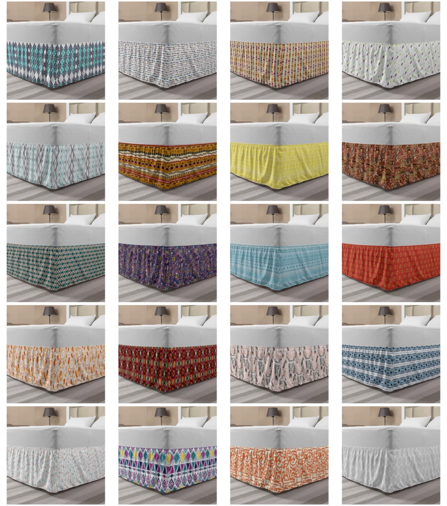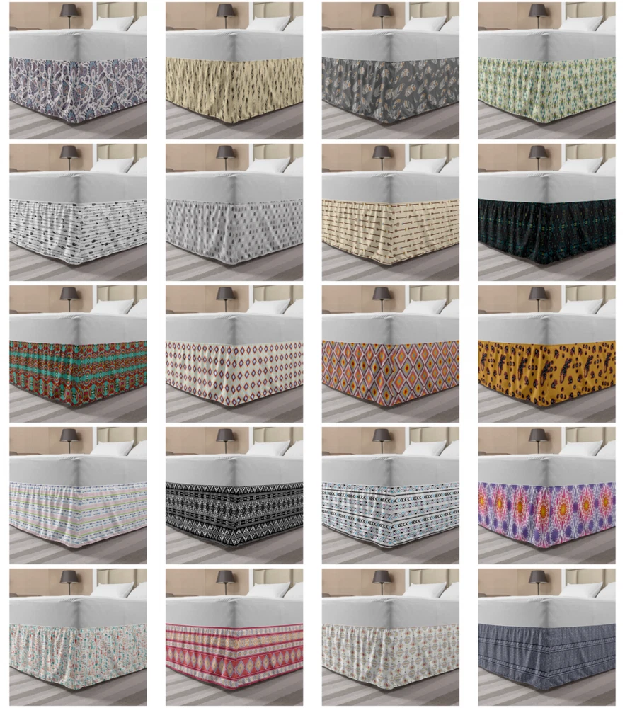 Ambesonne Tribal Bedskirt Elastic Wrap Around Skirt Gathered Design Ambesonne Bedskirt Bedroom Decor Wrap Around Elastic Bed Skirt Gathered Design In 4 sizes. 15 inches drop. All around wrap gathered. MADE IN TURKEY. MADE FROM - High quality 100% brushed soft microfiber fabric. Suitable for most types of beds. FEATURES - Install easily with elastic straps wrap under the mattress. Stays in place. Split corners. MACHINE WASHABLE - On cold cycle. Dryer safe and iron easy. No fading colors. For bedroom decor. PRINTED - With state of the art digital printing technology. Long-lasting bold colors & clear image. Change your bedroom's style with a simple touch of bedskirt! Our bedskirts are very easy to use; you can easily put around this elastic bed skirt and fasten up with straps under your mattress. Bring new energy to your master suite with colors and thousands of different patterns. You can easily match your bedding sets with our varied bed skirts. You can play safe and create vintage decor easily with these bed ruffles that belongs to retro-times. But you can ask for novelty and combine this piece with your modern choices. Our bed skirt is smartly designed with modern split corners. And you don't need to worry if it gets dusty or dirty. Just machine wash in the cold cycle and tumble dry on low. Thanks to new printing techniques the colors will not fade easily. Design a neat look for your bed with this gathered bed skirt. It is designed with a slim/low style ruffle to catch a more contemporary line. You can give these bed skirts as a Christmas, birthday, wedding gift, mother's day or house warming gift. It can be a great present for your mother, father, newly married friends, grandmother, aunt, uncle. The digital images we display have the most accurate color possible, however, due to differences in computer monitors, we cannot be responsible for variations in color between the actual product and your screen. Due to manual measurement, please kindly allow 1-2 cm discrepancy.