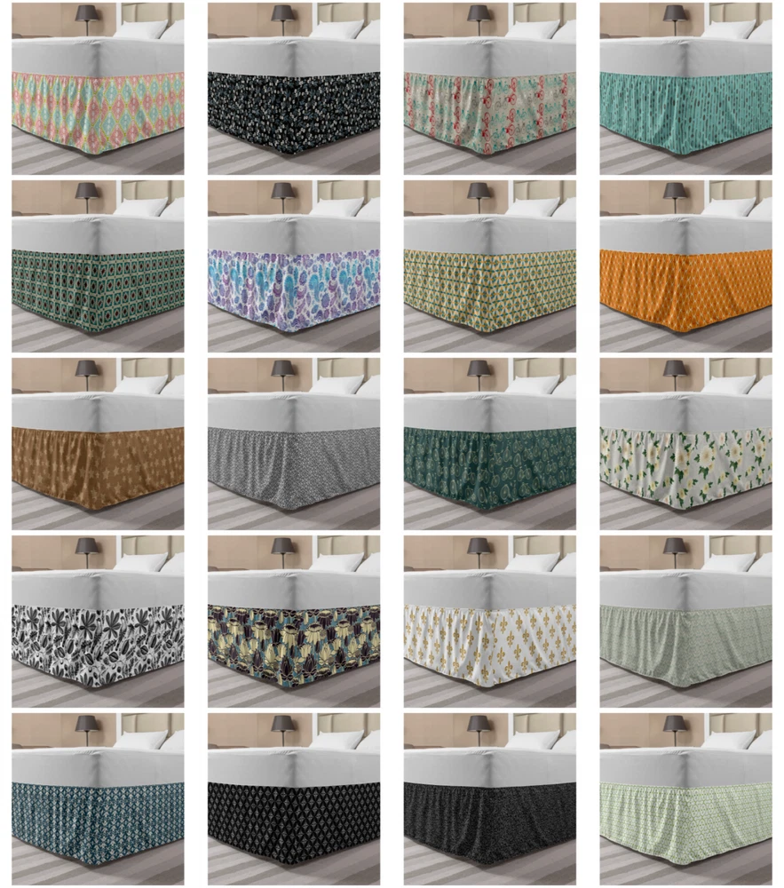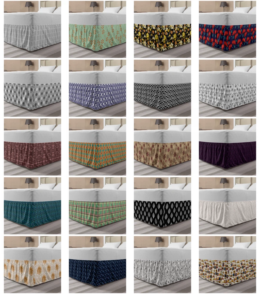 Ambesonne Vintage Motifs Bedskirt Elastic Wrap Around Skirt Gathered Design Ambesonne Bedskirt Bedroom Decor Wrap Around Elastic Bed Skirt Gathered Design In 4 sizes. 15 inches drop. All around wrap gathered. MADE IN TURKEY. MADE FROM - High quality 100% brushed soft microfiber fabric. Suitable for most types of beds. FEATURES - Install easily with elastic straps wrap under the mattress. Stays in place. Split corners. MACHINE WASHABLE - On cold cycle. Dryer safe and iron easy. No fading colors. For bedroom decor. PRINTED - With state of the art digital printing technology. Long-lasting bold colors & clear image. Change your bedroom's style with a simple touch of bedskirt! Our bedskirts are very easy to use; you can easily put around this elastic bed skirt and fasten up with straps under your mattress. Bring new energy to your master suite with colors and thousands of different patterns. You can easily match your bedding sets with our varied bed skirts. You can play safe and create vintage decor easily with these bed ruffles that belongs to retro-times. But you can ask for novelty and combine this piece with your modern choices. Our bed skirt is smartly designed with modern split corners. And you don't need to worry if it gets dusty or dirty. Just machine wash in the cold cycle and tumble dry on low. Thanks to new printing techniques the colors will not fade easily. Design a neat look for your bed with this gathered bed skirt. It is designed with a slim/low style ruffle to catch a more contemporary line. You can give these bed skirts as a Christmas, birthday, wedding gift, mother's day or house warming gift. It can be a great present for your mother, father, newly married friends, grandmother, aunt, uncle. The digital images we display have the most accurate color possible, however, due to differences in computer monitors, we cannot be responsible for variations in color between the actual product and your screen. Due to manual measurement, please kindly allow 1-2 cm discrepancy.
