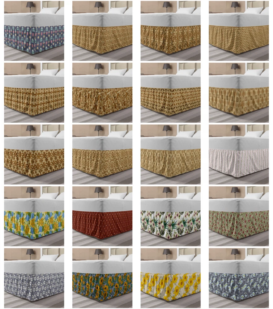 Ambesonne Vintage Scene Bedskirt Elastic Wrap Around Skirt Gathered Design Ambesonne Bedskirt Bedroom Decor Wrap Around Elastic Bed Skirt Gathered Design In 4 sizes. 15 inches drop. All around wrap gathered. MADE IN TURKEY. MADE FROM - High quality 100% brushed soft microfiber fabric. Suitable for most types of beds. FEATURES - Install easily with elastic straps wrap under the mattress. Stays in place. Split corners. MACHINE WASHABLE - On cold cycle. Dryer safe and iron easy. No fading colors. For bedroom decor. PRINTED - With state of the art digital printing technology. Long-lasting bold colors & clear image. Change your bedroom's style with a simple touch of bedskirt! Our bedskirts are very easy to use; you can easily put around this elastic bed skirt and fasten up with straps under your mattress. Bring new energy to your master suite with colors and thousands of different patterns. You can easily match your bedding sets with our varied bed skirts. You can play safe and create vintage decor easily with these bed ruffles that belongs to retro-times. But you can ask for novelty and combine this piece with your modern choices. Our bed skirt is smartly designed with modern split corners. And you don't need to worry if it gets dusty or dirty. Just machine wash in the cold cycle and tumble dry on low. Thanks to new printing techniques the colors will not fade easily. Design a neat look for your bed with this gathered bed skirt. It is designed with a slim/low style ruffle to catch a more contemporary line. You can give these bed skirts as a Christmas, birthday, wedding gift, mother's day or house warming gift. It can be a great present for your mother, father, newly married friends, grandmother, aunt, uncle. The digital images we display have the most accurate color possible, however, due to differences in computer monitors, we cannot be responsible for variations in color between the actual product and your screen. Due to manual measurement, please kindly allow 1-2 cm discrepancy.