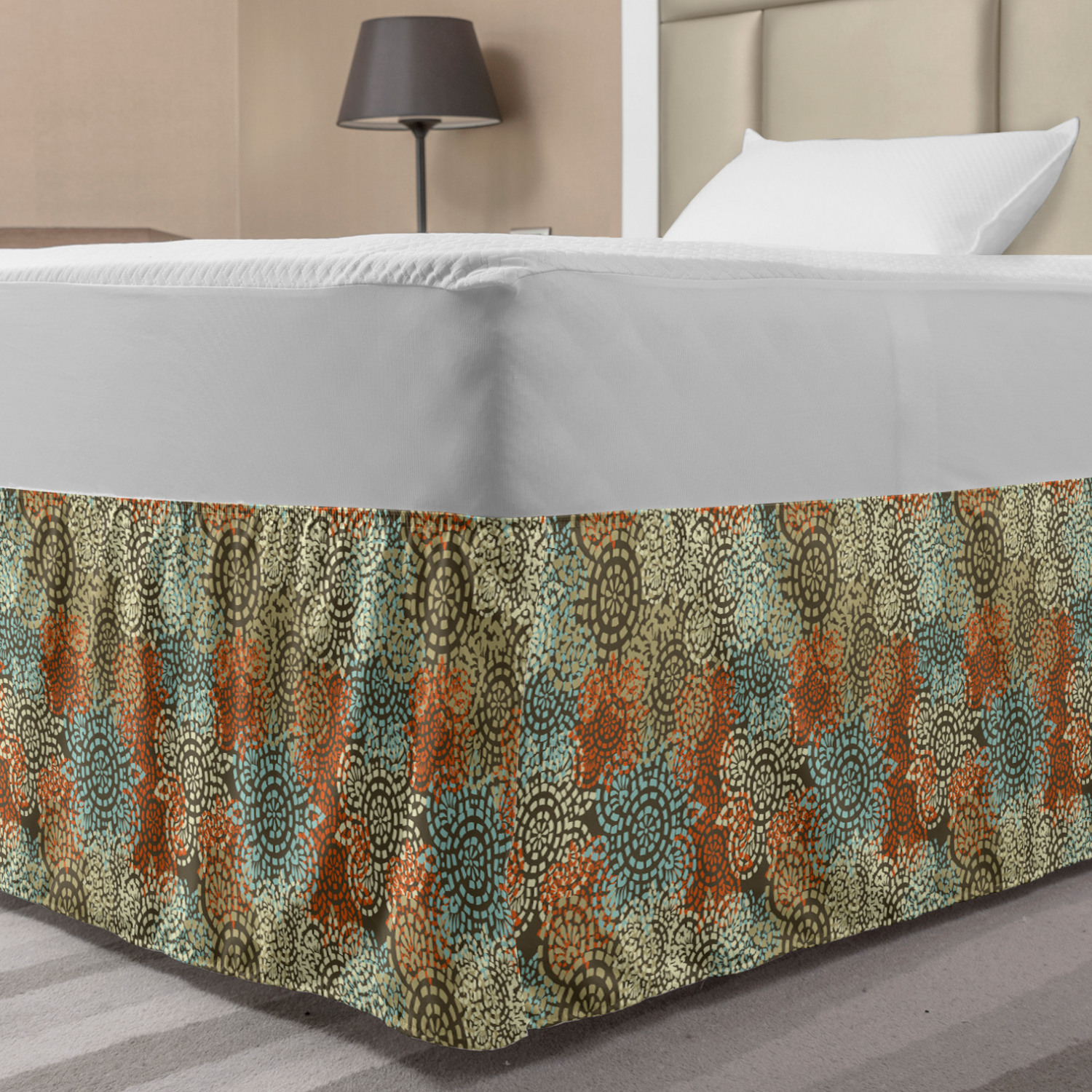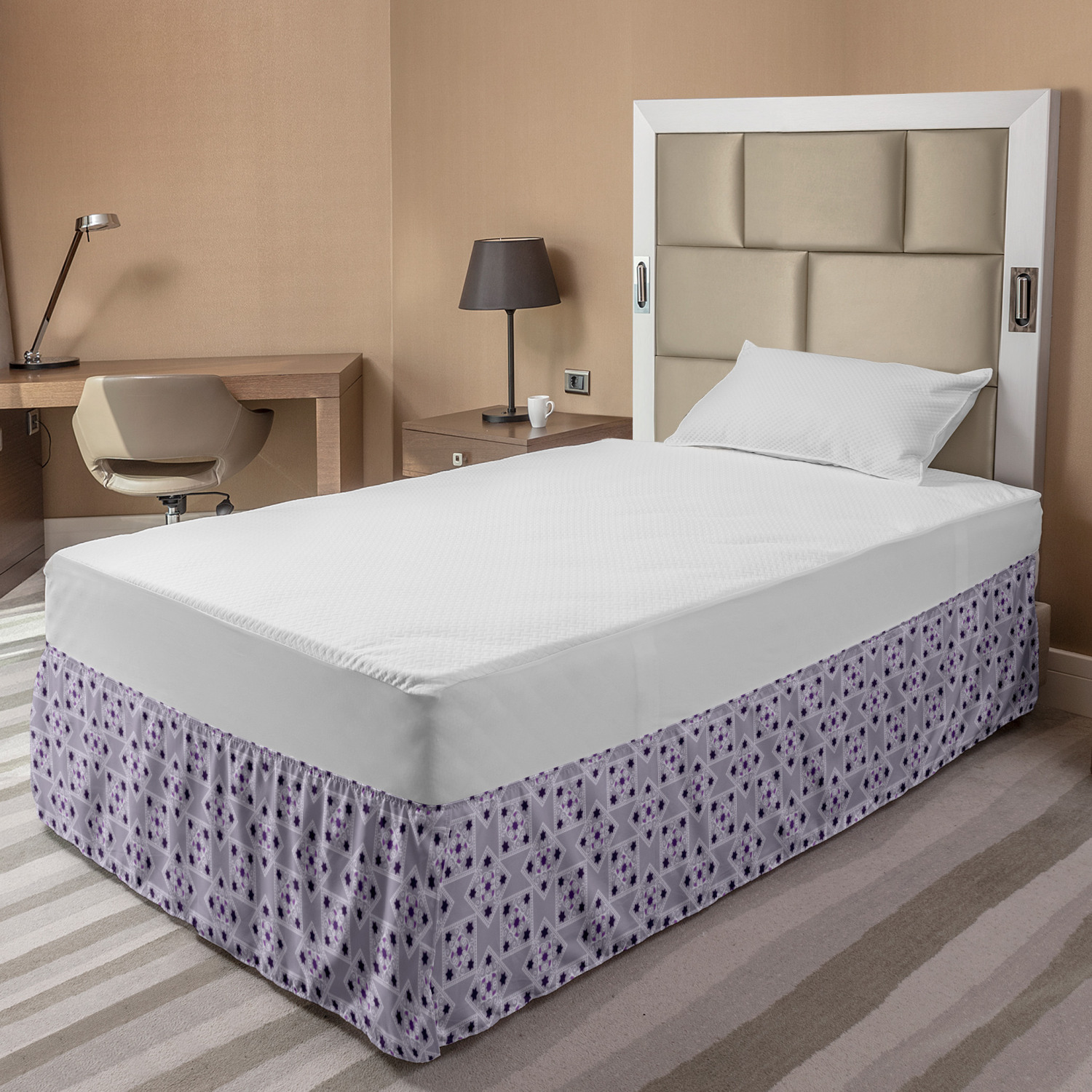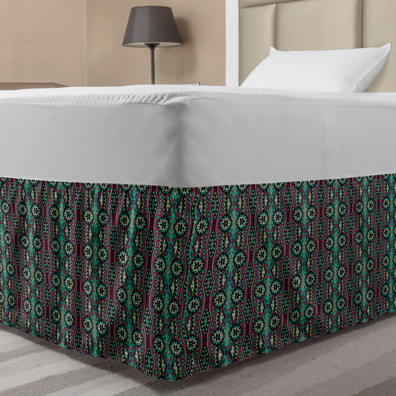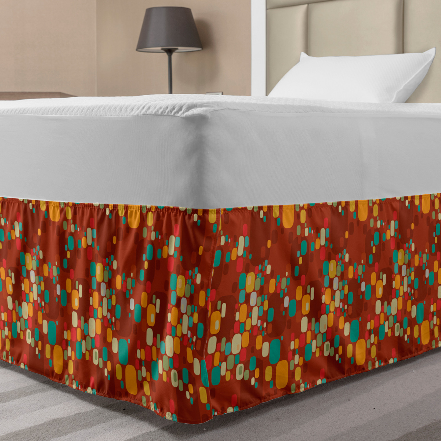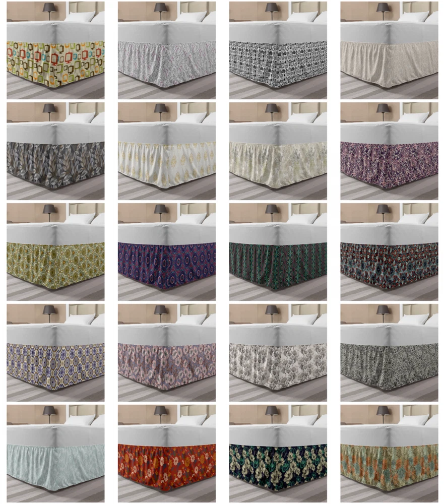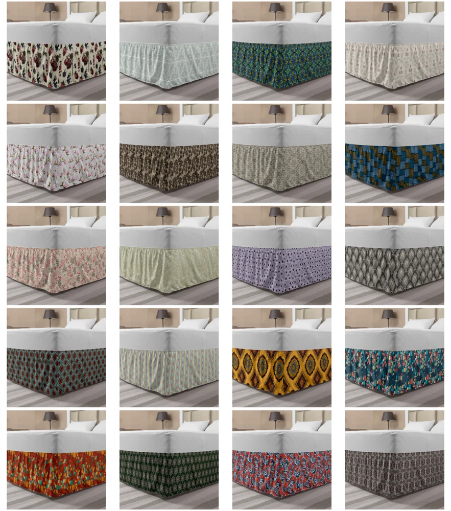 Ambesonne Vintage Scenes Bedskirt Elastic Wrap Around Skirt Gathered Design Ambesonne Bedskirt Bedroom Decor Wrap Around Elastic Bed Skirt Gathered Design In 4 sizes. 15 inches drop. All around wrap gathered. MADE IN TURKEY. MADE FROM - High quality 100% brushed soft microfiber fabric. Suitable for most types of beds. FEATURES - Install easily with elastic straps wrap under the mattress. Stays in place. Split corners. MACHINE WASHABLE - On cold cycle. Dryer safe and iron easy. No fading colors. For bedroom decor. PRINTED - With state of the art digital printing technology. Long-lasting bold colors & clear image. Change your bedroom's style with a simple touch of bedskirt! Our bedskirts are very easy to use; you can easily put around this elastic bed skirt and fasten up with straps under your mattress. Bring new energy to your master suite with colors and thousands of different patterns. You can easily match your bedding sets with our varied bed skirts. You can play safe and create vintage decor easily with these bed ruffles that belongs to retro-times. But you can ask for novelty and combine this piece with your modern choices. Our bed skirt is smartly designed with modern split corners. And you don't need to worry if it gets dusty or dirty. Just machine wash in the cold cycle and tumble dry on low. Thanks to new printing techniques the colors will not fade easily. Design a neat look for your bed with this gathered bed skirt. It is designed with a slim/low style ruffle to catch a more contemporary line. You can give these bed skirts as a Christmas, birthday, wedding gift, mother's day or house warming gift. It can be a great present for your mother, father, newly married friends, grandmother, aunt, uncle. The digital images we display have the most accurate color possible, however, due to differences in computer monitors, we cannot be responsible for variations in color between the actual product and your screen. Due to manual measurement, please kindly allow 1-2 cm discrepancy.