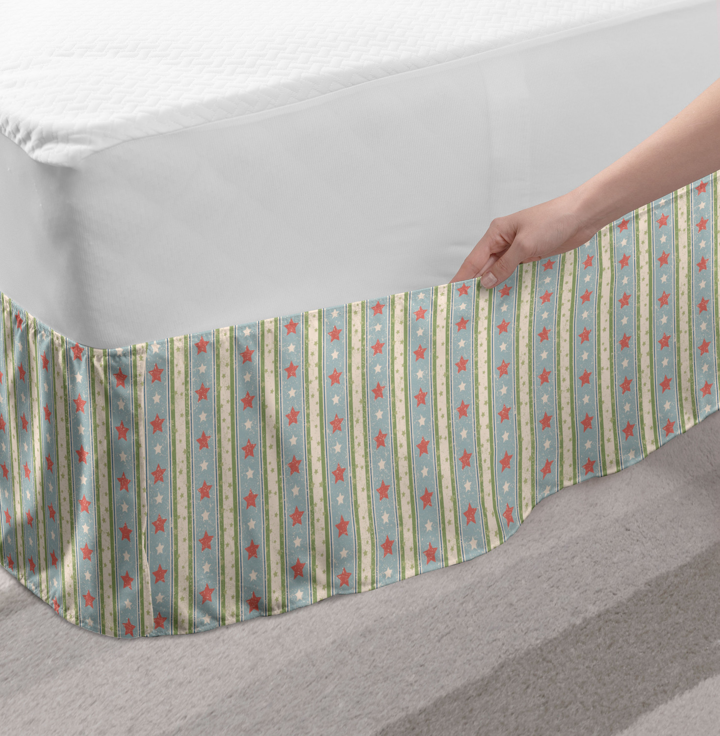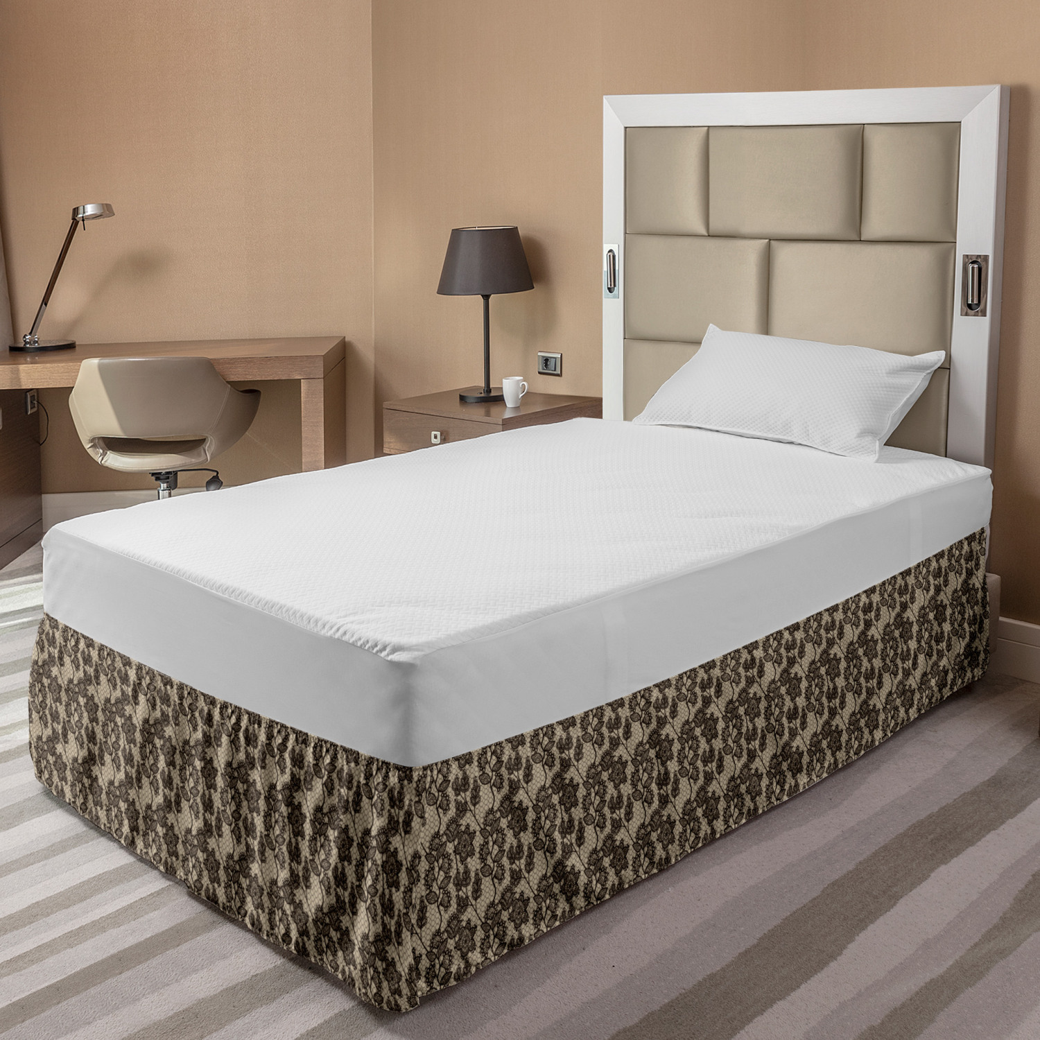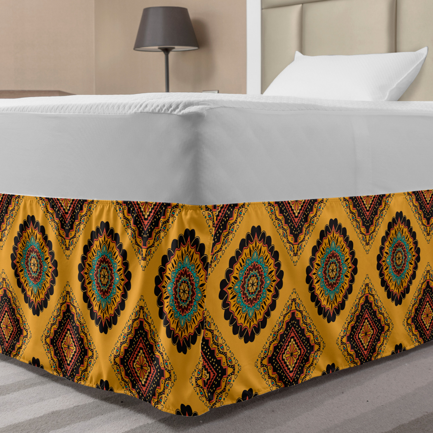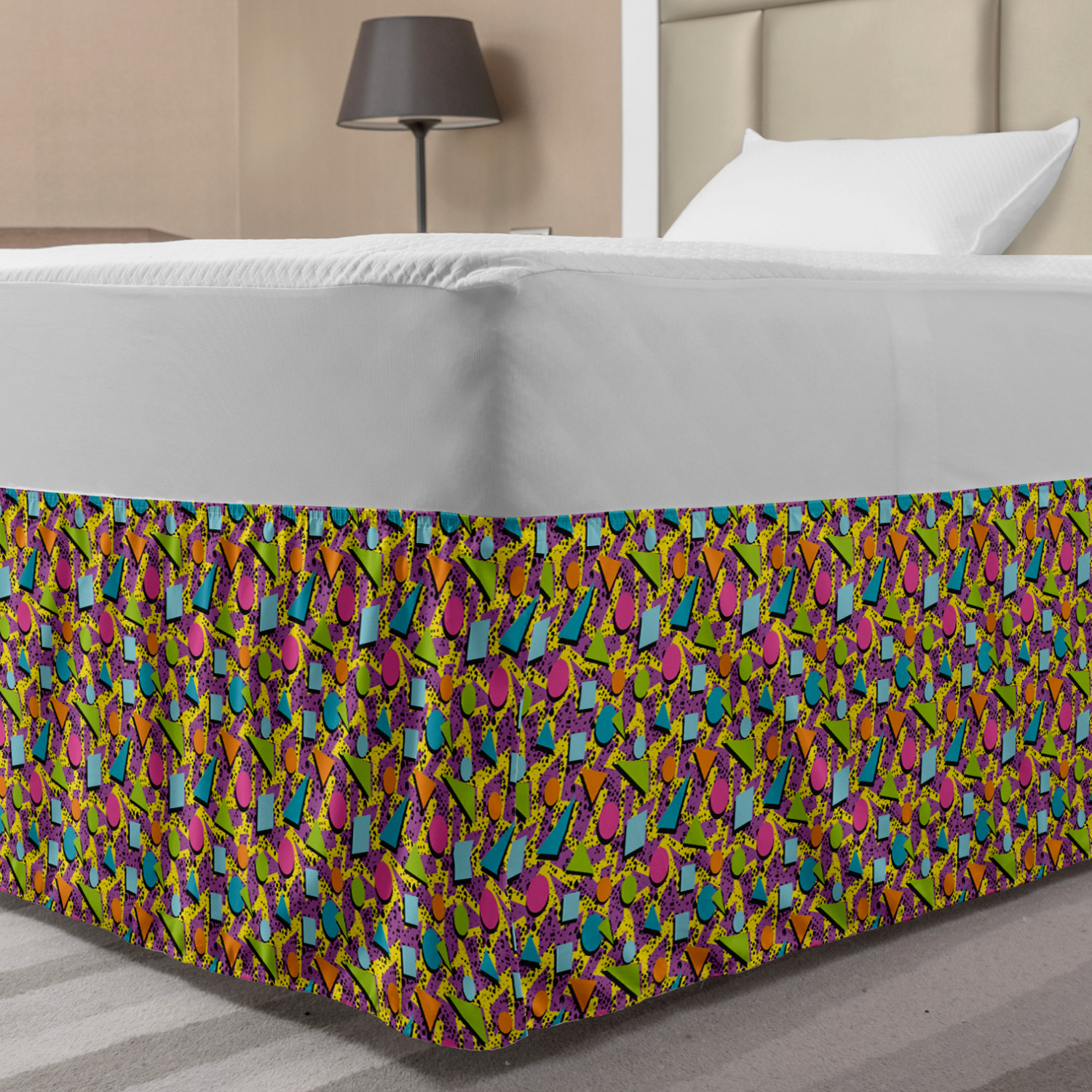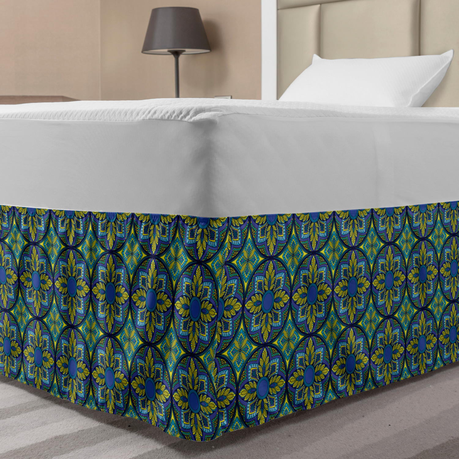 Ambesonne Vintage Scenes Bedskirt Elastic Wrap Around Skirt Gathered Design Ambesonne Bedskirt Bedroom Decor Wrap Around Elastic Bed Skirt Gathered Design In 4 sizes. 15 inches drop. All around wrap gathered. MADE IN TURKEY. MADE FROM - High quality 100% brushed soft microfiber fabric. Suitable for most types of beds. FEATURES - Install easily with elastic straps wrap under the mattress. Stays in place. Split corners. MACHINE WASHABLE - On cold cycle. Dryer safe and iron easy. No fading colors. For bedroom decor. PRINTED - With state of the art digital printing technology. Long-lasting bold colors & clear image. Change your bedroom's style with a simple touch of bedskirt! Our bedskirts are very easy to use; you can easily put around this elastic bed skirt and fasten up with straps under your mattress. Bring new energy to your master suite with colors and thousands of different patterns. You can easily match your bedding sets with our varied bed skirts. You can play safe and create vintage decor easily with these bed ruffles that belongs to retro-times. But you can ask for novelty and combine this piece with your modern choices. Our bed skirt is smartly designed with modern split corners. And you don't need to worry if it gets dusty or dirty. Just machine wash in the cold cycle and tumble dry on low. Thanks to new printing techniques the colors will not fade easily. Design a neat look for your bed with this gathered bed skirt. It is designed with a slim/low style ruffle to catch a more contemporary line. You can give these bed skirts as a Christmas, birthday, wedding gift, mother's day or house warming gift. It can be a great present for your mother, father, newly married friends, grandmother, aunt, uncle. The digital images we display have the most accurate color possible, however, due to differences in computer monitors, we cannot be responsible for variations in color between the actual product and your screen. Due to manual measurement, please kindly allow 1-2 cm discrepancy.