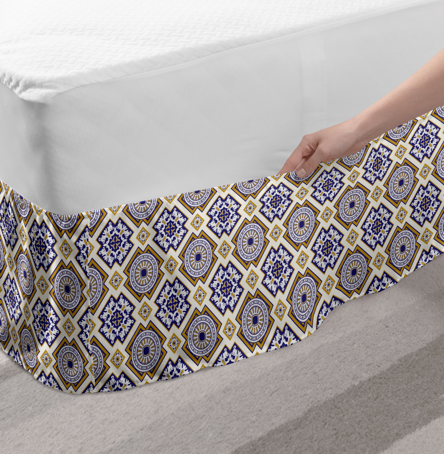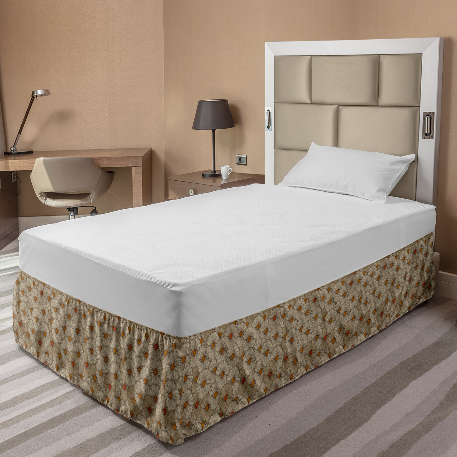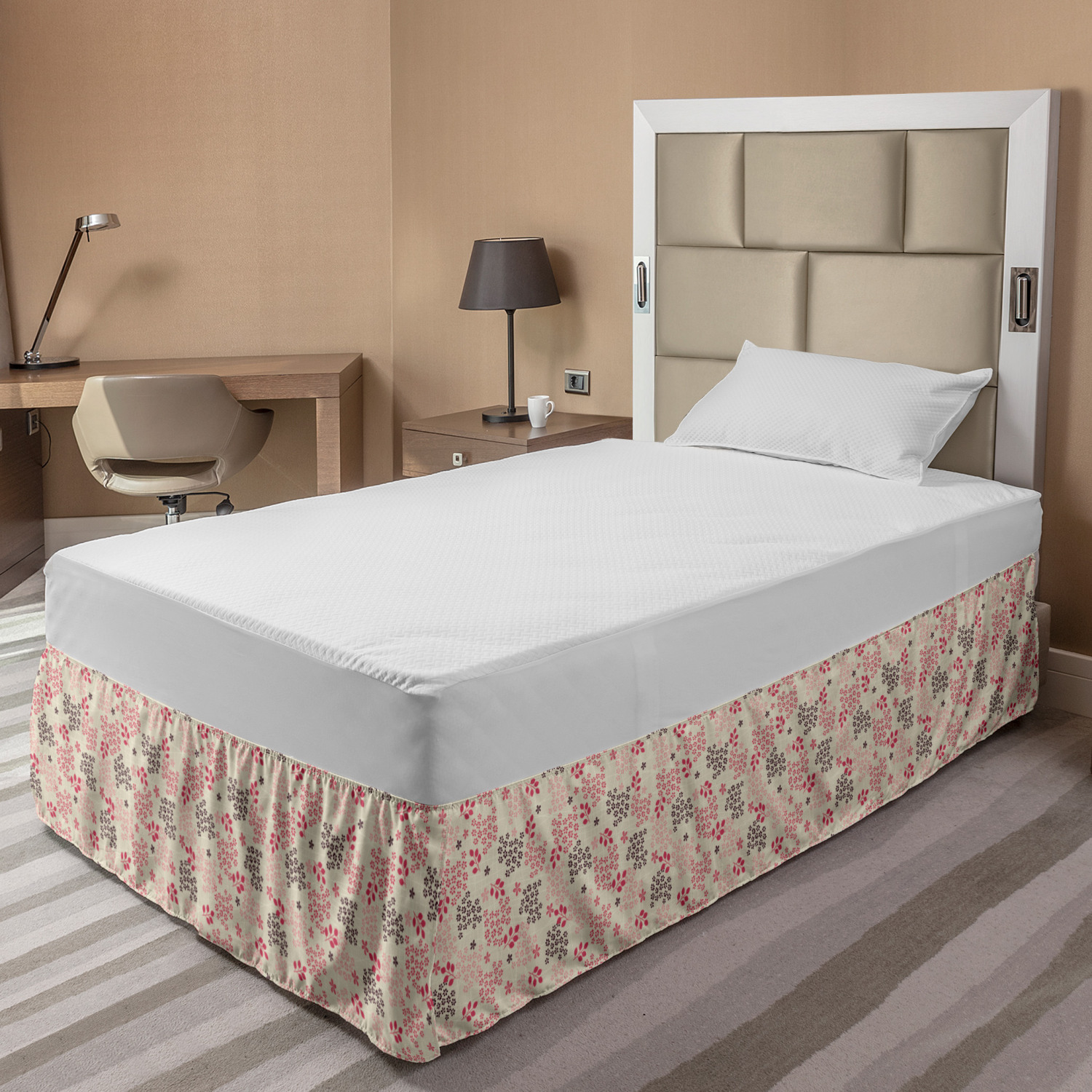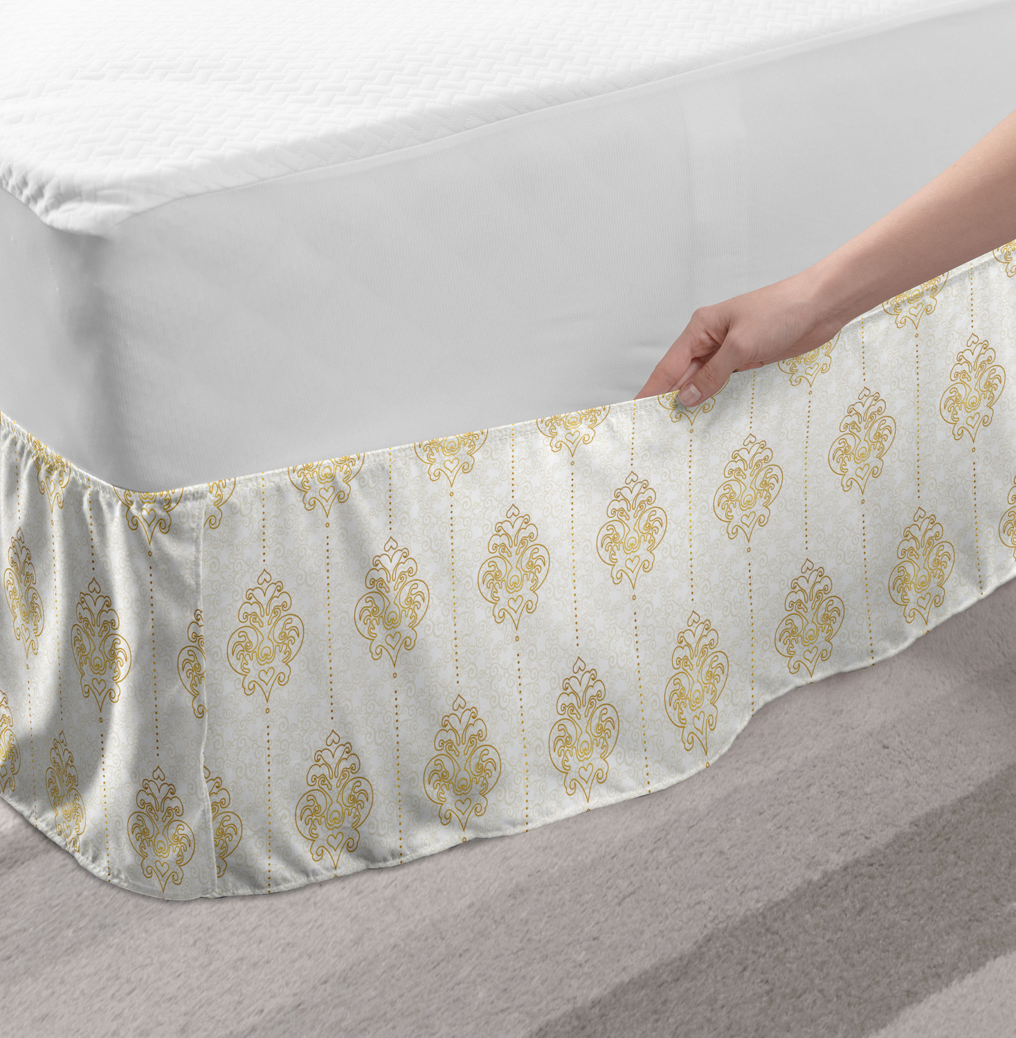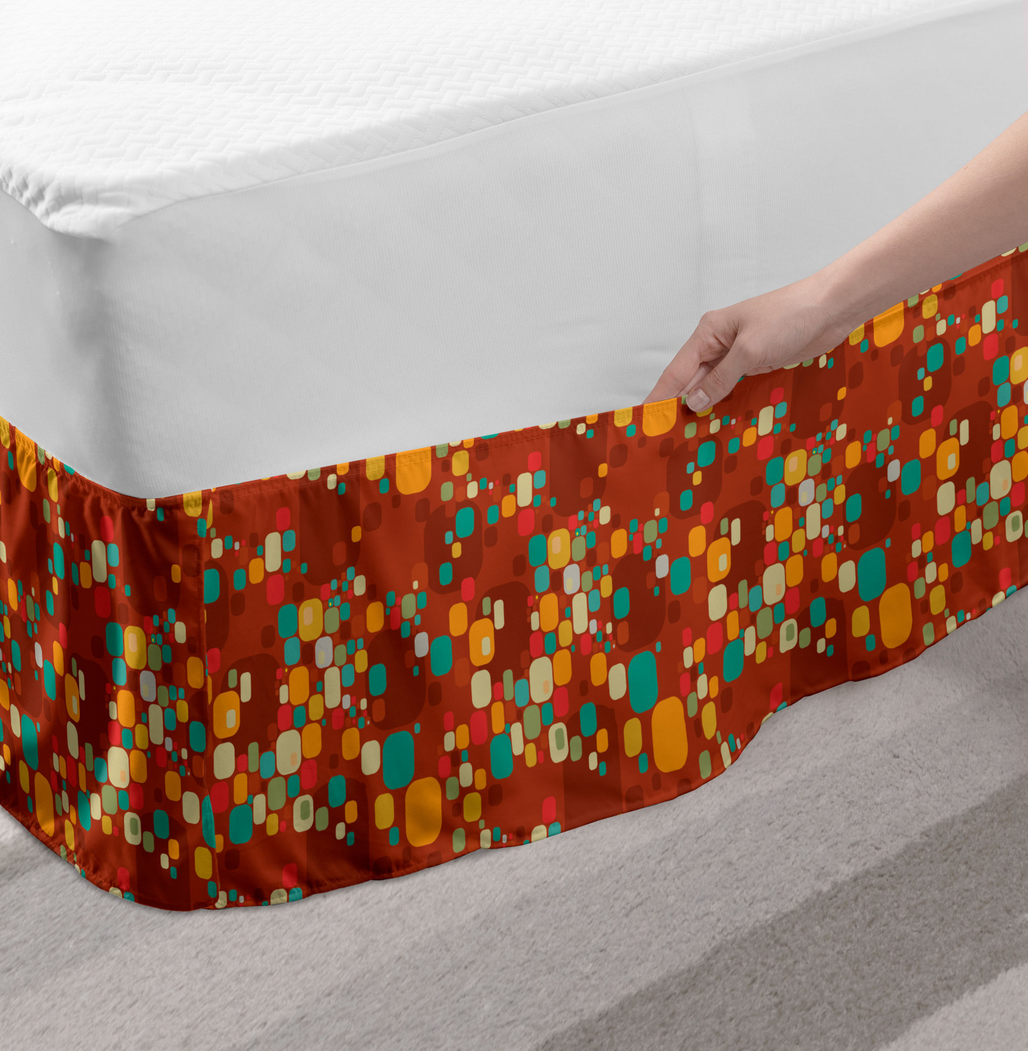 Ambesonne Vintage Scenes Bedskirt Elastic Wrap Around Skirt Gathered Design Ambesonne Bedskirt Bedroom Decor Wrap Around Elastic Bed Skirt Gathered Design In 4 sizes. 15 inches drop. All around wrap gathered. MADE IN TURKEY. MADE FROM - High quality 100% brushed soft microfiber fabric. Suitable for most types of beds. FEATURES - Install easily with elastic straps wrap under the mattress. Stays in place. Split corners. MACHINE WASHABLE - On cold cycle. Dryer safe and iron easy. No fading colors. For bedroom decor. PRINTED - With state of the art digital printing technology. Long-lasting bold colors & clear image. Change your bedroom's style with a simple touch of bedskirt! Our bedskirts are very easy to use; you can easily put around this elastic bed skirt and fasten up with straps under your mattress. Bring new energy to your master suite with colors and thousands of different patterns. You can easily match your bedding sets with our varied bed skirts. You can play safe and create vintage decor easily with these bed ruffles that belongs to retro-times. But you can ask for novelty and combine this piece with your modern choices. Our bed skirt is smartly designed with modern split corners. And you don't need to worry if it gets dusty or dirty. Just machine wash in the cold cycle and tumble dry on low. Thanks to new printing techniques the colors will not fade easily. Design a neat look for your bed with this gathered bed skirt. It is designed with a slim/low style ruffle to catch a more contemporary line. You can give these bed skirts as a Christmas, birthday, wedding gift, mother's day or house warming gift. It can be a great present for your mother, father, newly married friends, grandmother, aunt, uncle. The digital images we display have the most accurate color possible, however, due to differences in computer monitors, we cannot be responsible for variations in color between the actual product and your screen. Due to manual measurement, please kindly allow 1-2 cm discrepancy.
