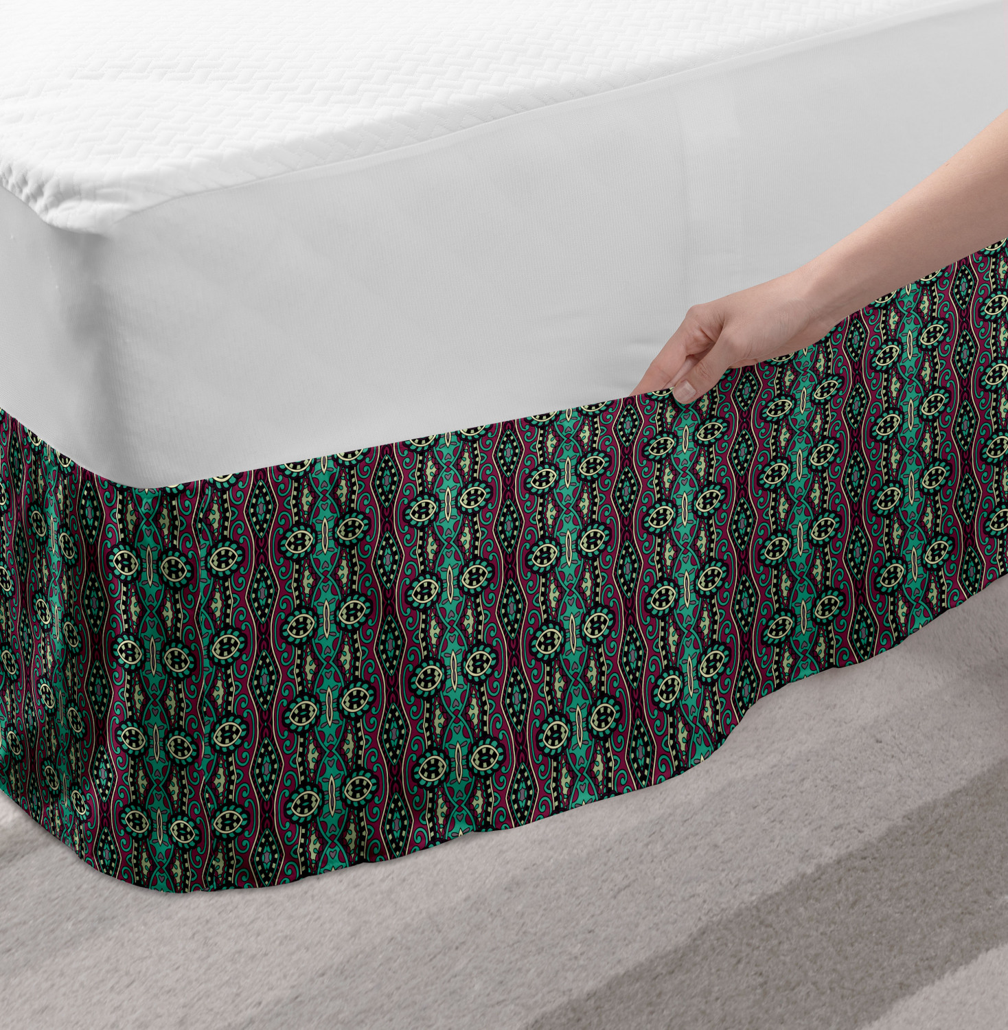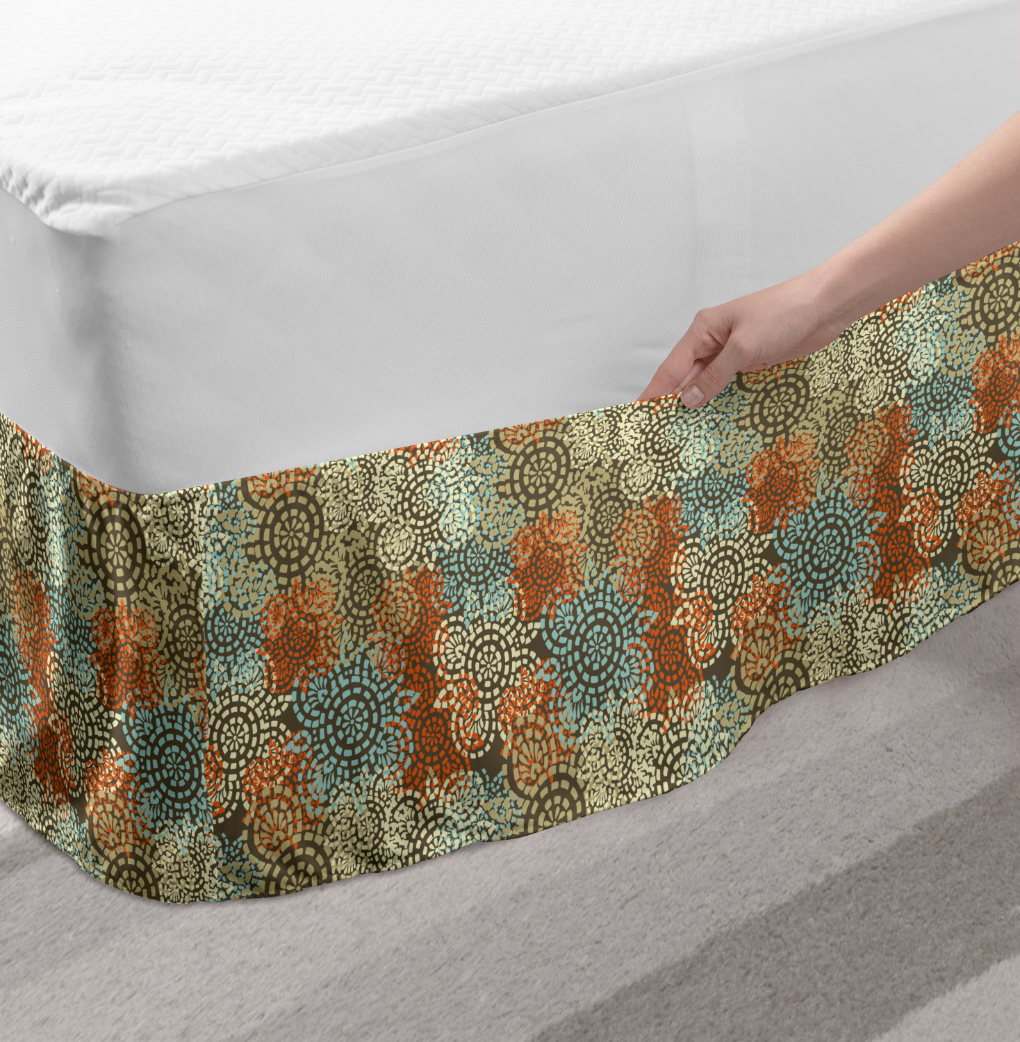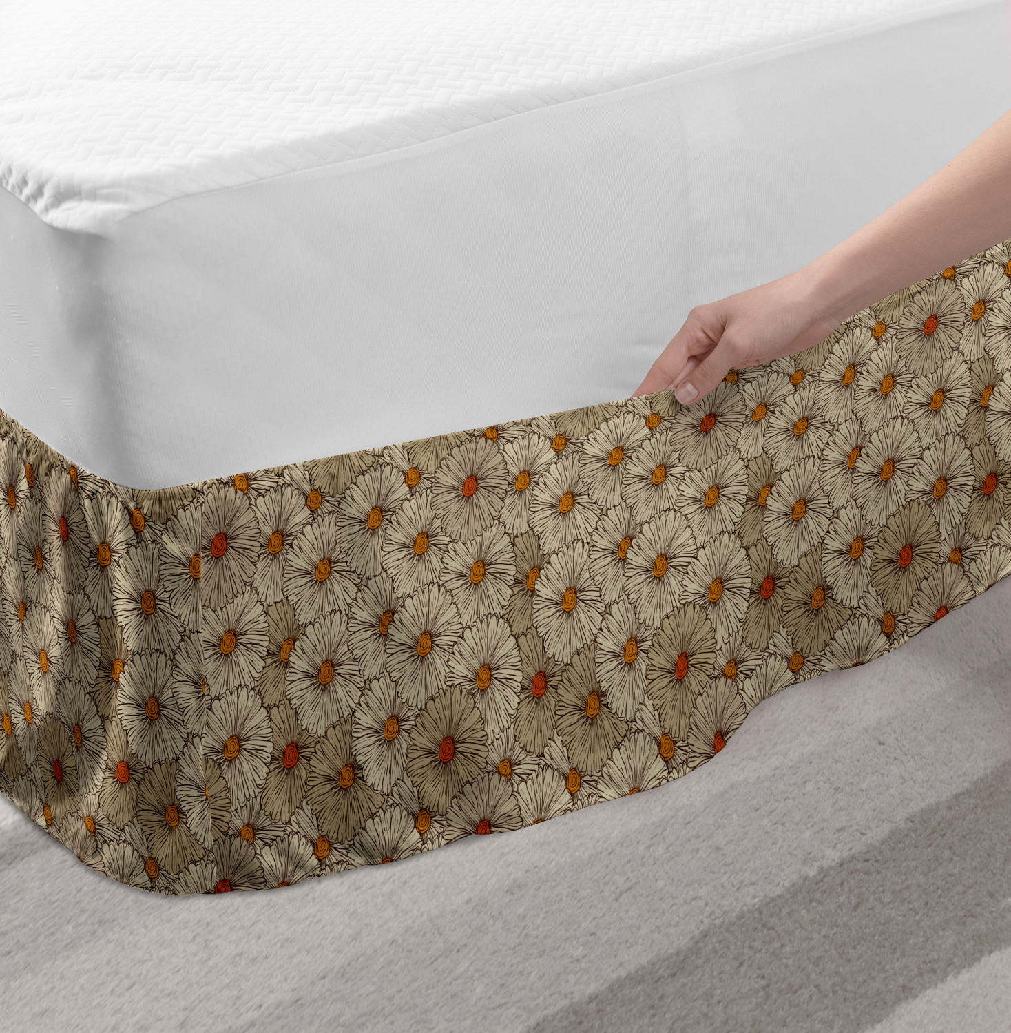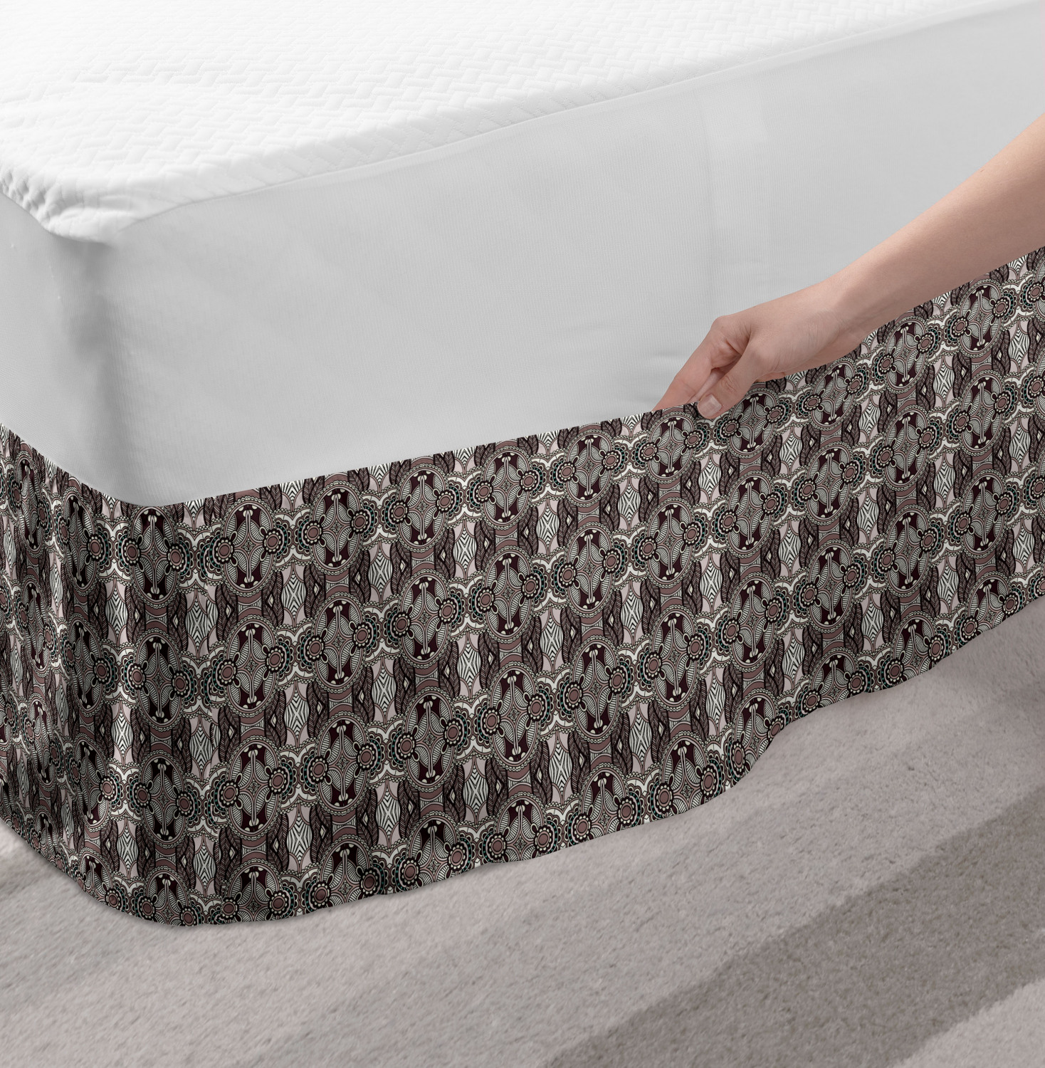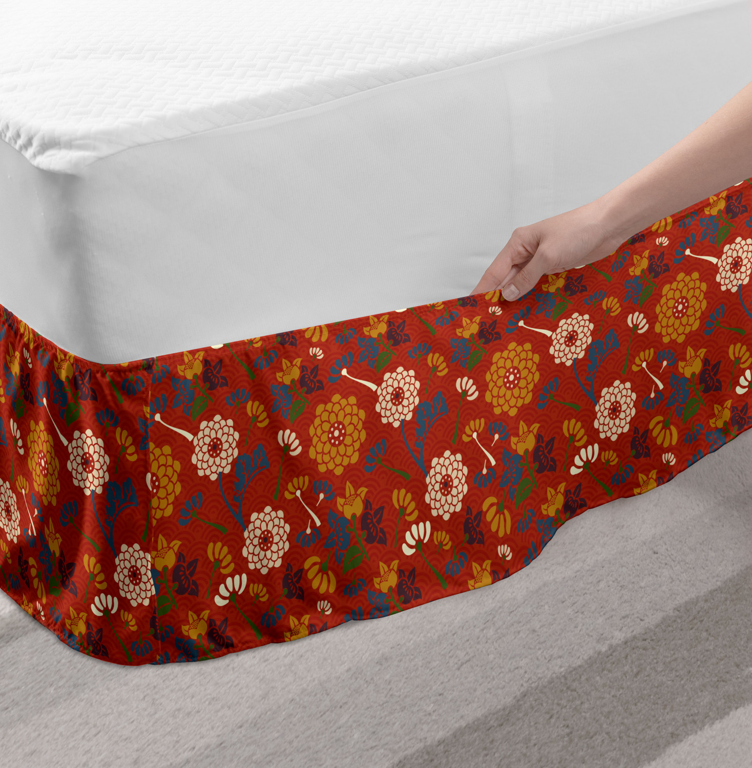 Ambesonne Vintage Scenes Bedskirt Elastic Wrap Around Skirt Gathered Design Ambesonne Bedskirt Bedroom Decor Wrap Around Elastic Bed Skirt Gathered Design In 4 sizes. 15 inches drop. All around wrap gathered. MADE IN TURKEY. MADE FROM - High quality 100% brushed soft microfiber fabric. Suitable for most types of beds. FEATURES - Install easily with elastic straps wrap under the mattress. Stays in place. Split corners. MACHINE WASHABLE - On cold cycle. Dryer safe and iron easy. No fading colors. For bedroom decor. PRINTED - With state of the art digital printing technology. Long-lasting bold colors & clear image. Change your bedroom's style with a simple touch of bedskirt! Our bedskirts are very easy to use; you can easily put around this elastic bed skirt and fasten up with straps under your mattress. Bring new energy to your master suite with colors and thousands of different patterns. You can easily match your bedding sets with our varied bed skirts. You can play safe and create vintage decor easily with these bed ruffles that belongs to retro-times. But you can ask for novelty and combine this piece with your modern choices. Our bed skirt is smartly designed with modern split corners. And you don't need to worry if it gets dusty or dirty. Just machine wash in the cold cycle and tumble dry on low. Thanks to new printing techniques the colors will not fade easily. Design a neat look for your bed with this gathered bed skirt. It is designed with a slim/low style ruffle to catch a more contemporary line. You can give these bed skirts as a Christmas, birthday, wedding gift, mother's day or house warming gift. It can be a great present for your mother, father, newly married friends, grandmother, aunt, uncle. The digital images we display have the most accurate color possible, however, due to differences in computer monitors, we cannot be responsible for variations in color between the actual product and your screen. Due to manual measurement, please kindly allow 1-2 cm discrepancy.