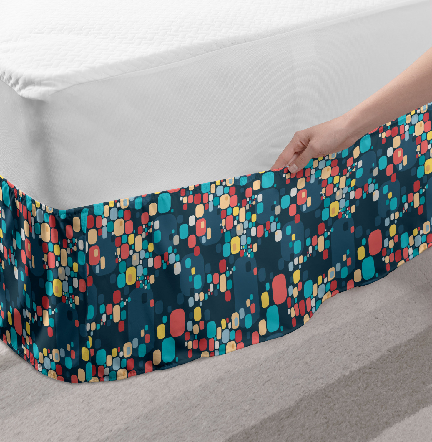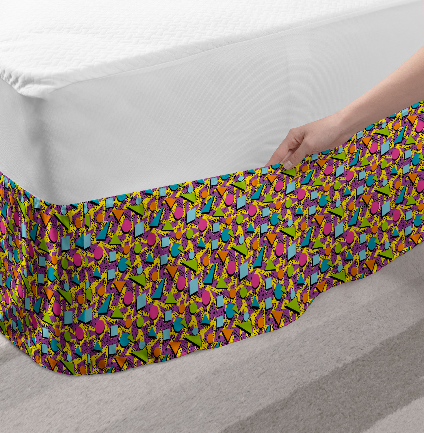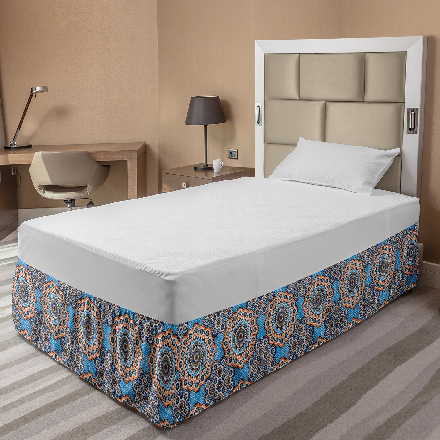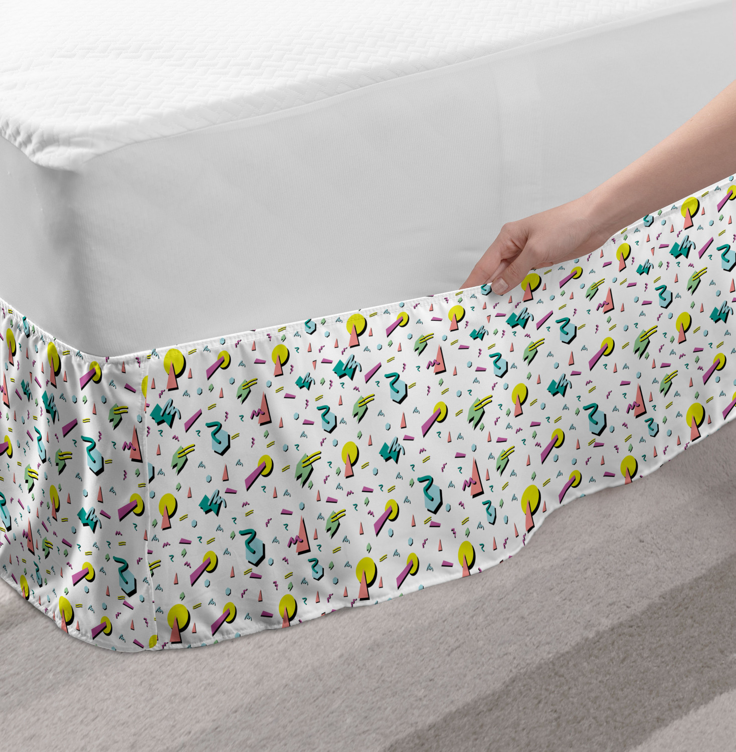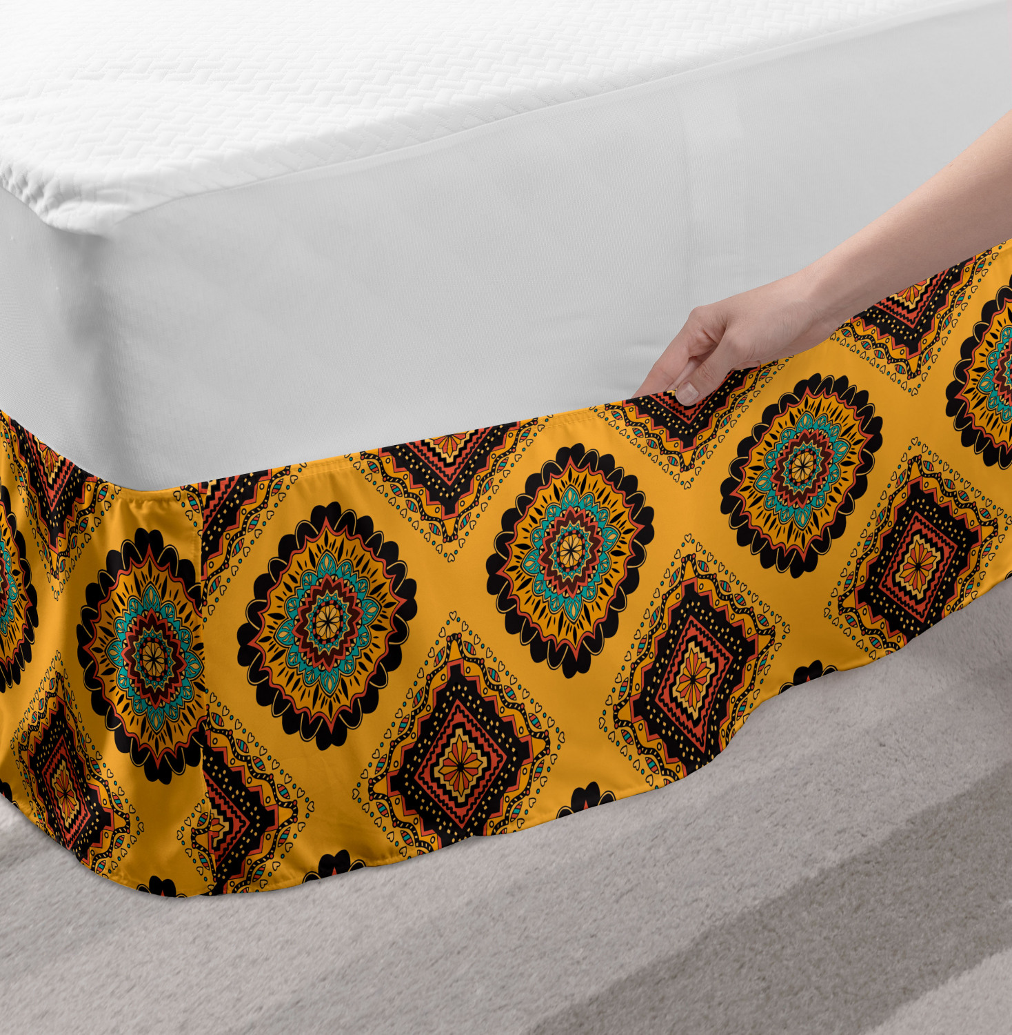 Ambesonne Vintage Scenes Bedskirt Elastic Wrap Around Skirt Gathered Design Ambesonne Bedskirt Bedroom Decor Wrap Around Elastic Bed Skirt Gathered Design In 4 sizes. 15 inches drop. All around wrap gathered. MADE IN TURKEY. MADE FROM - High quality 100% brushed soft microfiber fabric. Suitable for most types of beds. FEATURES - Install easily with elastic straps wrap under the mattress. Stays in place. Split corners. MACHINE WASHABLE - On cold cycle. Dryer safe and iron easy. No fading colors. For bedroom decor. PRINTED - With state of the art digital printing technology. Long-lasting bold colors & clear image. Change your bedroom's style with a simple touch of bedskirt! Our bedskirts are very easy to use; you can easily put around this elastic bed skirt and fasten up with straps under your mattress. Bring new energy to your master suite with colors and thousands of different patterns. You can easily match your bedding sets with our varied bed skirts. You can play safe and create vintage decor easily with these bed ruffles that belongs to retro-times. But you can ask for novelty and combine this piece with your modern choices. Our bed skirt is smartly designed with modern split corners. And you don't need to worry if it gets dusty or dirty. Just machine wash in the cold cycle and tumble dry on low. Thanks to new printing techniques the colors will not fade easily. Design a neat look for your bed with this gathered bed skirt. It is designed with a slim/low style ruffle to catch a more contemporary line. You can give these bed skirts as a Christmas, birthday, wedding gift, mother's day or house warming gift. It can be a great present for your mother, father, newly married friends, grandmother, aunt, uncle. The digital images we display have the most accurate color possible, however, due to differences in computer monitors, we cannot be responsible for variations in color between the actual product and your screen. Due to manual measurement, please kindly allow 1-2 cm discrepancy.