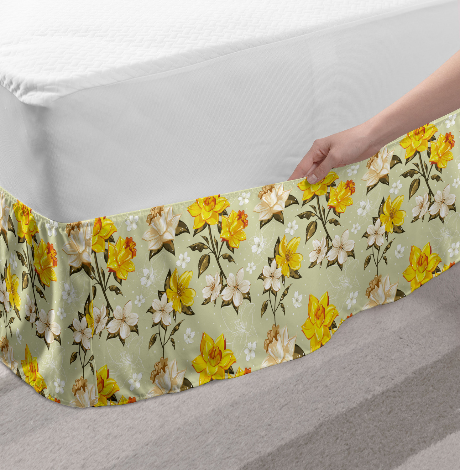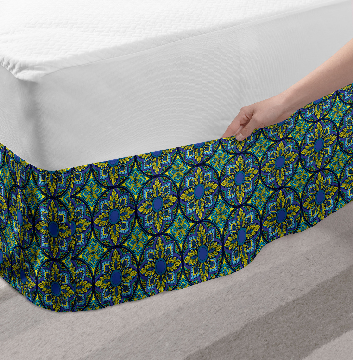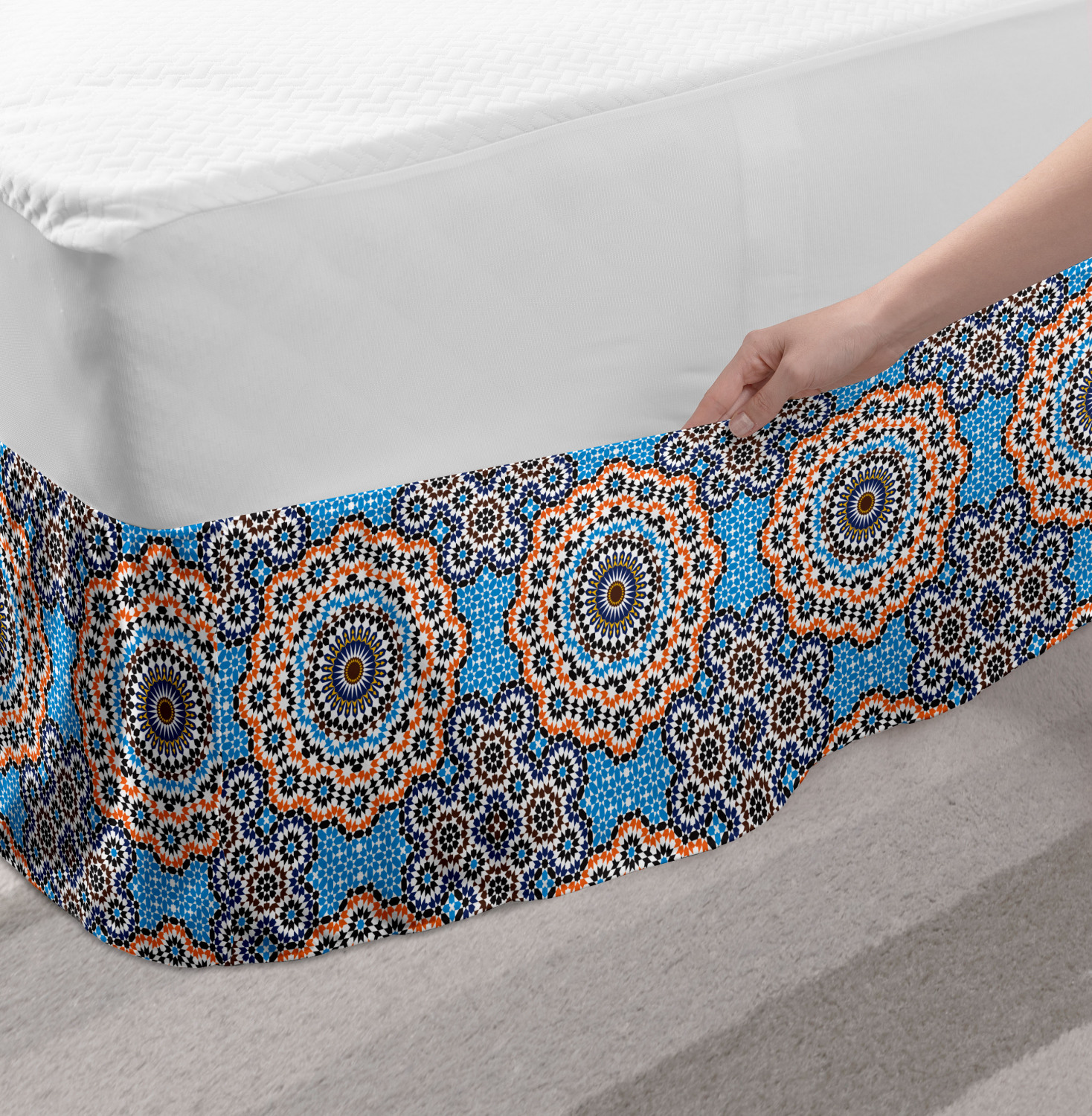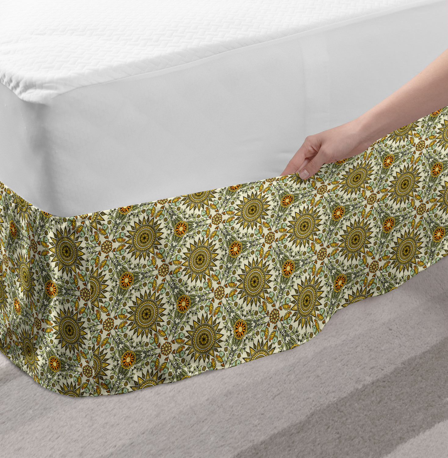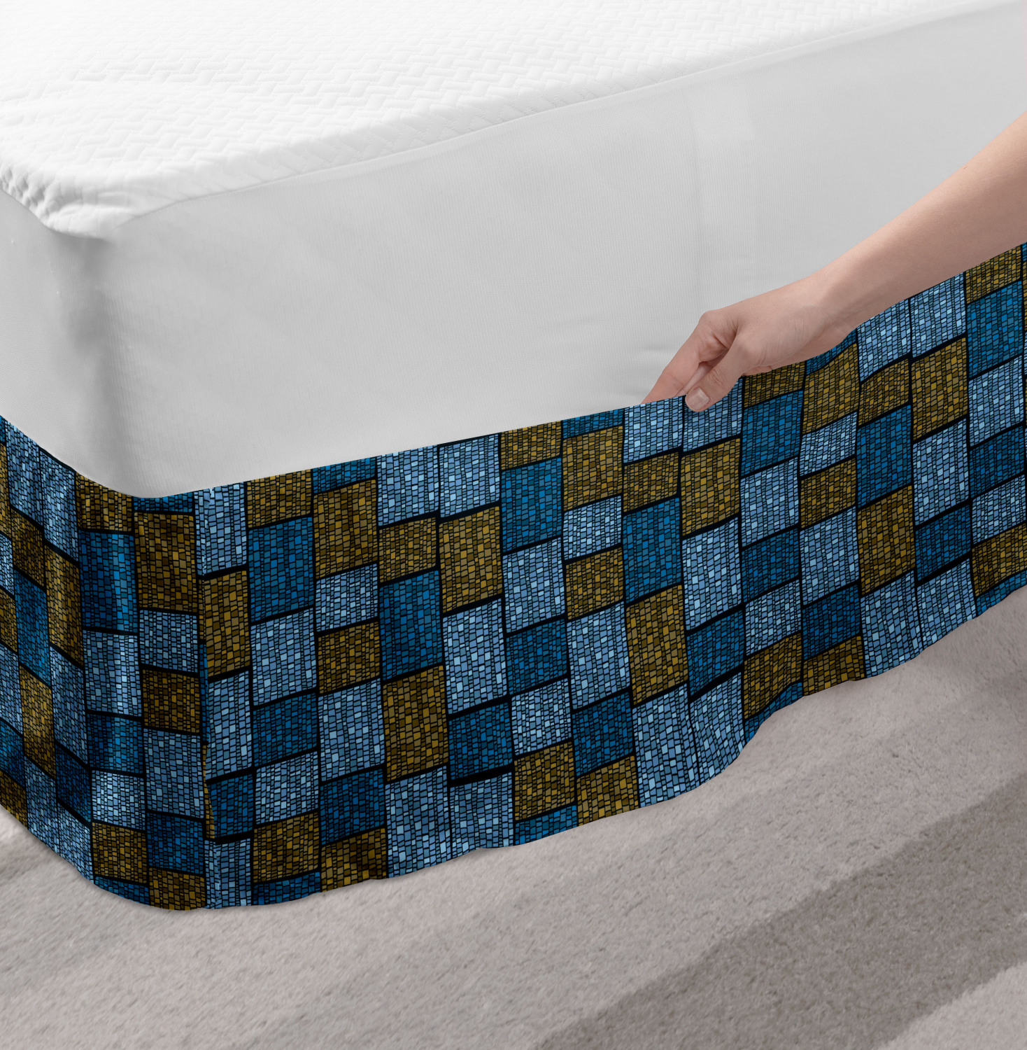 Ambesonne Vintage Scenes Bedskirt Elastic Wrap Around Skirt Gathered Design Ambesonne Bedskirt Bedroom Decor Wrap Around Elastic Bed Skirt Gathered Design In 4 sizes. 15 inches drop. All around wrap gathered. MADE IN TURKEY. MADE FROM - High quality 100% brushed soft microfiber fabric. Suitable for most types of beds. FEATURES - Install easily with elastic straps wrap under the mattress. Stays in place. Split corners. MACHINE WASHABLE - On cold cycle. Dryer safe and iron easy. No fading colors. For bedroom decor. PRINTED - With state of the art digital printing technology. Long-lasting bold colors & clear image. Change your bedroom's style with a simple touch of bedskirt! Our bedskirts are very easy to use; you can easily put around this elastic bed skirt and fasten up with straps under your mattress. Bring new energy to your master suite with colors and thousands of different patterns. You can easily match your bedding sets with our varied bed skirts. You can play safe and create vintage decor easily with these bed ruffles that belongs to retro-times. But you can ask for novelty and combine this piece with your modern choices. Our bed skirt is smartly designed with modern split corners. And you don't need to worry if it gets dusty or dirty. Just machine wash in the cold cycle and tumble dry on low. Thanks to new printing techniques the colors will not fade easily. Design a neat look for your bed with this gathered bed skirt. It is designed with a slim/low style ruffle to catch a more contemporary line. You can give these bed skirts as a Christmas, birthday, wedding gift, mother's day or house warming gift. It can be a great present for your mother, father, newly married friends, grandmother, aunt, uncle. The digital images we display have the most accurate color possible, however, due to differences in computer monitors, we cannot be responsible for variations in color between the actual product and your screen. Due to manual measurement, please kindly allow 1-2 cm discrepancy.