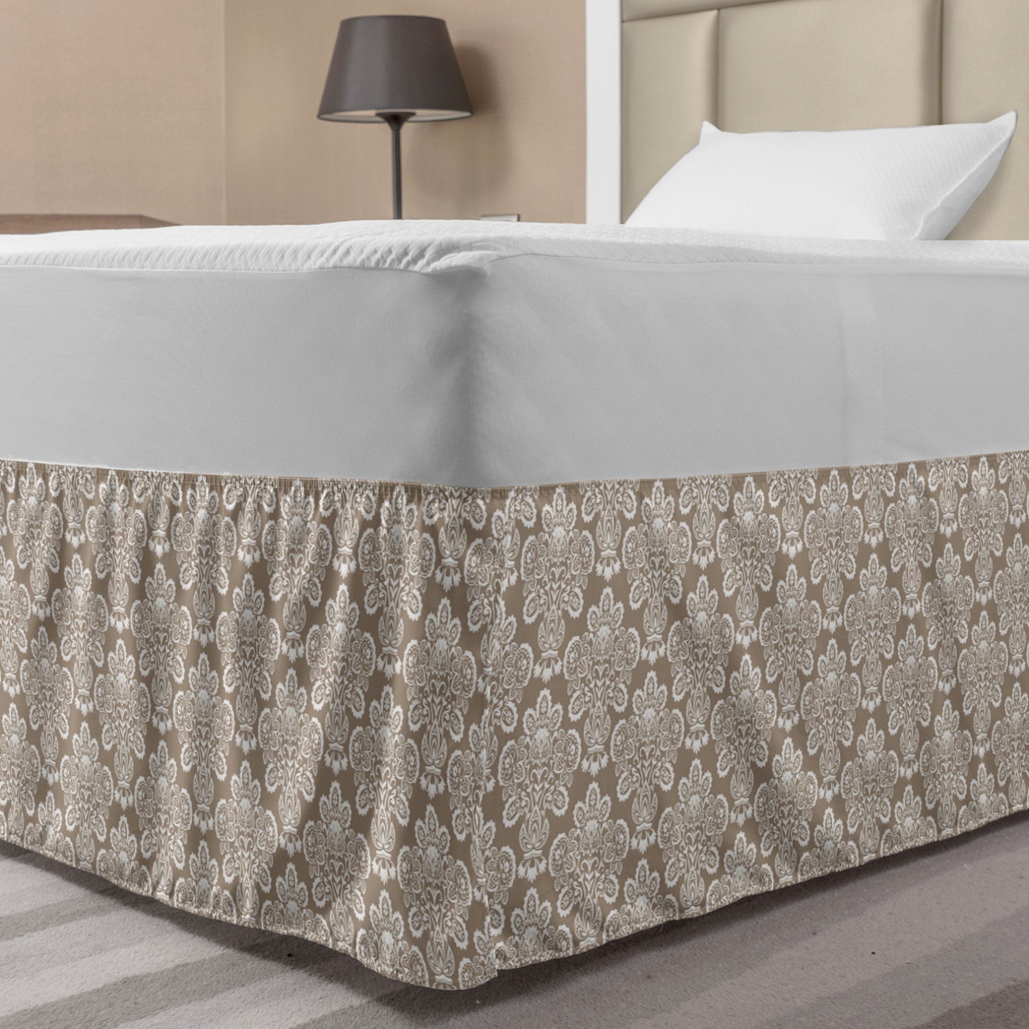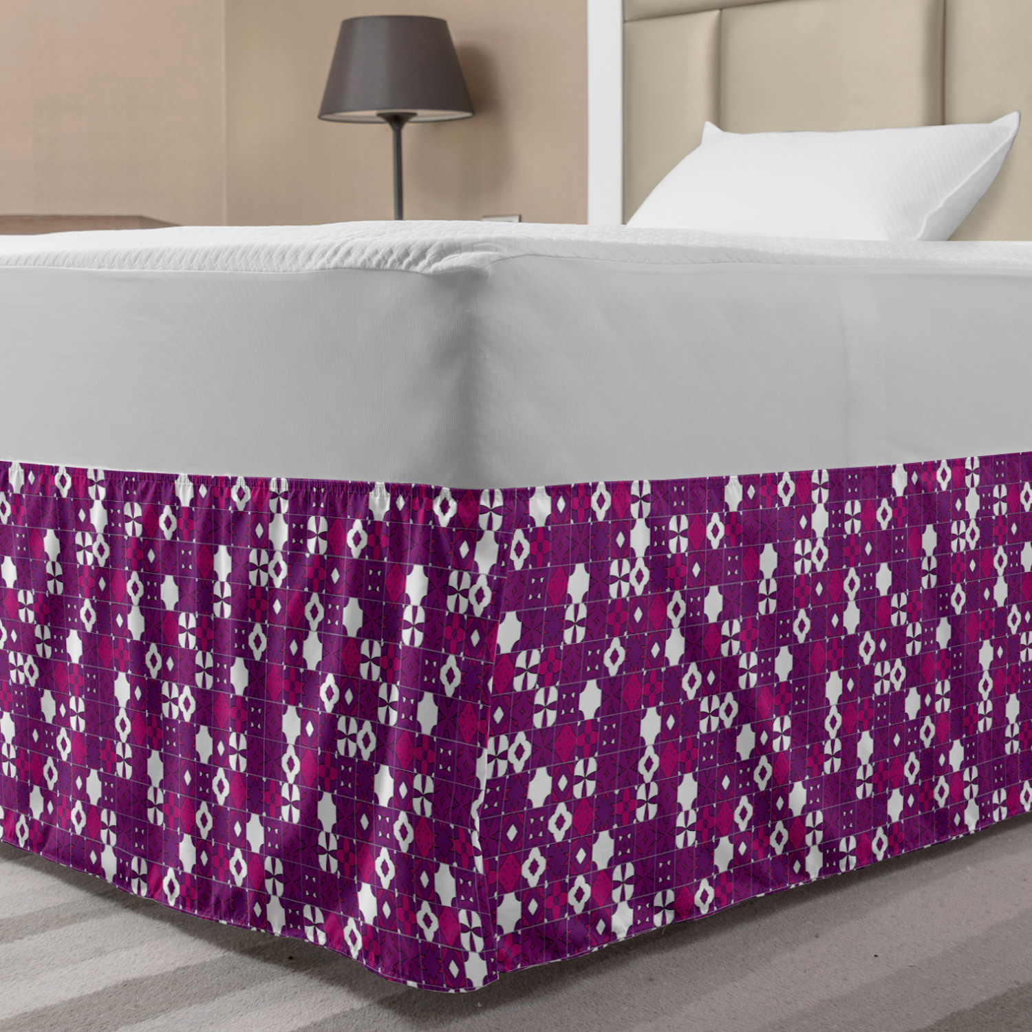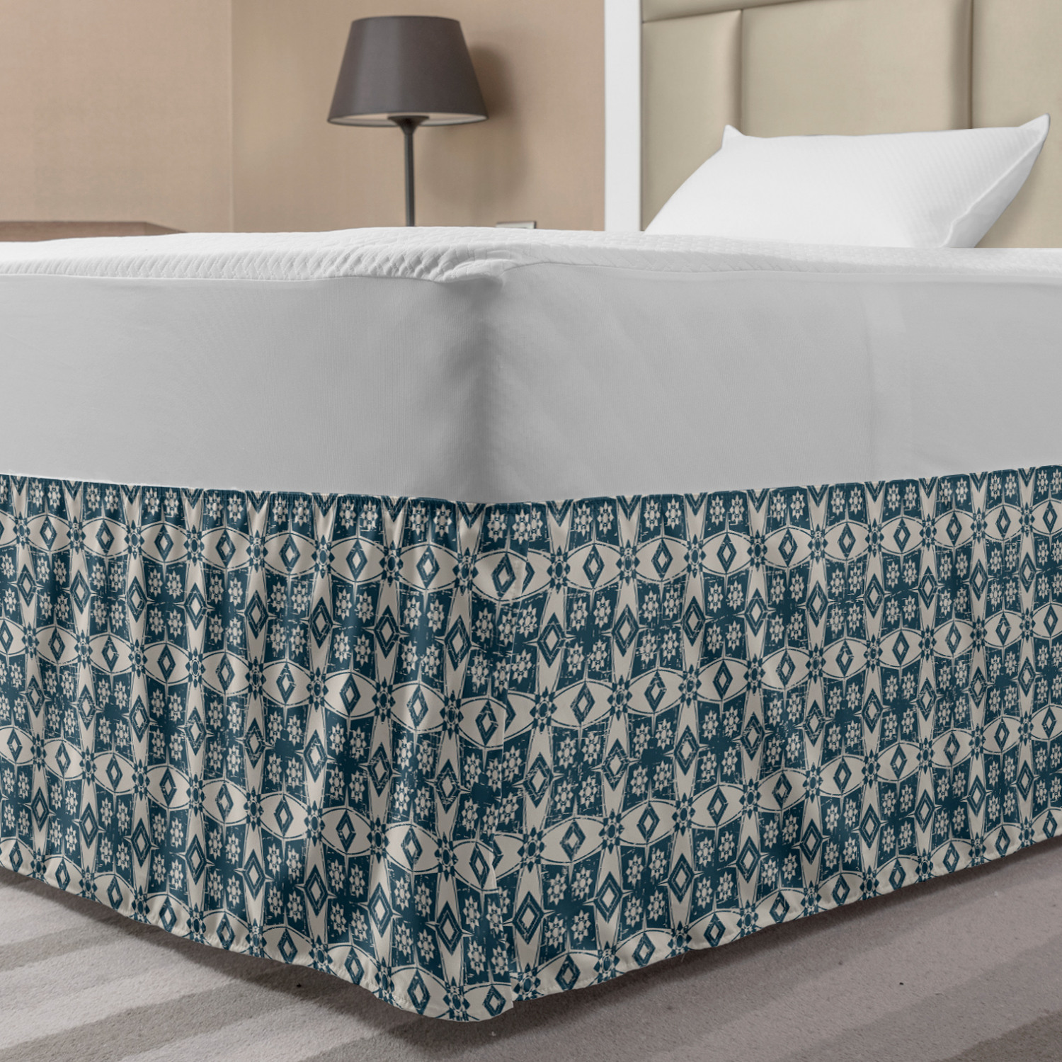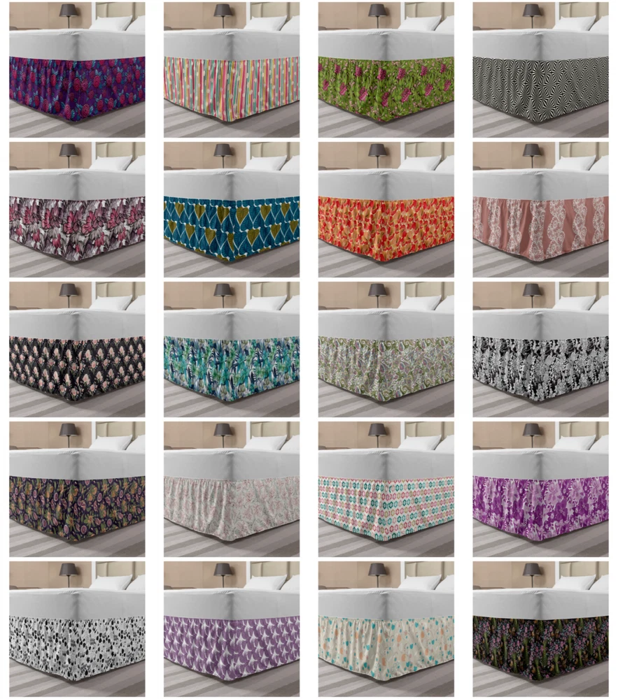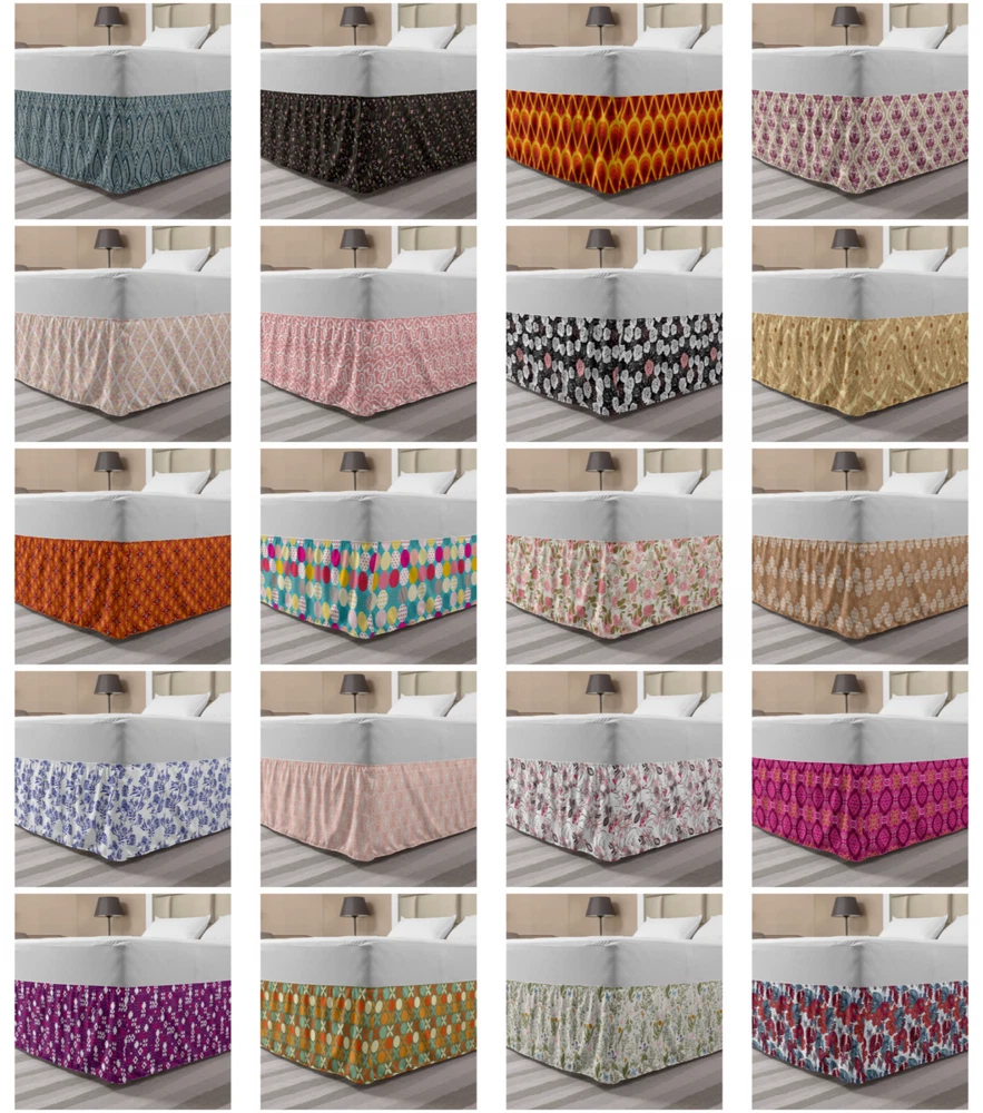 Ambesonne Vintage Themed Bedskirt Elastic Wrap Around Skirt Gathered Design Ambesonne Bedskirt Bedroom Decor Wrap Around Elastic Bed Skirt Gathered Design In 4 sizes. 15 inches drop. All around wrap gathered. MADE IN TURKEY. MADE FROM - High quality 100% brushed soft microfiber fabric. Suitable for most types of beds. FEATURES - Install easily with elastic straps wrap under the mattress. Stays in place. Split corners. MACHINE WASHABLE - On cold cycle. Dryer safe and iron easy. No fading colors. For bedroom decor. PRINTED - With state of the art digital printing technology. Long-lasting bold colors & clear image. Change your bedroom's style with a simple touch of bedskirt! Our bedskirts are very easy to use; you can easily put around this elastic bed skirt and fasten up with straps under your mattress. Bring new energy to your master suite with colors and thousands of different patterns. You can easily match your bedding sets with our varied bed skirts. You can play safe and create vintage decor easily with these bed ruffles that belongs to retro-times. But you can ask for novelty and combine this piece with your modern choices. Our bed skirt is smartly designed with modern split corners. And you don't need to worry if it gets dusty or dirty. Just machine wash in the cold cycle and tumble dry on low. Thanks to new printing techniques the colors will not fade easily. Design a neat look for your bed with this gathered bed skirt. It is designed with a slim/low style ruffle to catch a more contemporary line. You can give these bed skirts as a Christmas, birthday, wedding gift, mother's day or house warming gift. It can be a great present for your mother, father, newly married friends, grandmother, aunt, uncle. The digital images we display have the most accurate color possible, however, due to differences in computer monitors, we cannot be responsible for variations in color between the actual product and your screen. Due to manual measurement, please kindly allow 1-2 cm discrepancy.