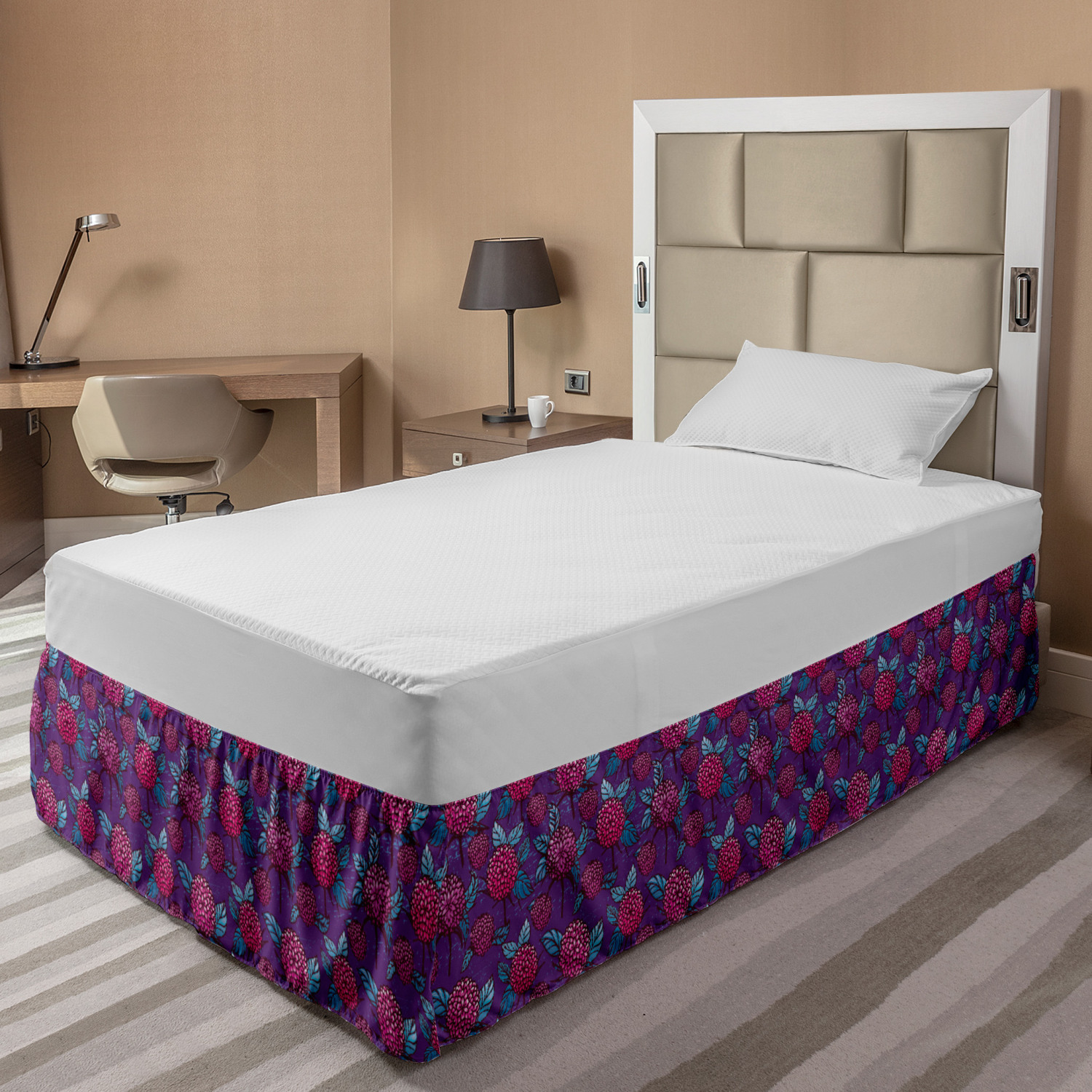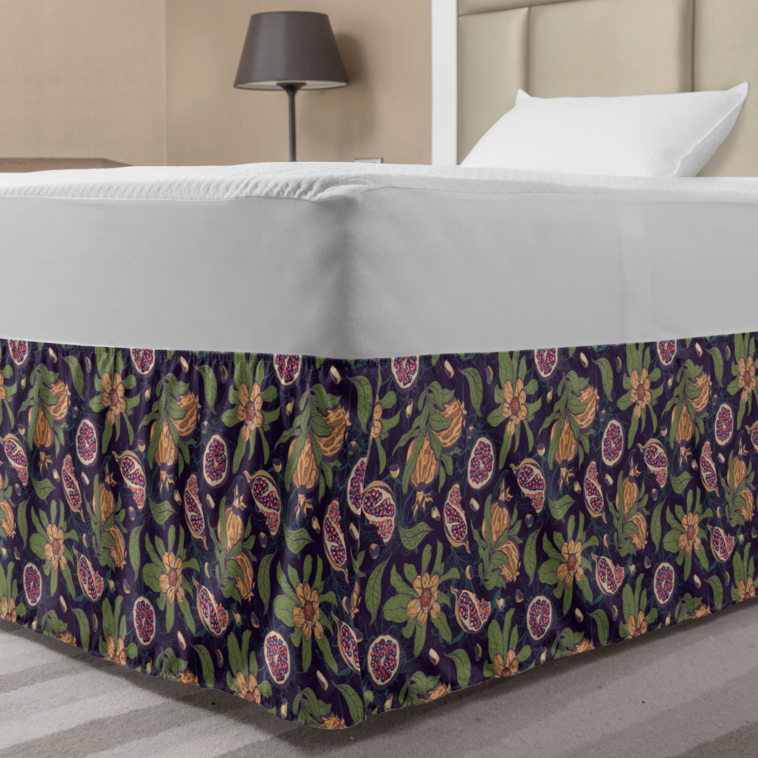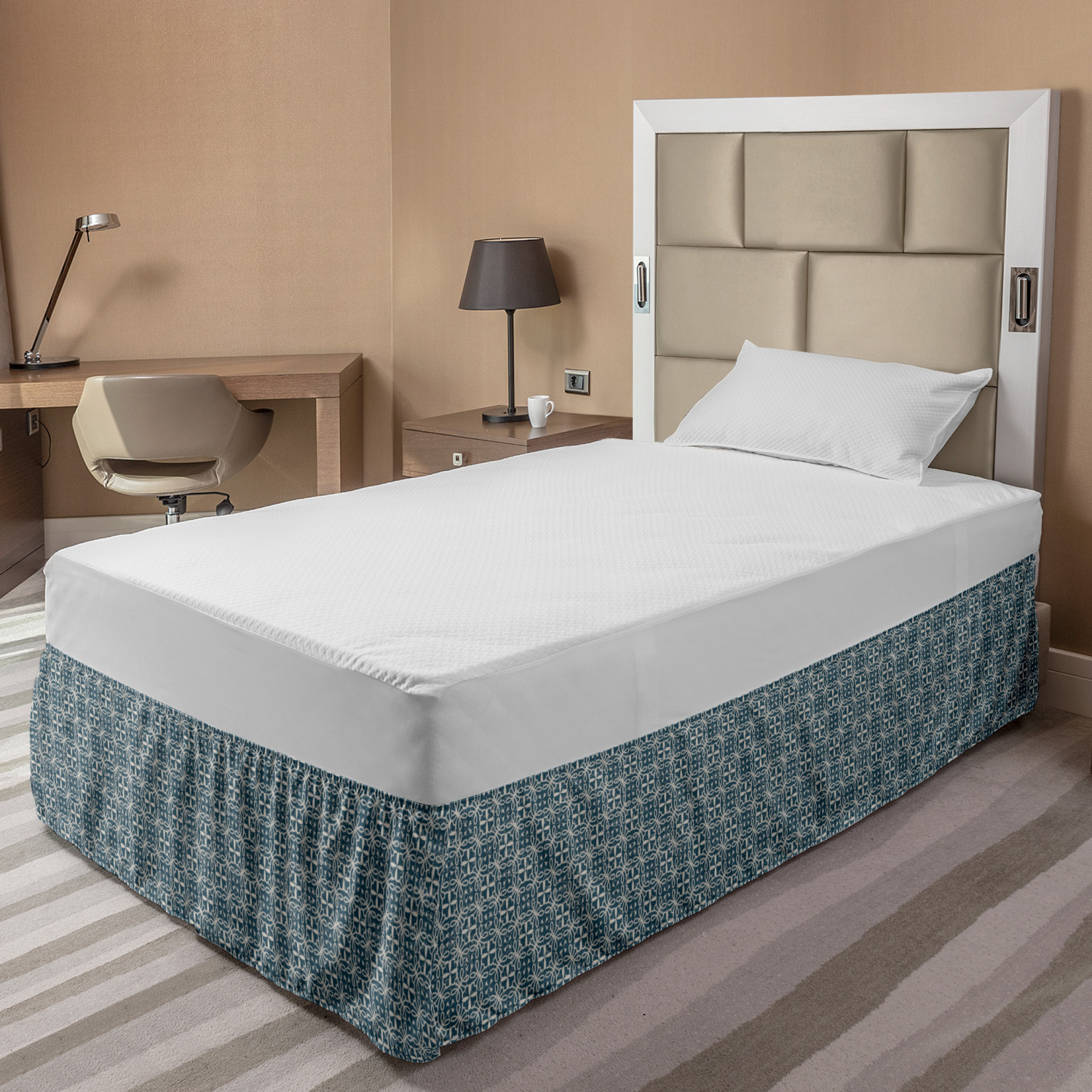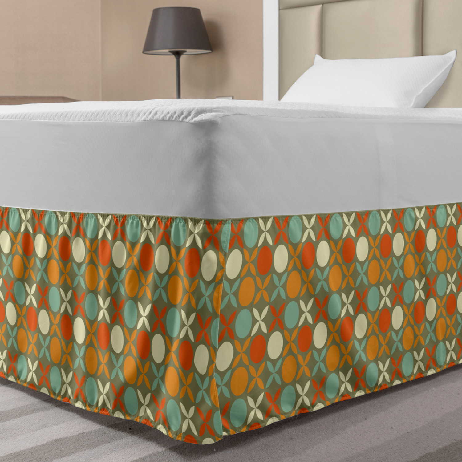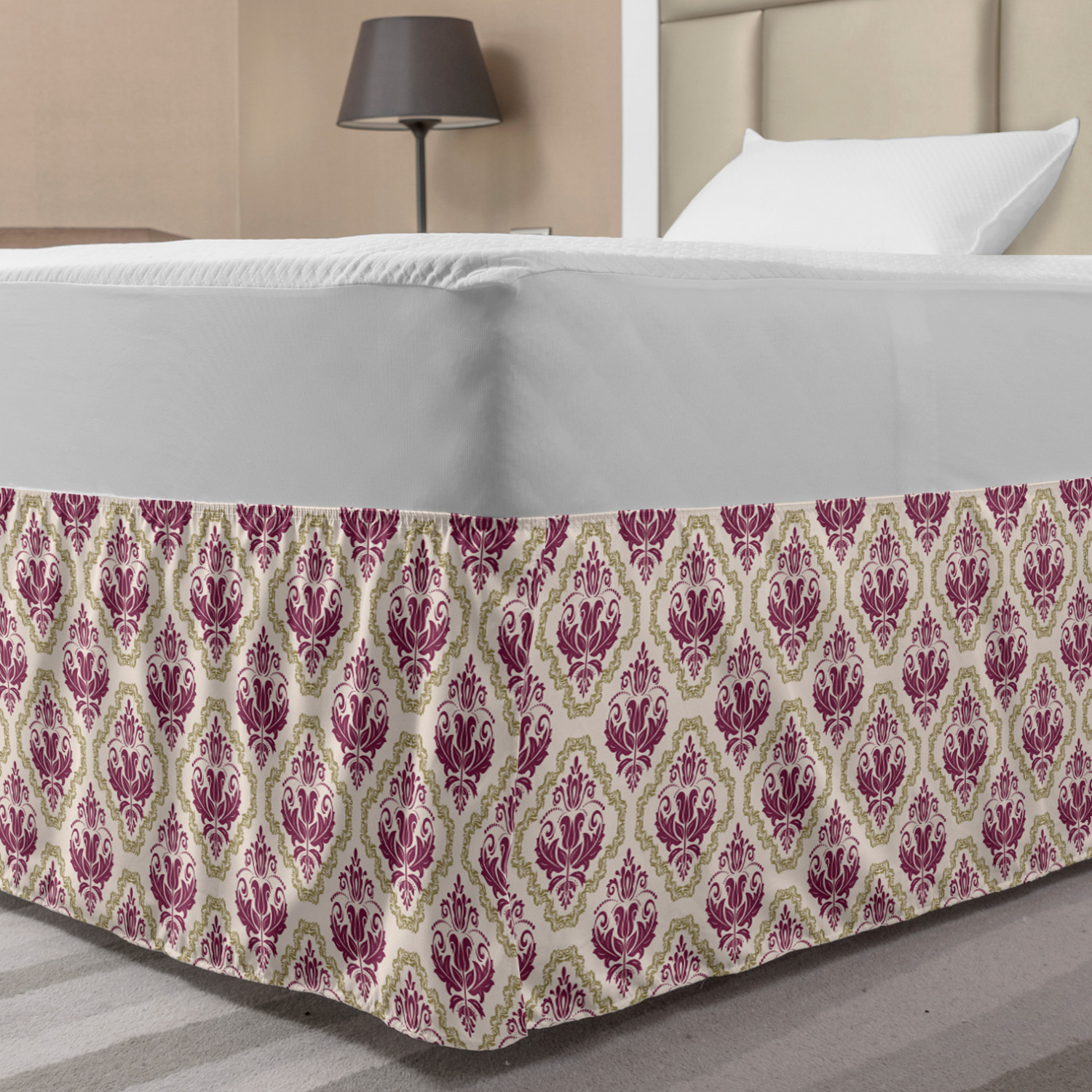 Ambesonne Vintage Themed Bedskirt Elastic Wrap Around Skirt Gathered Design Ambesonne Bedskirt Bedroom Decor Wrap Around Elastic Bed Skirt Gathered Design In 4 sizes. 15 inches drop. All around wrap gathered. MADE IN TURKEY. MADE FROM - High quality 100% brushed soft microfiber fabric. Suitable for most types of beds. FEATURES - Install easily with elastic straps wrap under the mattress. Stays in place. Split corners. MACHINE WASHABLE - On cold cycle. Dryer safe and iron easy. No fading colors. For bedroom decor. PRINTED - With state of the art digital printing technology. Long-lasting bold colors & clear image. Change your bedroom's style with a simple touch of bedskirt! Our bedskirts are very easy to use; you can easily put around this elastic bed skirt and fasten up with straps under your mattress. Bring new energy to your master suite with colors and thousands of different patterns. You can easily match your bedding sets with our varied bed skirts. You can play safe and create vintage decor easily with these bed ruffles that belongs to retro-times. But you can ask for novelty and combine this piece with your modern choices. Our bed skirt is smartly designed with modern split corners. And you don't need to worry if it gets dusty or dirty. Just machine wash in the cold cycle and tumble dry on low. Thanks to new printing techniques the colors will not fade easily. Design a neat look for your bed with this gathered bed skirt. It is designed with a slim/low style ruffle to catch a more contemporary line. You can give these bed skirts as a Christmas, birthday, wedding gift, mother's day or house warming gift. It can be a great present for your mother, father, newly married friends, grandmother, aunt, uncle. The digital images we display have the most accurate color possible, however, due to differences in computer monitors, we cannot be responsible for variations in color between the actual product and your screen. Due to manual measurement, please kindly allow 1-2 cm discrepancy.