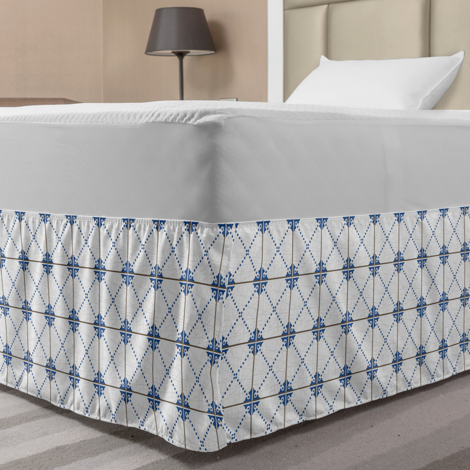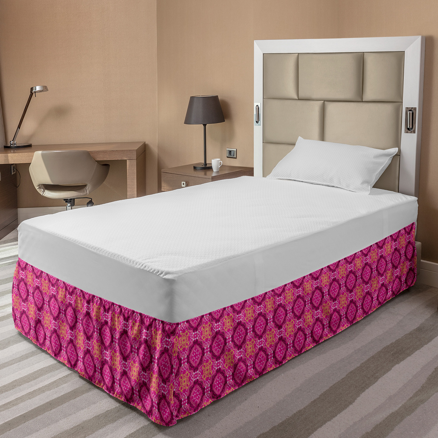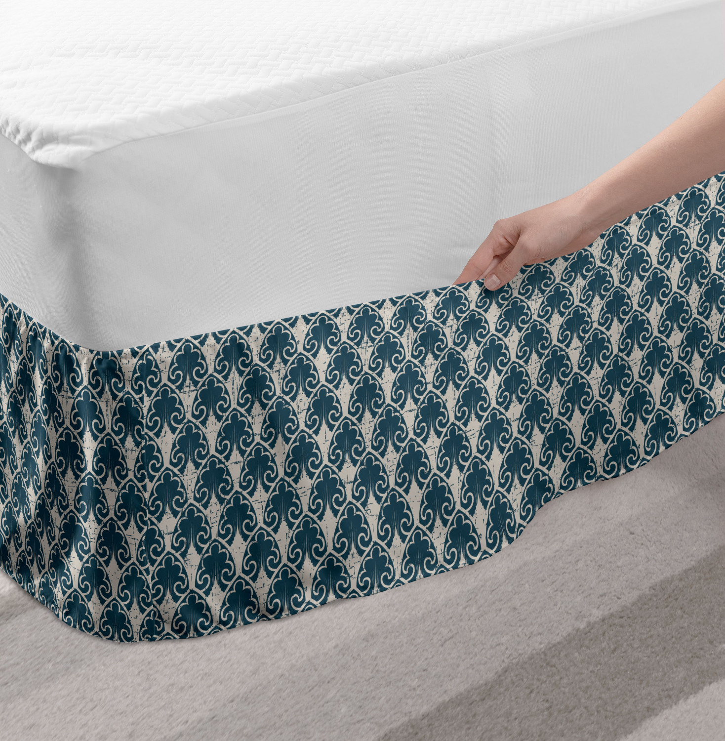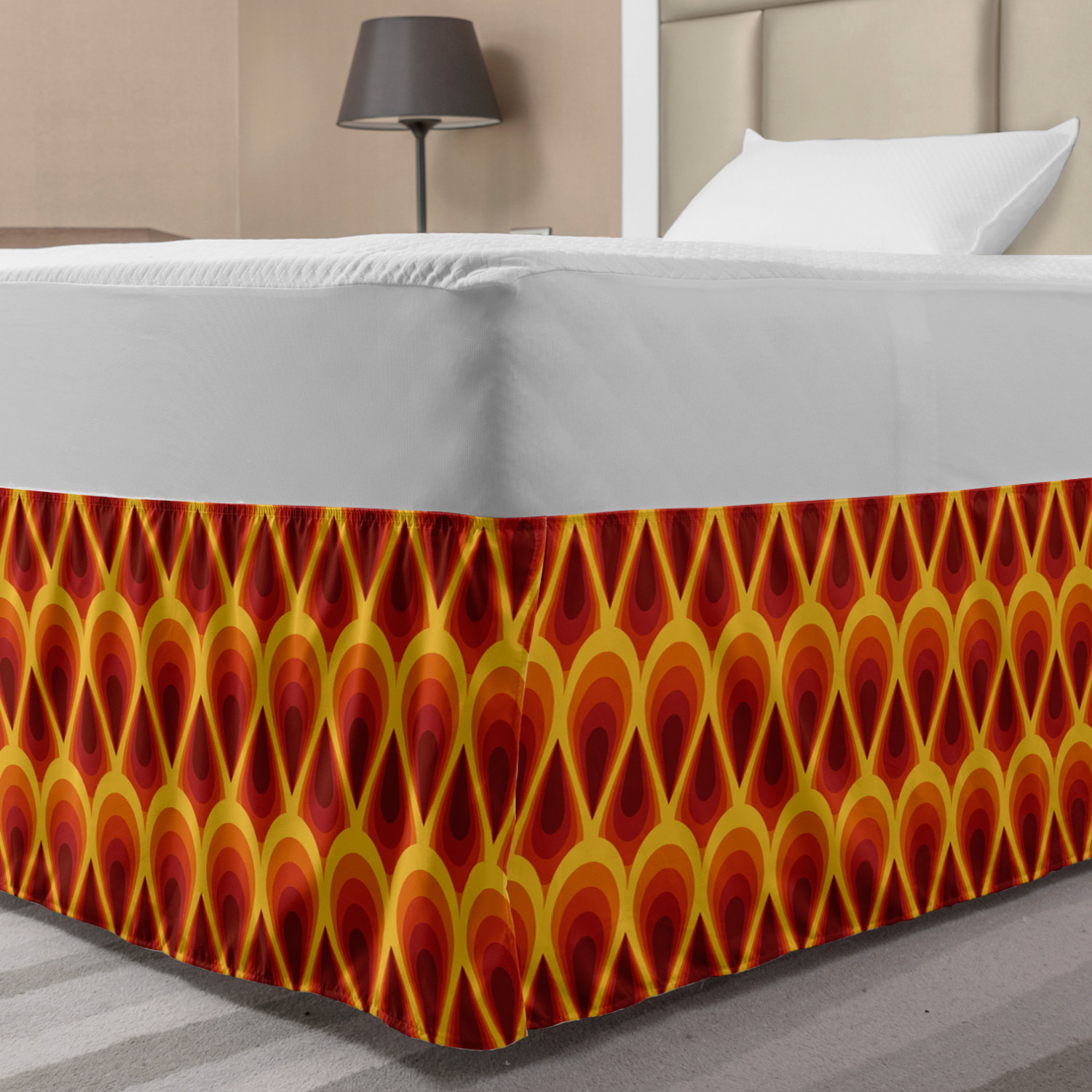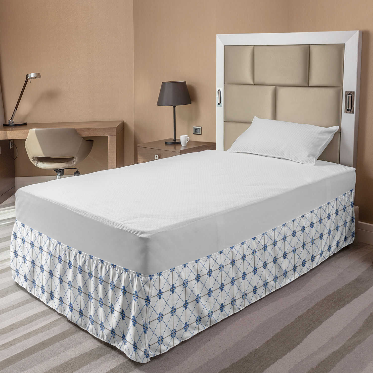 Ambesonne Vintage Themed Bedskirt Elastic Wrap Around Skirt Gathered Design Ambesonne Bedskirt Bedroom Decor Wrap Around Elastic Bed Skirt Gathered Design In 4 sizes. 15 inches drop. All around wrap gathered. MADE IN TURKEY. MADE FROM - High quality 100% brushed soft microfiber fabric. Suitable for most types of beds. FEATURES - Install easily with elastic straps wrap under the mattress. Stays in place. Split corners. MACHINE WASHABLE - On cold cycle. Dryer safe and iron easy. No fading colors. For bedroom decor. PRINTED - With state of the art digital printing technology. Long-lasting bold colors & clear image. Change your bedroom's style with a simple touch of bedskirt! Our bedskirts are very easy to use; you can easily put around this elastic bed skirt and fasten up with straps under your mattress. Bring new energy to your master suite with colors and thousands of different patterns. You can easily match your bedding sets with our varied bed skirts. You can play safe and create vintage decor easily with these bed ruffles that belongs to retro-times. But you can ask for novelty and combine this piece with your modern choices. Our bed skirt is smartly designed with modern split corners. And you don't need to worry if it gets dusty or dirty. Just machine wash in the cold cycle and tumble dry on low. Thanks to new printing techniques the colors will not fade easily. Design a neat look for your bed with this gathered bed skirt. It is designed with a slim/low style ruffle to catch a more contemporary line. You can give these bed skirts as a Christmas, birthday, wedding gift, mother's day or house warming gift. It can be a great present for your mother, father, newly married friends, grandmother, aunt, uncle. The digital images we display have the most accurate color possible, however, due to differences in computer monitors, we cannot be responsible for variations in color between the actual product and your screen. Due to manual measurement, please kindly allow 1-2 cm discrepancy.