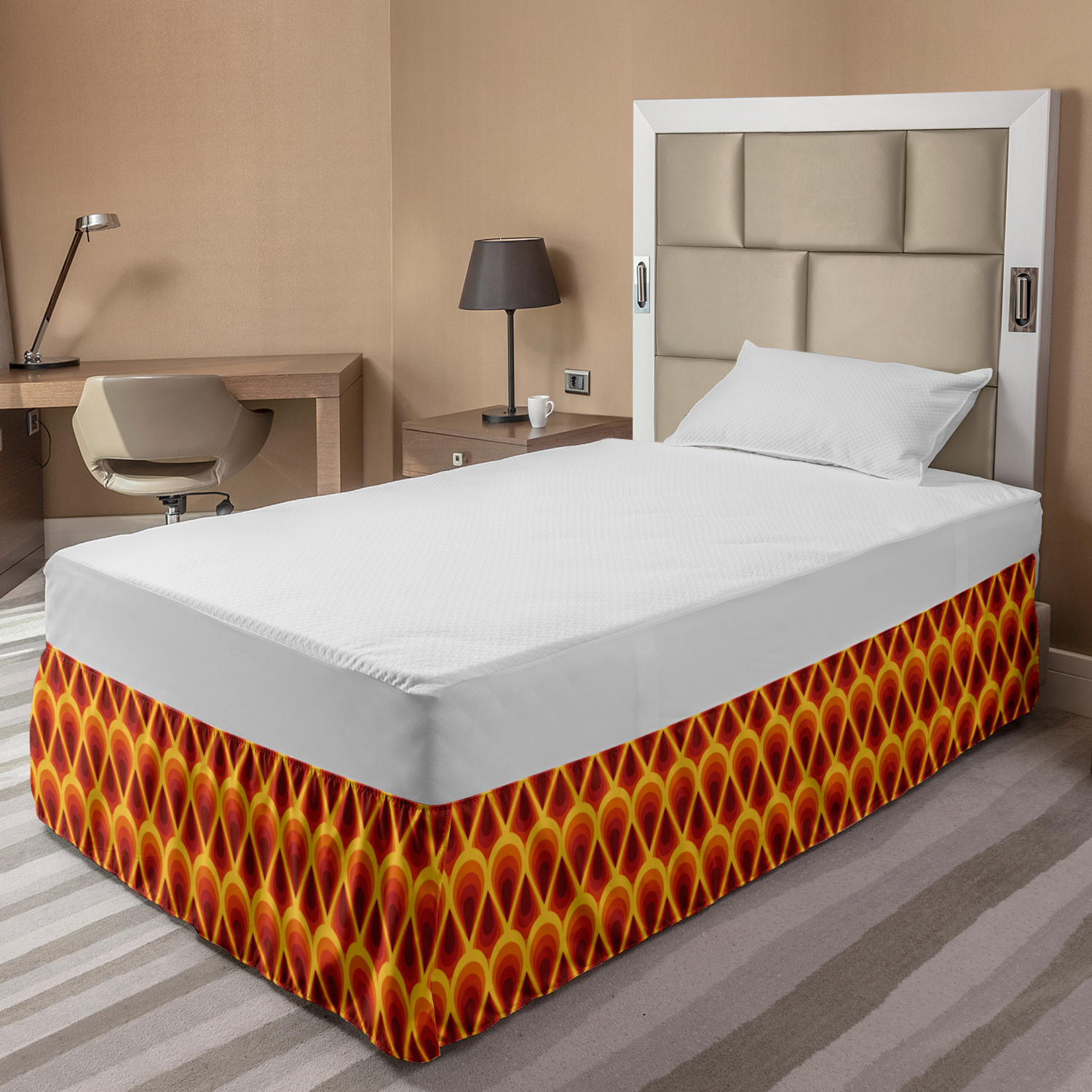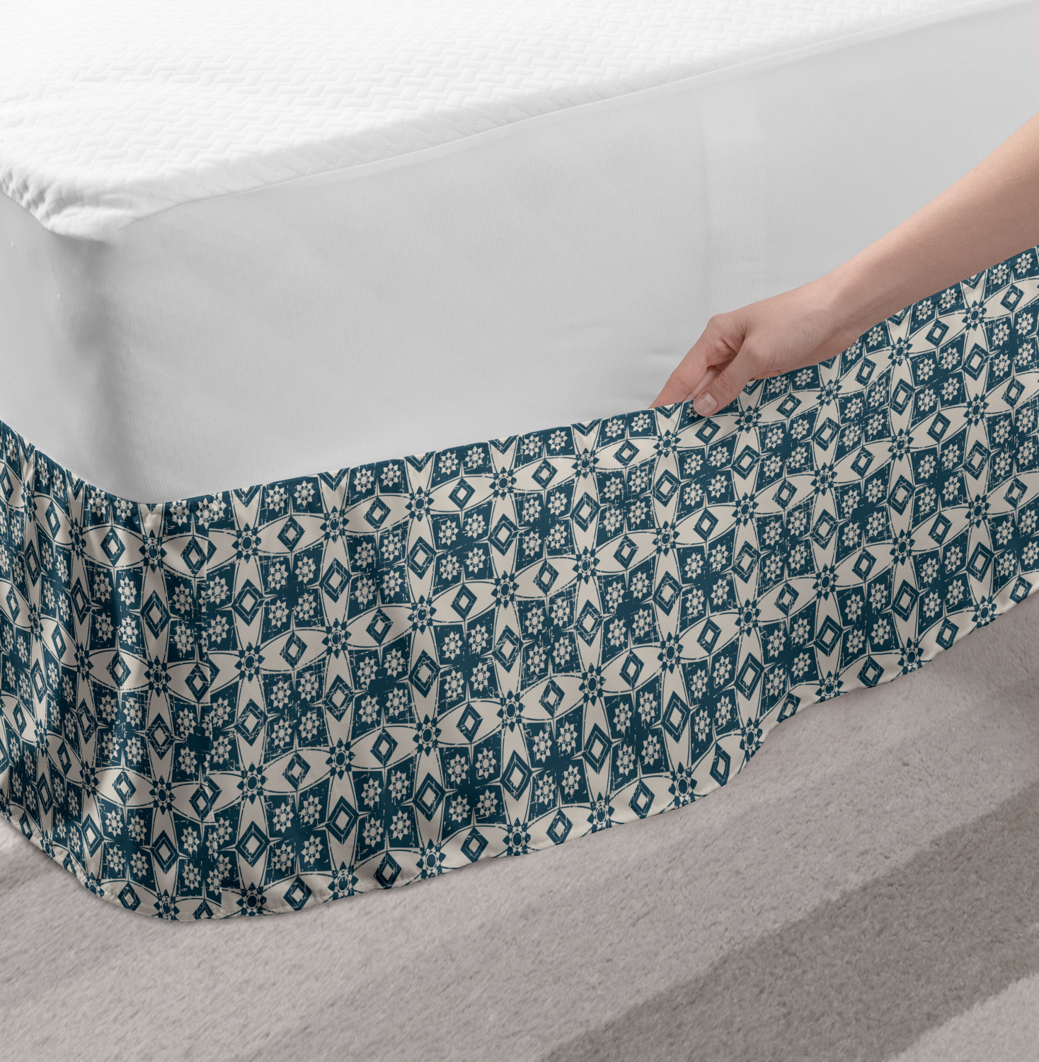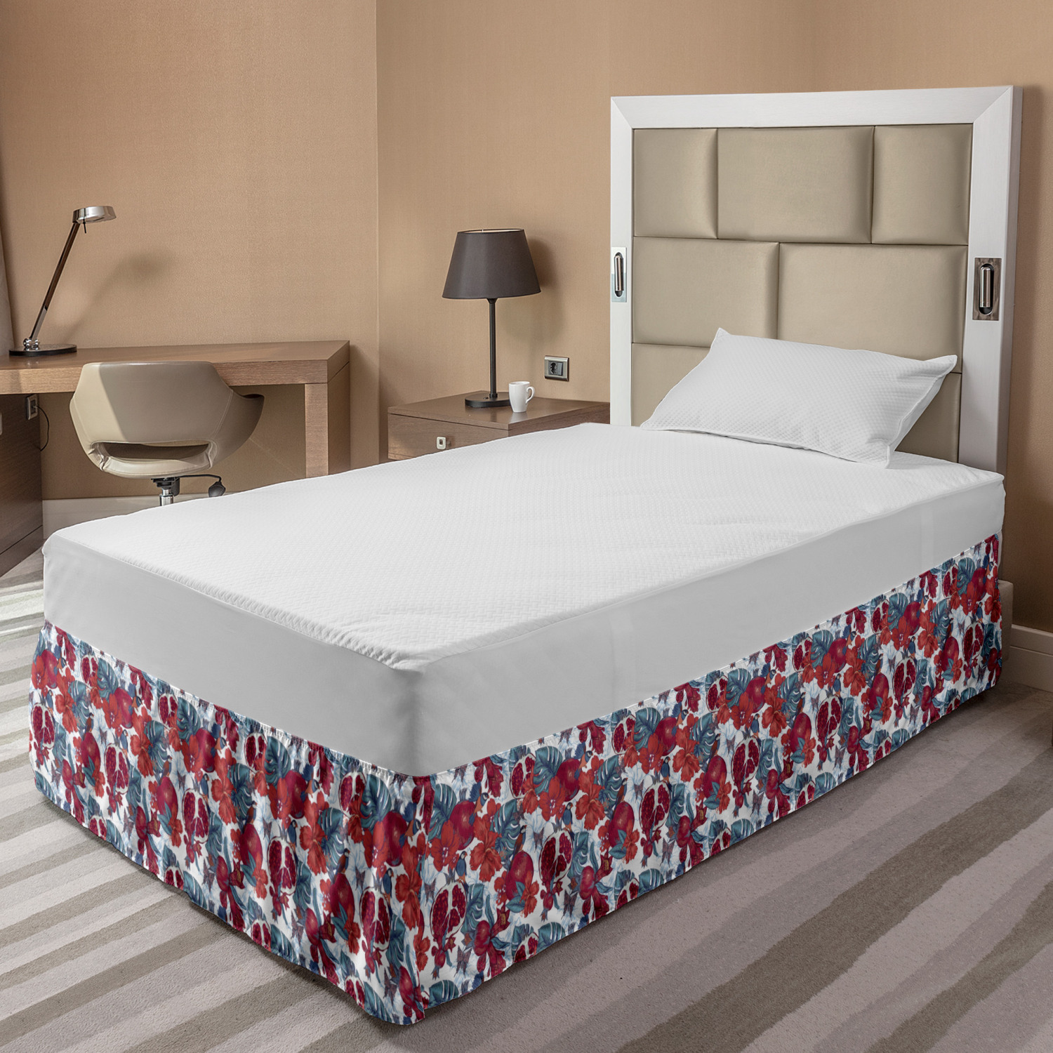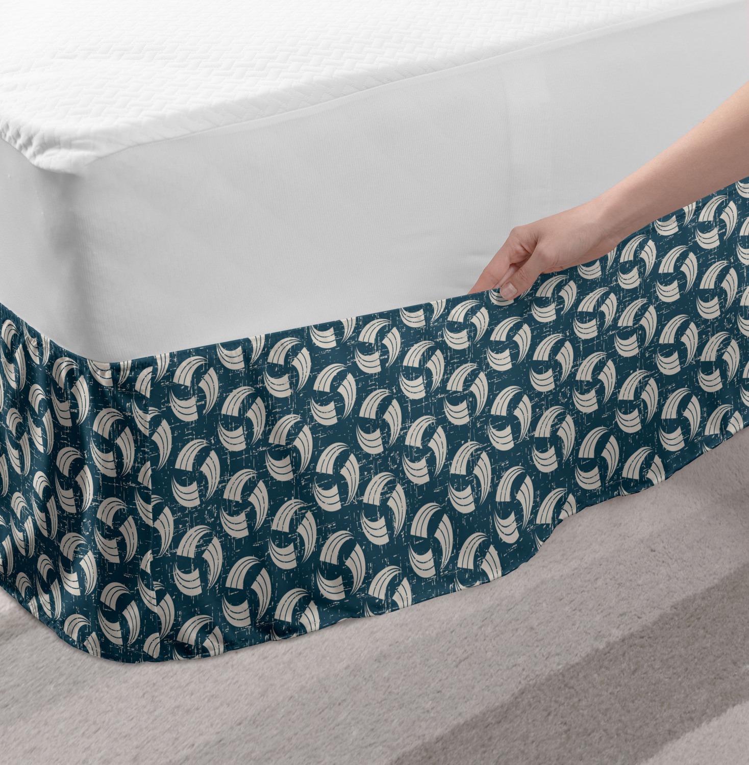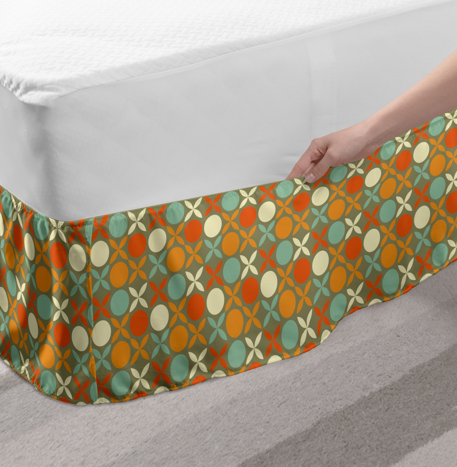 Ambesonne Vintage Themed Bedskirt Elastic Wrap Around Skirt Gathered Design Ambesonne Bedskirt Bedroom Decor Wrap Around Elastic Bed Skirt Gathered Design In 4 sizes. 15 inches drop. All around wrap gathered. MADE IN TURKEY. MADE FROM - High quality 100% brushed soft microfiber fabric. Suitable for most types of beds. FEATURES - Install easily with elastic straps wrap under the mattress. Stays in place. Split corners. MACHINE WASHABLE - On cold cycle. Dryer safe and iron easy. No fading colors. For bedroom decor. PRINTED - With state of the art digital printing technology. Long-lasting bold colors & clear image. Change your bedroom's style with a simple touch of bedskirt! Our bedskirts are very easy to use; you can easily put around this elastic bed skirt and fasten up with straps under your mattress. Bring new energy to your master suite with colors and thousands of different patterns. You can easily match your bedding sets with our varied bed skirts. You can play safe and create vintage decor easily with these bed ruffles that belongs to retro-times. But you can ask for novelty and combine this piece with your modern choices. Our bed skirt is smartly designed with modern split corners. And you don't need to worry if it gets dusty or dirty. Just machine wash in the cold cycle and tumble dry on low. Thanks to new printing techniques the colors will not fade easily. Design a neat look for your bed with this gathered bed skirt. It is designed with a slim/low style ruffle to catch a more contemporary line. You can give these bed skirts as a Christmas, birthday, wedding gift, mother's day or house warming gift. It can be a great present for your mother, father, newly married friends, grandmother, aunt, uncle. The digital images we display have the most accurate color possible, however, due to differences in computer monitors, we cannot be responsible for variations in color between the actual product and your screen. Due to manual measurement, please kindly allow 1-2 cm discrepancy.
