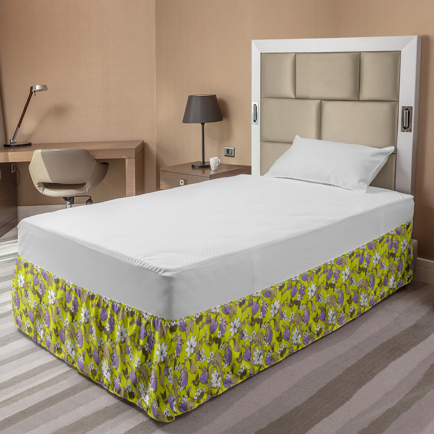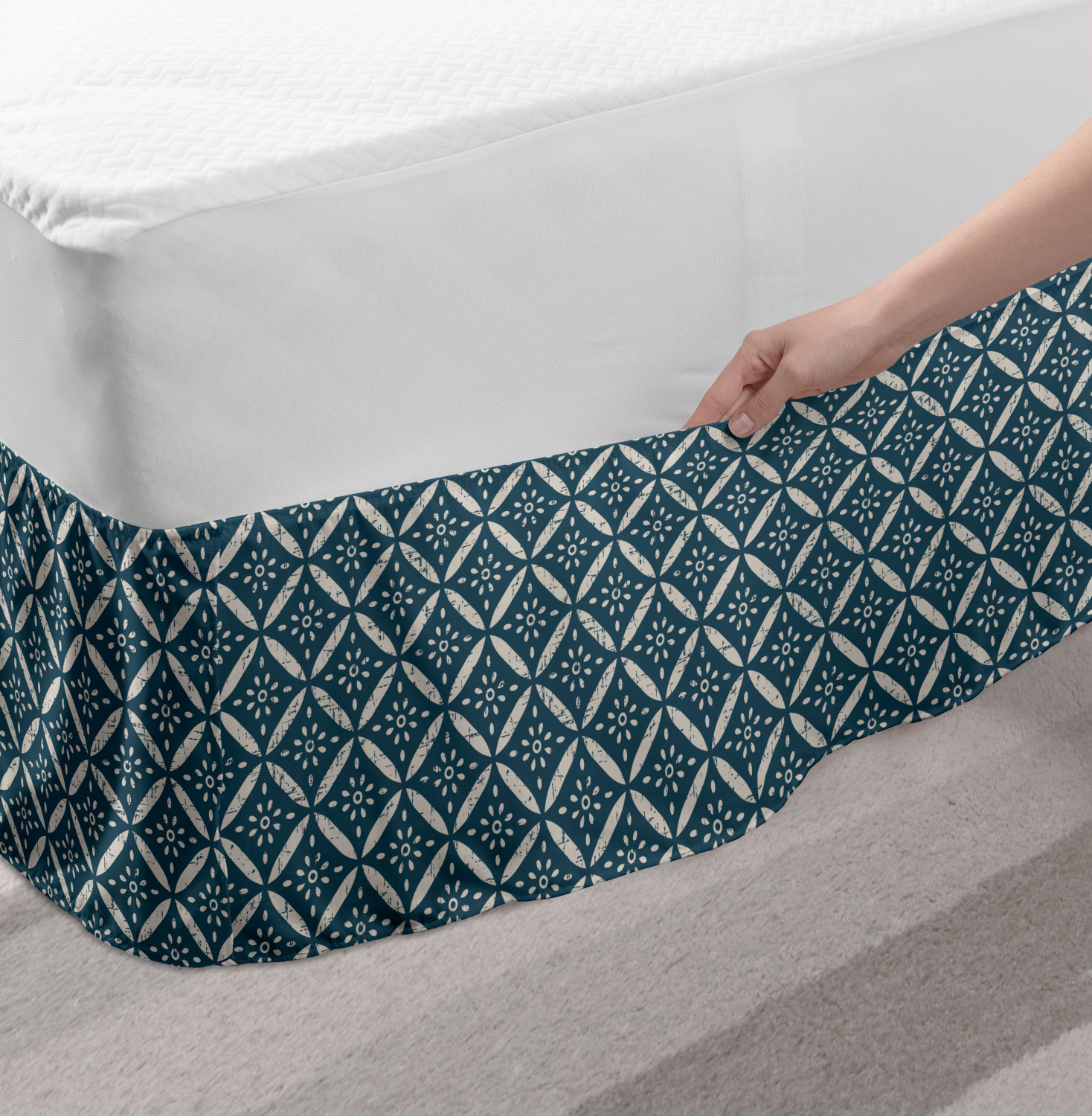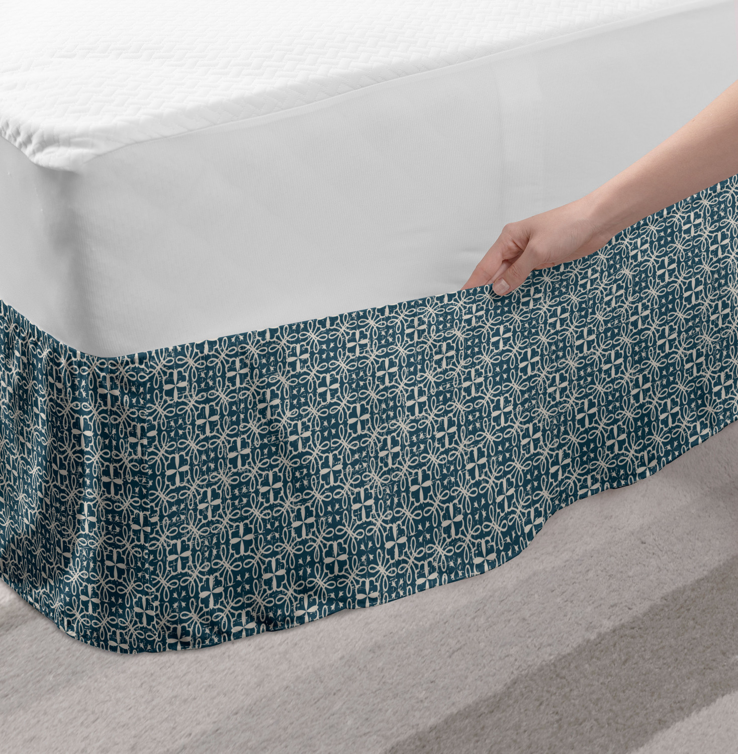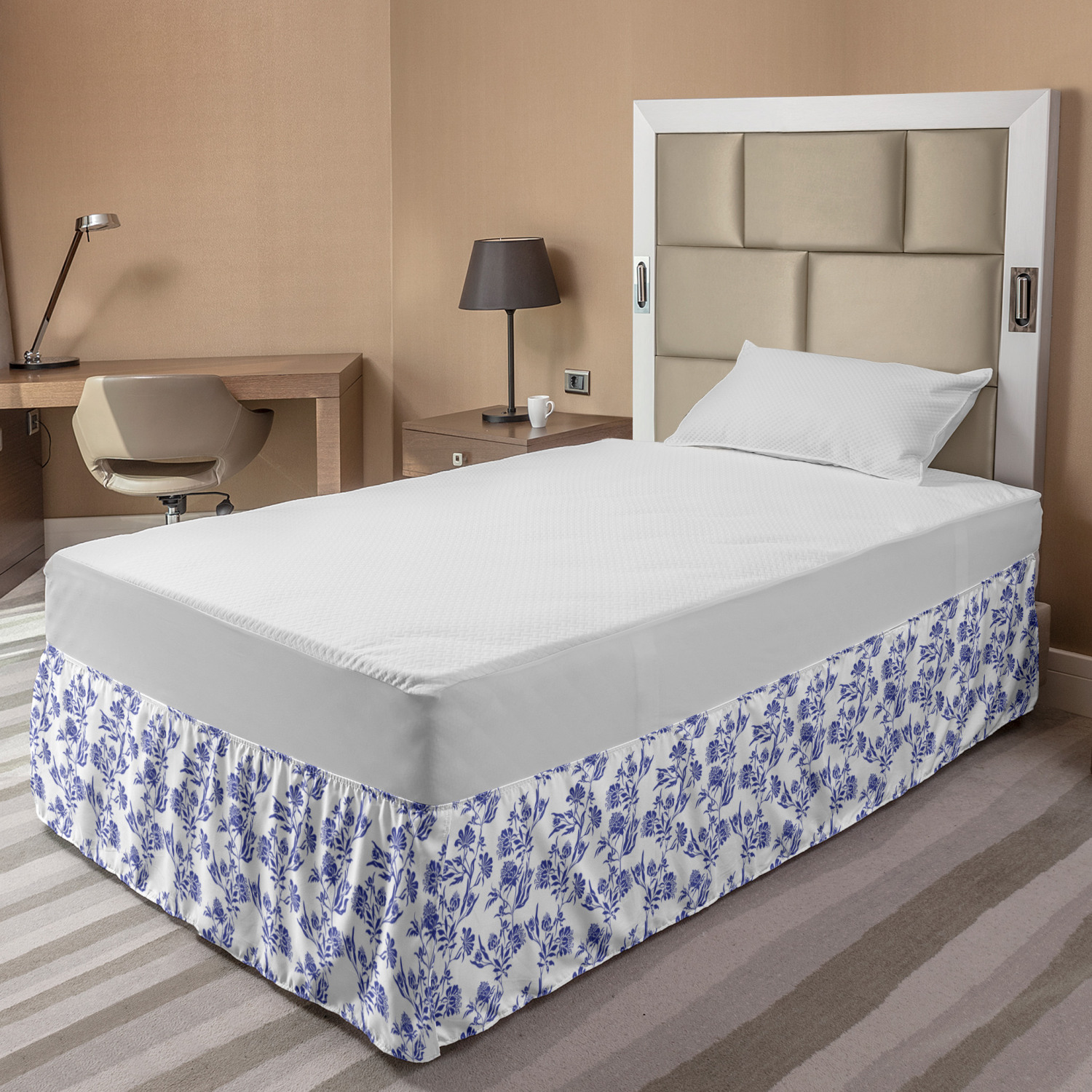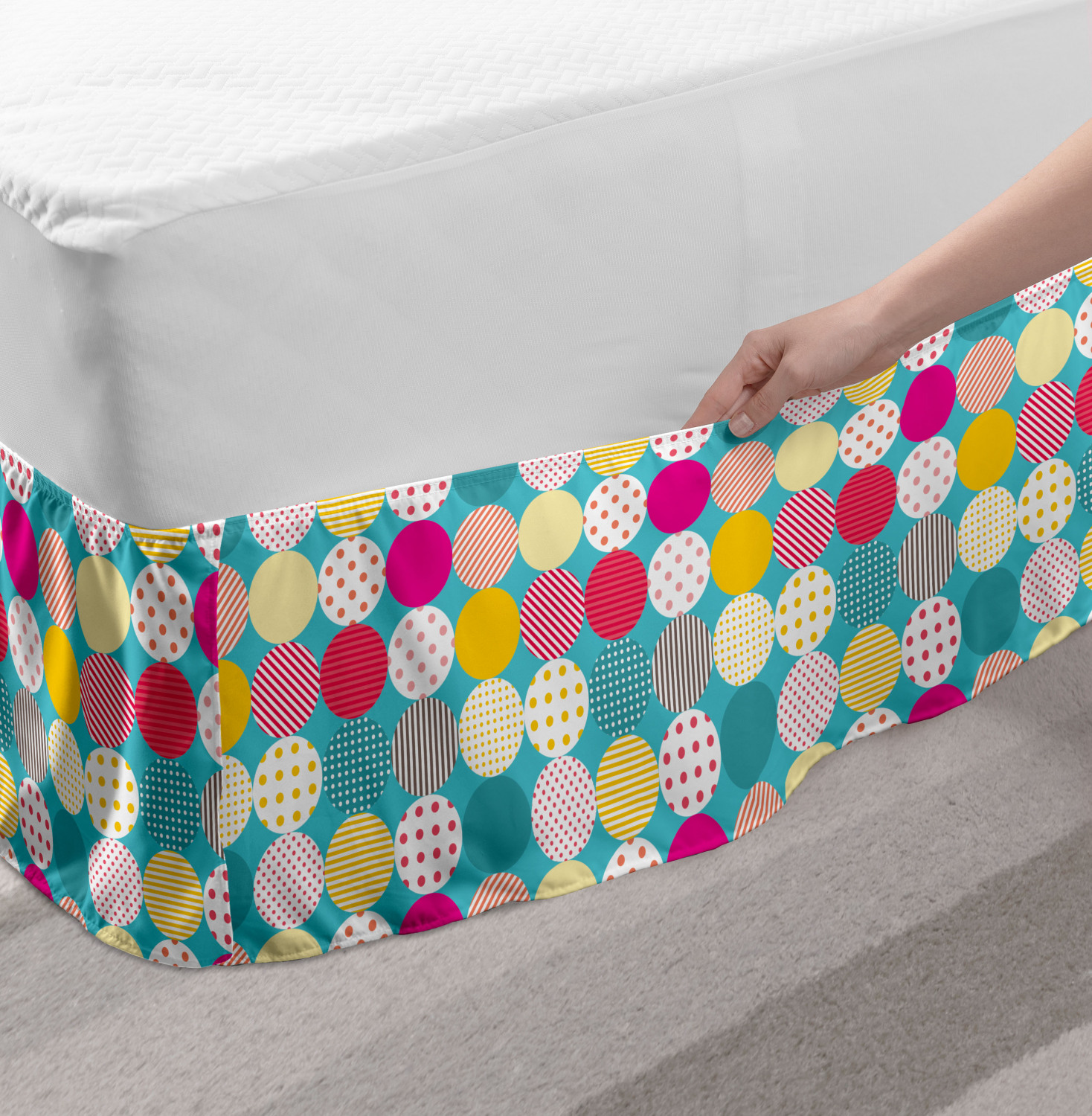 Ambesonne Vintage Themed Bedskirt Elastic Wrap Around Skirt Gathered Design Ambesonne Bedskirt Bedroom Decor Wrap Around Elastic Bed Skirt Gathered Design In 4 sizes. 15 inches drop. All around wrap gathered. MADE IN TURKEY. MADE FROM - High quality 100% brushed soft microfiber fabric. Suitable for most types of beds. FEATURES - Install easily with elastic straps wrap under the mattress. Stays in place. Split corners. MACHINE WASHABLE - On cold cycle. Dryer safe and iron easy. No fading colors. For bedroom decor. PRINTED - With state of the art digital printing technology. Long-lasting bold colors & clear image. Change your bedroom's style with a simple touch of bedskirt! Our bedskirts are very easy to use; you can easily put around this elastic bed skirt and fasten up with straps under your mattress. Bring new energy to your master suite with colors and thousands of different patterns. You can easily match your bedding sets with our varied bed skirts. You can play safe and create vintage decor easily with these bed ruffles that belongs to retro-times. But you can ask for novelty and combine this piece with your modern choices. Our bed skirt is smartly designed with modern split corners. And you don't need to worry if it gets dusty or dirty. Just machine wash in the cold cycle and tumble dry on low. Thanks to new printing techniques the colors will not fade easily. Design a neat look for your bed with this gathered bed skirt. It is designed with a slim/low style ruffle to catch a more contemporary line. You can give these bed skirts as a Christmas, birthday, wedding gift, mother's day or house warming gift. It can be a great present for your mother, father, newly married friends, grandmother, aunt, uncle. The digital images we display have the most accurate color possible, however, due to differences in computer monitors, we cannot be responsible for variations in color between the actual product and your screen. Due to manual measurement, please kindly allow 1-2 cm discrepancy.