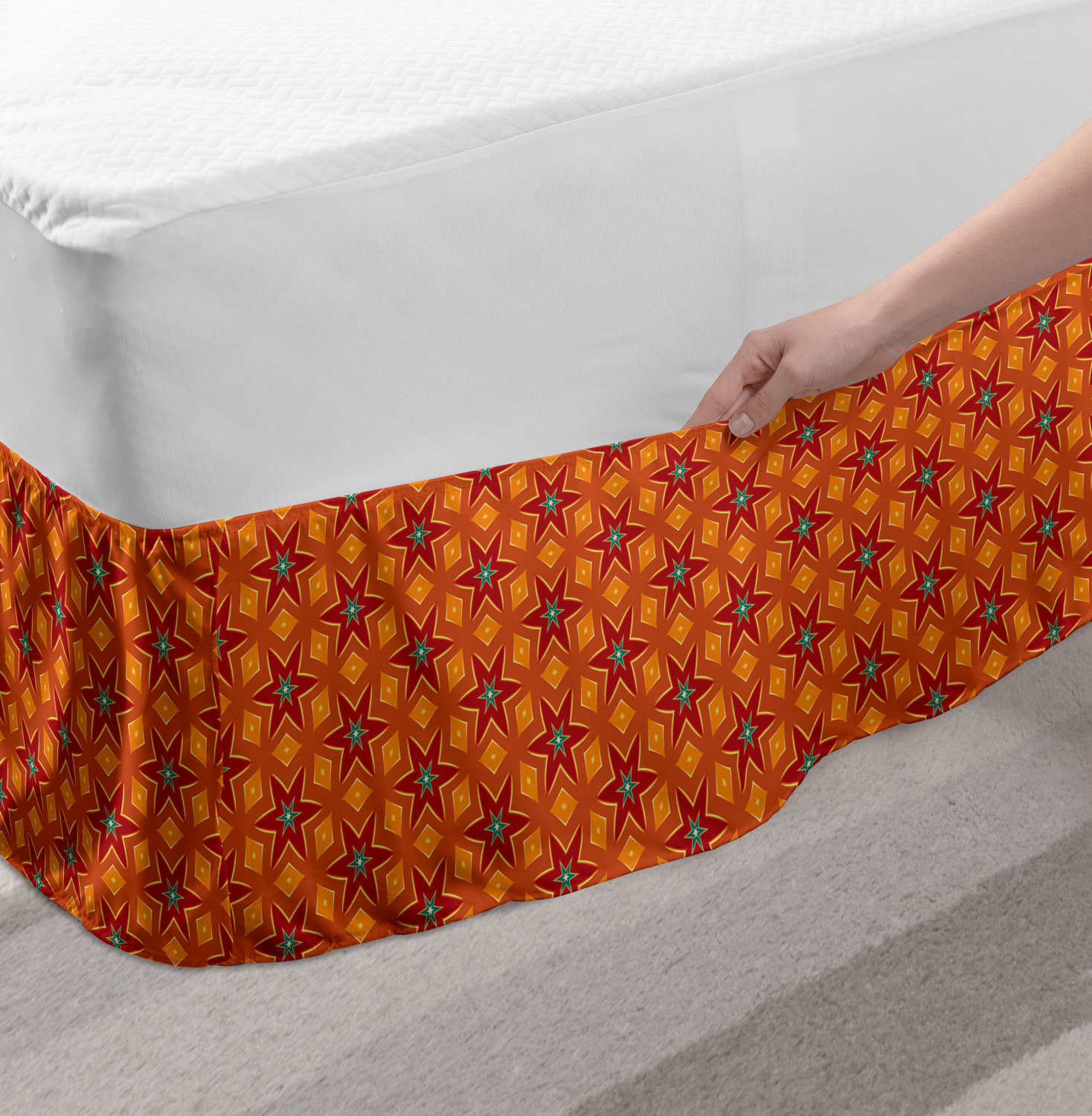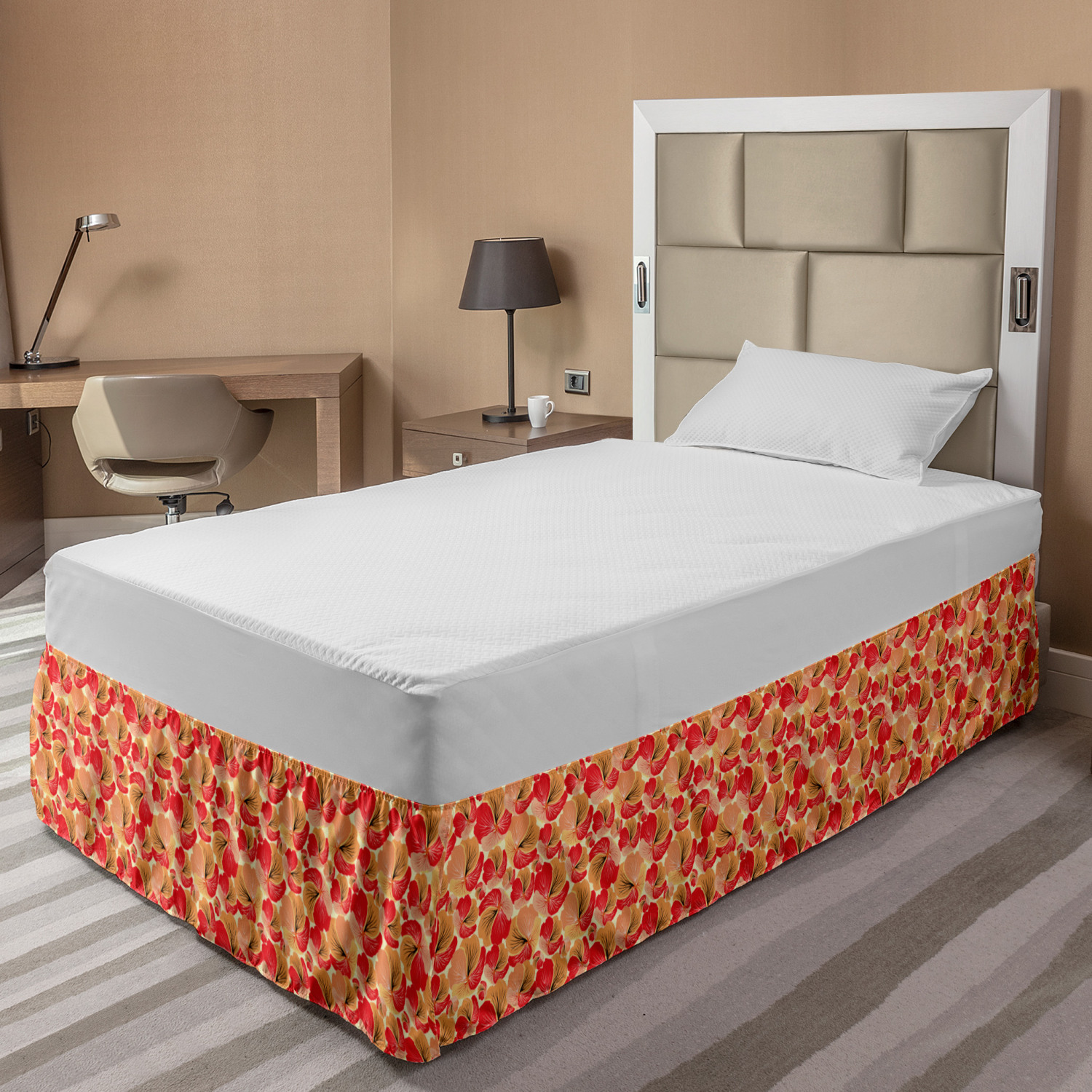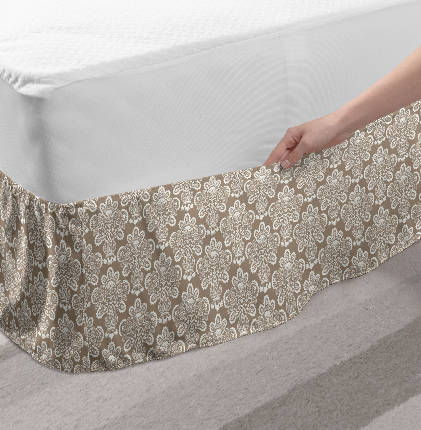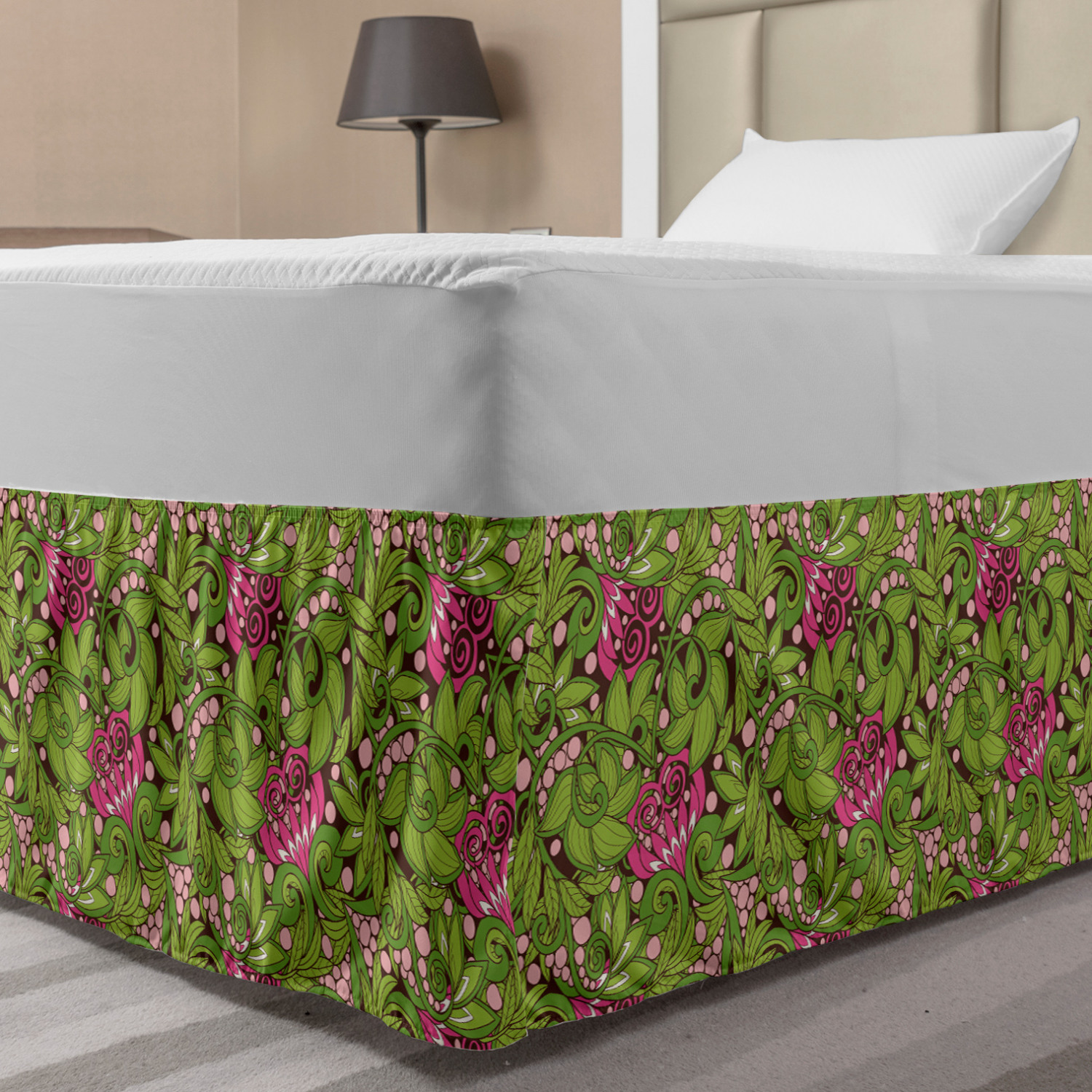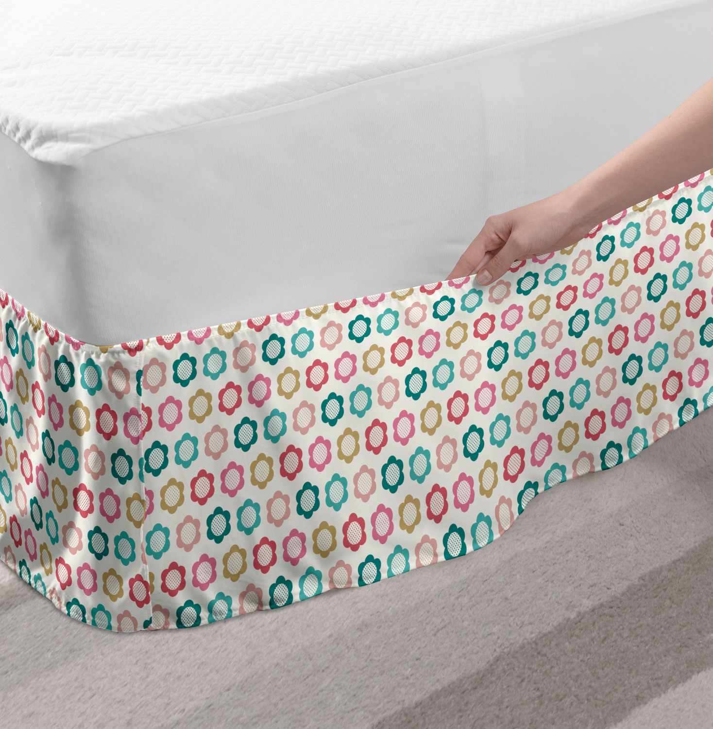 Ambesonne Vintage Themed Bedskirt Elastic Wrap Around Skirt Gathered Design Ambesonne Bedskirt Bedroom Decor Wrap Around Elastic Bed Skirt Gathered Design In 4 sizes. 15 inches drop. All around wrap gathered. MADE IN TURKEY. MADE FROM - High quality 100% brushed soft microfiber fabric. Suitable for most types of beds. FEATURES - Install easily with elastic straps wrap under the mattress. Stays in place. Split corners. MACHINE WASHABLE - On cold cycle. Dryer safe and iron easy. No fading colors. For bedroom decor. PRINTED - With state of the art digital printing technology. Long-lasting bold colors & clear image. Change your bedroom's style with a simple touch of bedskirt! Our bedskirts are very easy to use; you can easily put around this elastic bed skirt and fasten up with straps under your mattress. Bring new energy to your master suite with colors and thousands of different patterns. You can easily match your bedding sets with our varied bed skirts. You can play safe and create vintage decor easily with these bed ruffles that belongs to retro-times. But you can ask for novelty and combine this piece with your modern choices. Our bed skirt is smartly designed with modern split corners. And you don't need to worry if it gets dusty or dirty. Just machine wash in the cold cycle and tumble dry on low. Thanks to new printing techniques the colors will not fade easily. Design a neat look for your bed with this gathered bed skirt. It is designed with a slim/low style ruffle to catch a more contemporary line. You can give these bed skirts as a Christmas, birthday, wedding gift, mother's day or house warming gift. It can be a great present for your mother, father, newly married friends, grandmother, aunt, uncle. The digital images we display have the most accurate color possible, however, due to differences in computer monitors, we cannot be responsible for variations in color between the actual product and your screen. Due to manual measurement, please kindly allow 1-2 cm discrepancy.