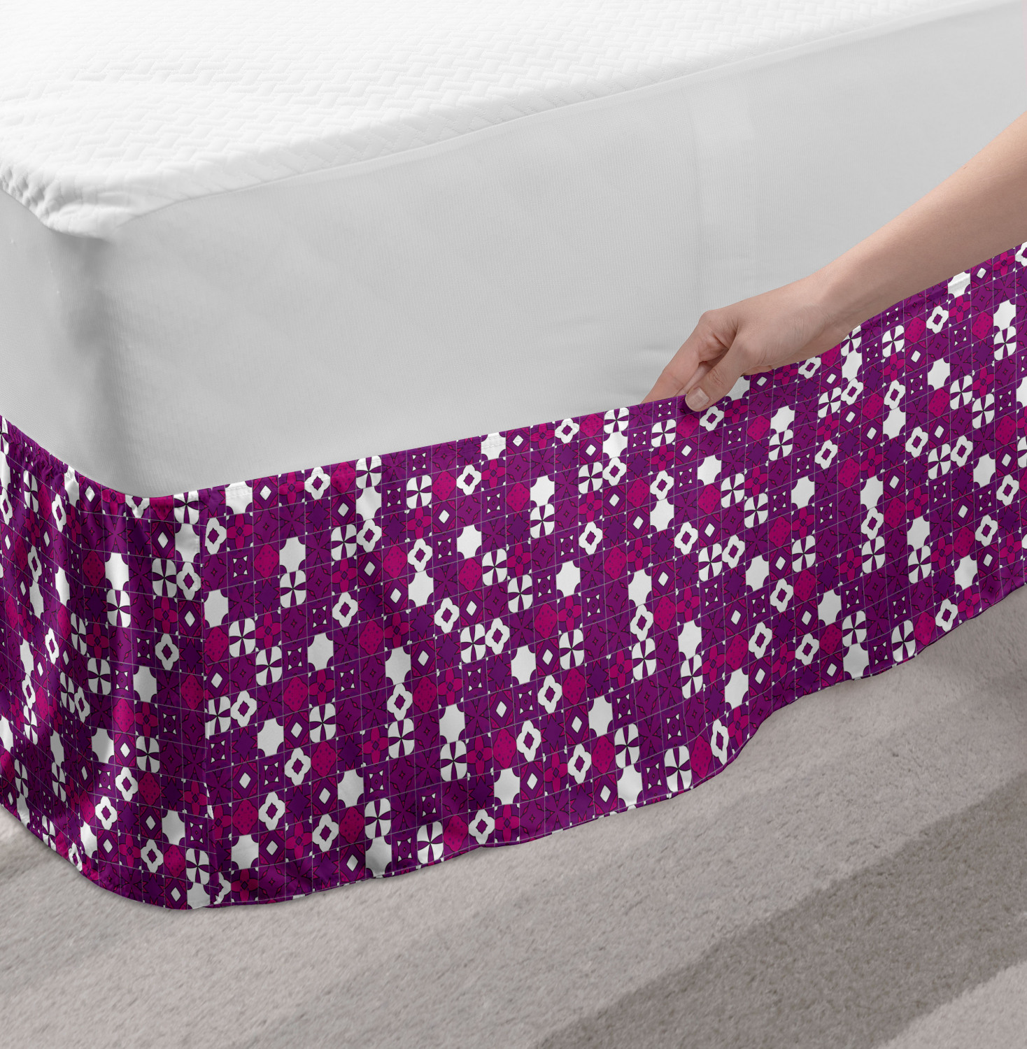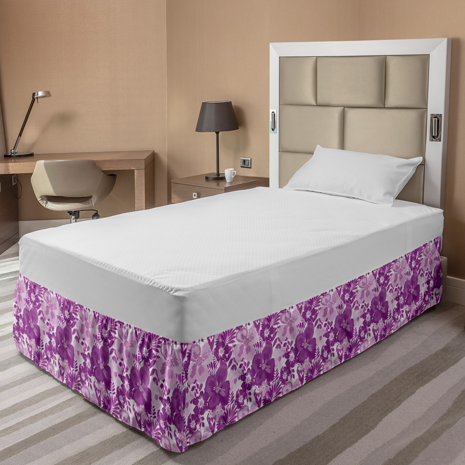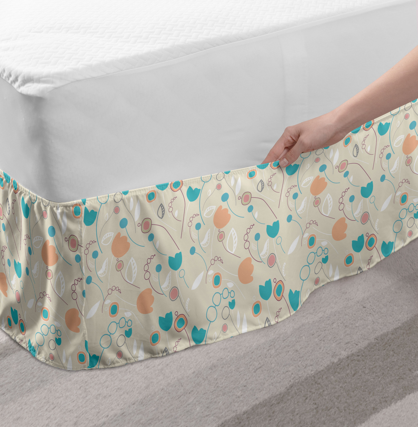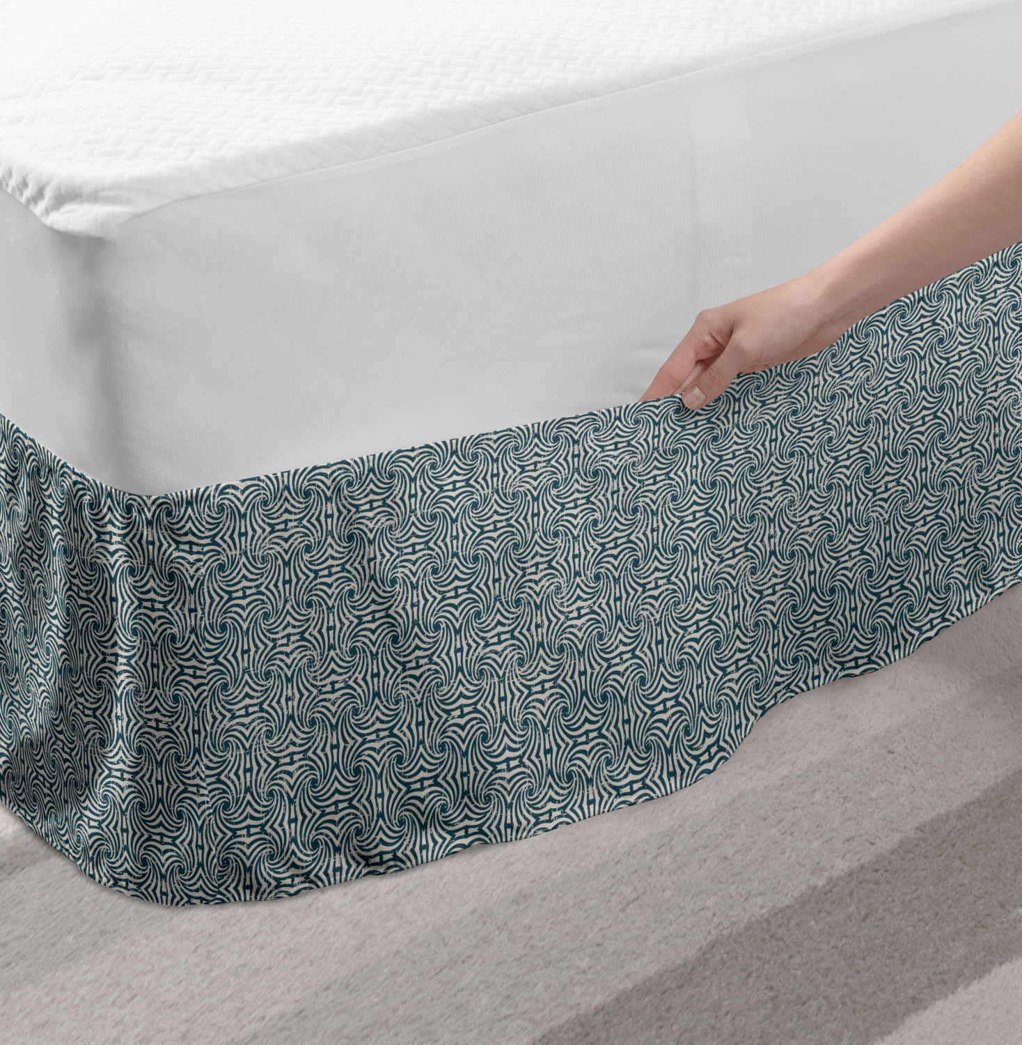 Ambesonne Vintage Themed Bedskirt Elastic Wrap Around Skirt Gathered Design Ambesonne Bedskirt Bedroom Decor Wrap Around Elastic Bed Skirt Gathered Design In 4 sizes. 15 inches drop. All around wrap gathered. MADE IN TURKEY. MADE FROM - High quality 100% brushed soft microfiber fabric. Suitable for most types of beds. FEATURES - Install easily with elastic straps wrap under the mattress. Stays in place. Split corners. MACHINE WASHABLE - On cold cycle. Dryer safe and iron easy. No fading colors. For bedroom decor. PRINTED - With state of the art digital printing technology. Long-lasting bold colors & clear image. Change your bedroom's style with a simple touch of bedskirt! Our bedskirts are very easy to use; you can easily put around this elastic bed skirt and fasten up with straps under your mattress. Bring new energy to your master suite with colors and thousands of different patterns. You can easily match your bedding sets with our varied bed skirts. You can play safe and create vintage decor easily with these bed ruffles that belongs to retro-times. But you can ask for novelty and combine this piece with your modern choices. Our bed skirt is smartly designed with modern split corners. And you don't need to worry if it gets dusty or dirty. Just machine wash in the cold cycle and tumble dry on low. Thanks to new printing techniques the colors will not fade easily. Design a neat look for your bed with this gathered bed skirt. It is designed with a slim/low style ruffle to catch a more contemporary line. You can give these bed skirts as a Christmas, birthday, wedding gift, mother's day or house warming gift. It can be a great present for your mother, father, newly married friends, grandmother, aunt, uncle. The digital images we display have the most accurate color possible, however, due to differences in computer monitors, we cannot be responsible for variations in color between the actual product and your screen. Due to manual measurement, please kindly allow 1-2 cm discrepancy.