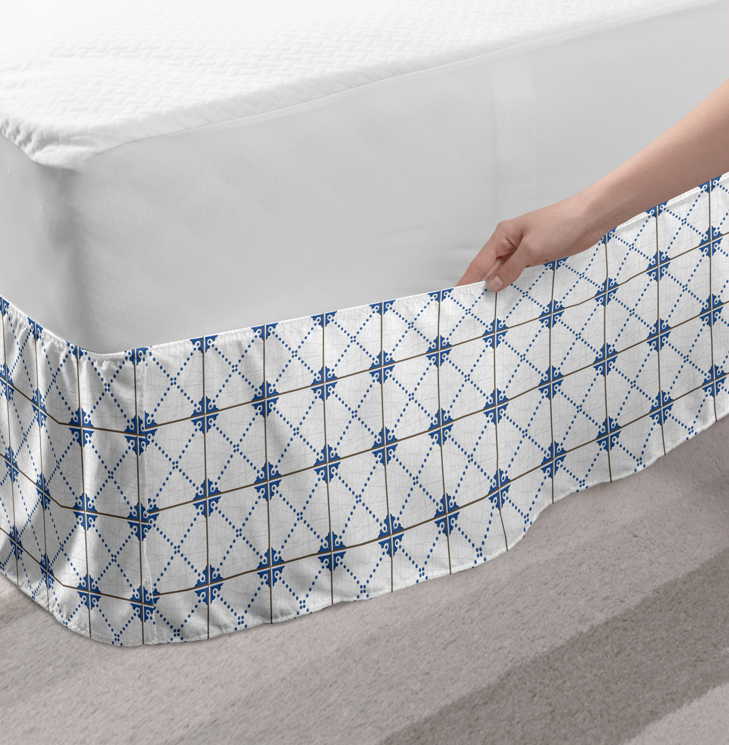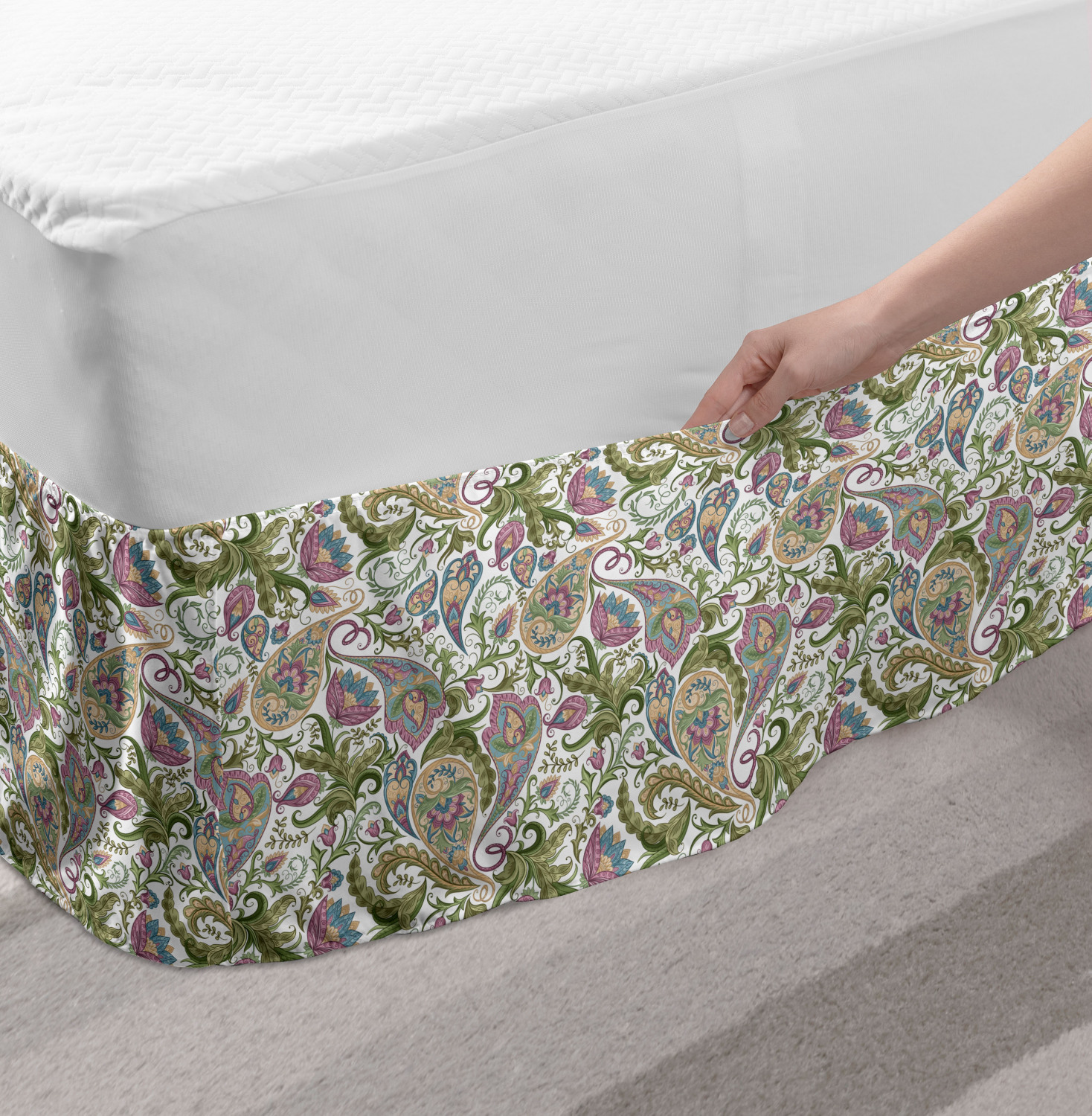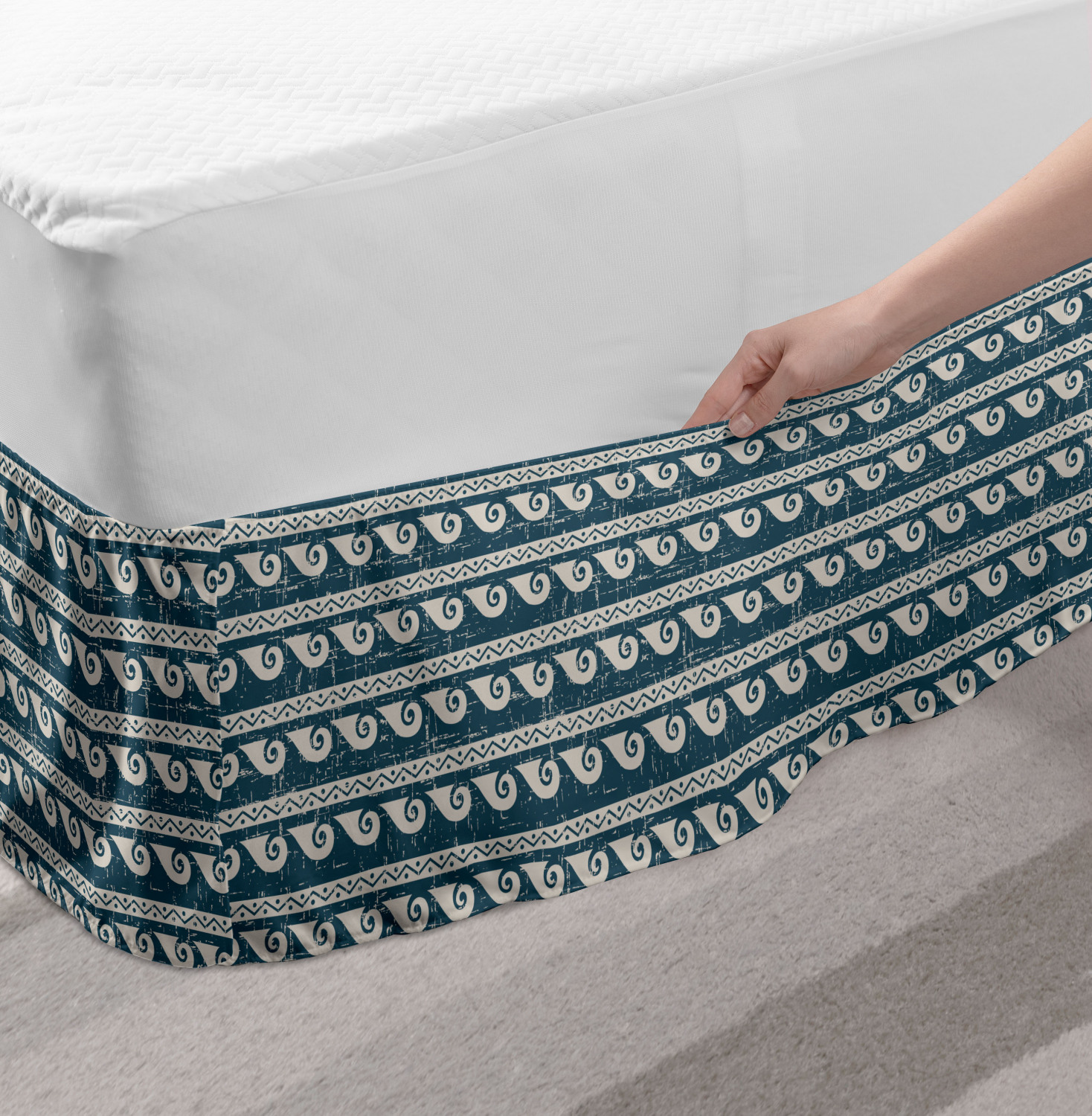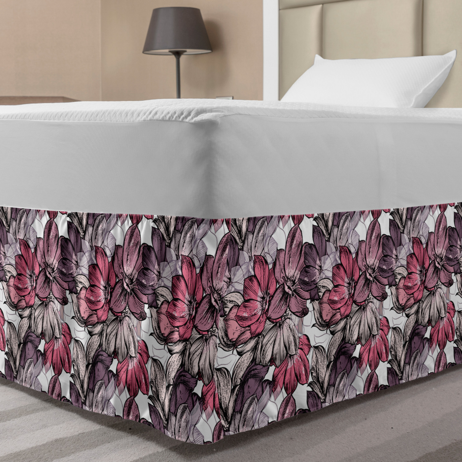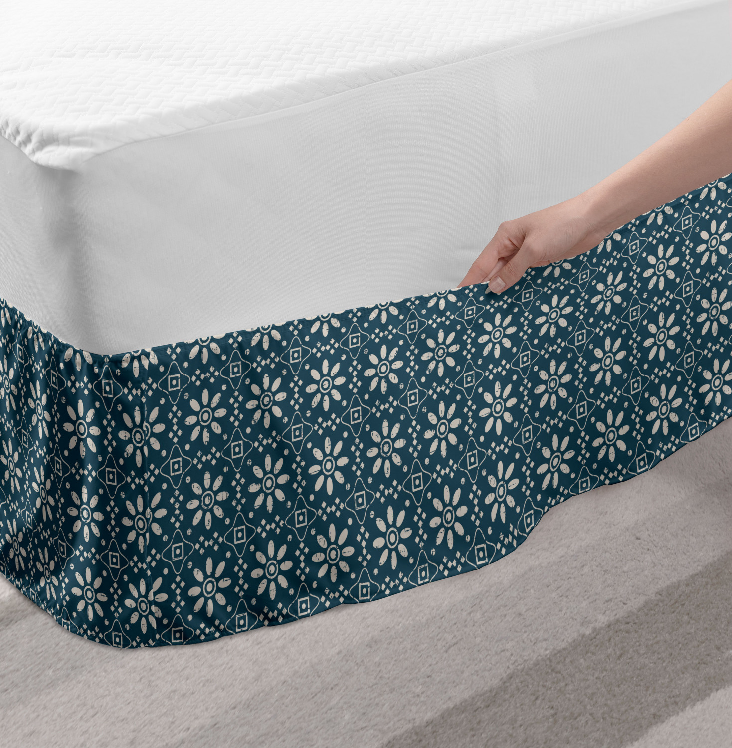 Ambesonne Vintage Themed Bedskirt Elastic Wrap Around Skirt Gathered Design Ambesonne Bedskirt Bedroom Decor Wrap Around Elastic Bed Skirt Gathered Design In 4 sizes. 15 inches drop. All around wrap gathered. MADE IN TURKEY. MADE FROM - High quality 100% brushed soft microfiber fabric. Suitable for most types of beds. FEATURES - Install easily with elastic straps wrap under the mattress. Stays in place. Split corners. MACHINE WASHABLE - On cold cycle. Dryer safe and iron easy. No fading colors. For bedroom decor. PRINTED - With state of the art digital printing technology. Long-lasting bold colors & clear image. Change your bedroom's style with a simple touch of bedskirt! Our bedskirts are very easy to use; you can easily put around this elastic bed skirt and fasten up with straps under your mattress. Bring new energy to your master suite with colors and thousands of different patterns. You can easily match your bedding sets with our varied bed skirts. You can play safe and create vintage decor easily with these bed ruffles that belongs to retro-times. But you can ask for novelty and combine this piece with your modern choices. Our bed skirt is smartly designed with modern split corners. And you don't need to worry if it gets dusty or dirty. Just machine wash in the cold cycle and tumble dry on low. Thanks to new printing techniques the colors will not fade easily. Design a neat look for your bed with this gathered bed skirt. It is designed with a slim/low style ruffle to catch a more contemporary line. You can give these bed skirts as a Christmas, birthday, wedding gift, mother's day or house warming gift. It can be a great present for your mother, father, newly married friends, grandmother, aunt, uncle. The digital images we display have the most accurate color possible, however, due to differences in computer monitors, we cannot be responsible for variations in color between the actual product and your screen. Due to manual measurement, please kindly allow 1-2 cm discrepancy.