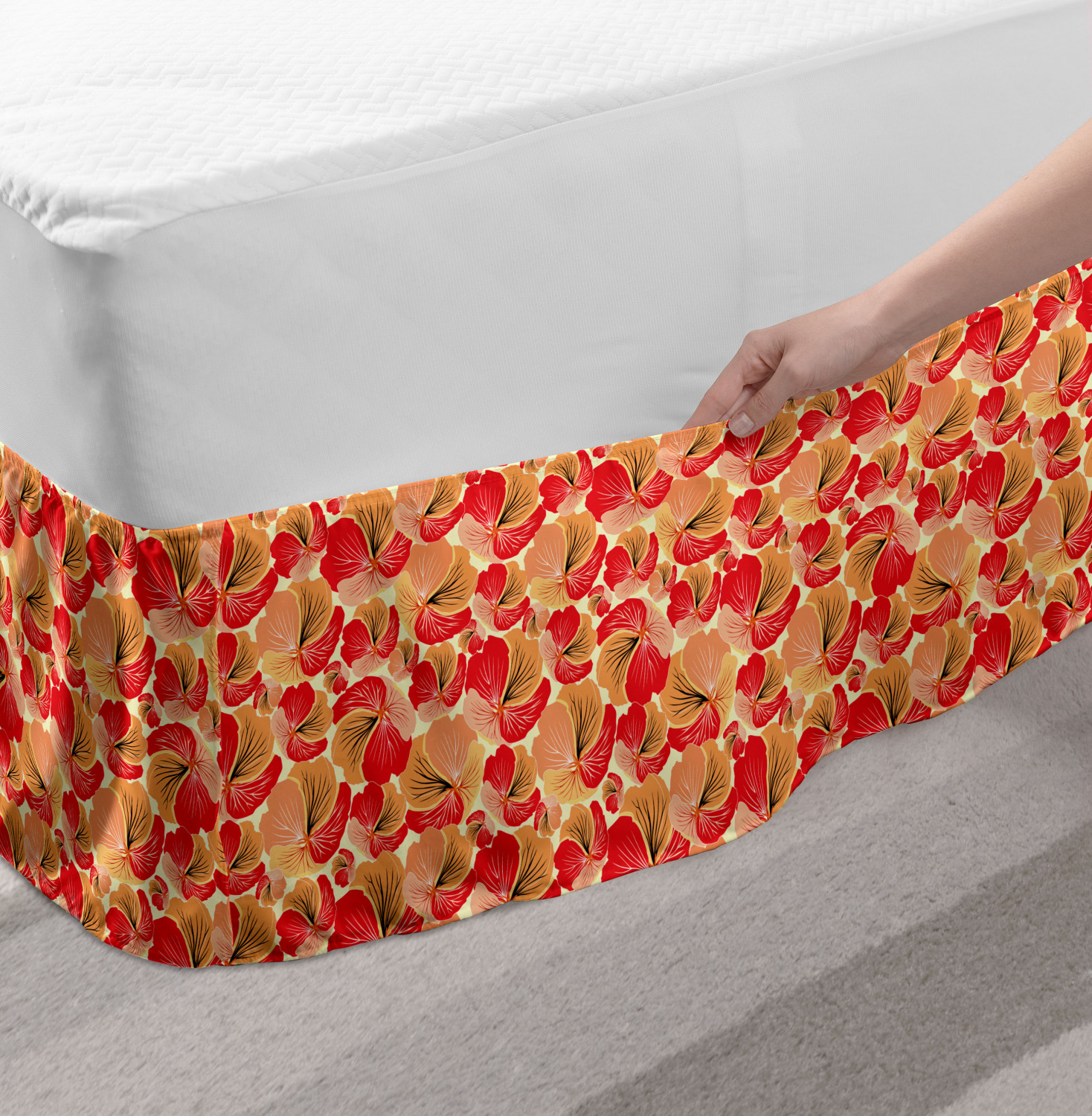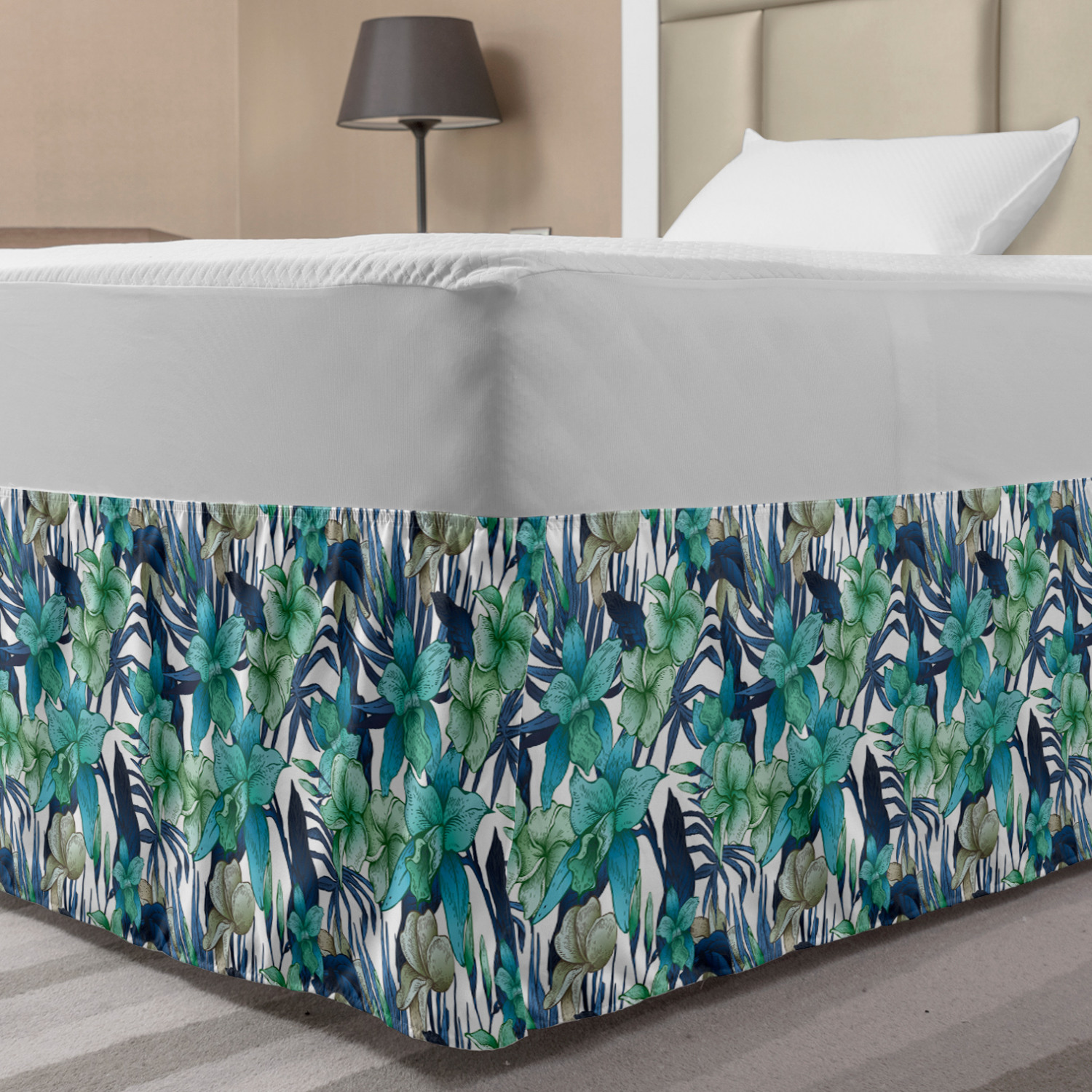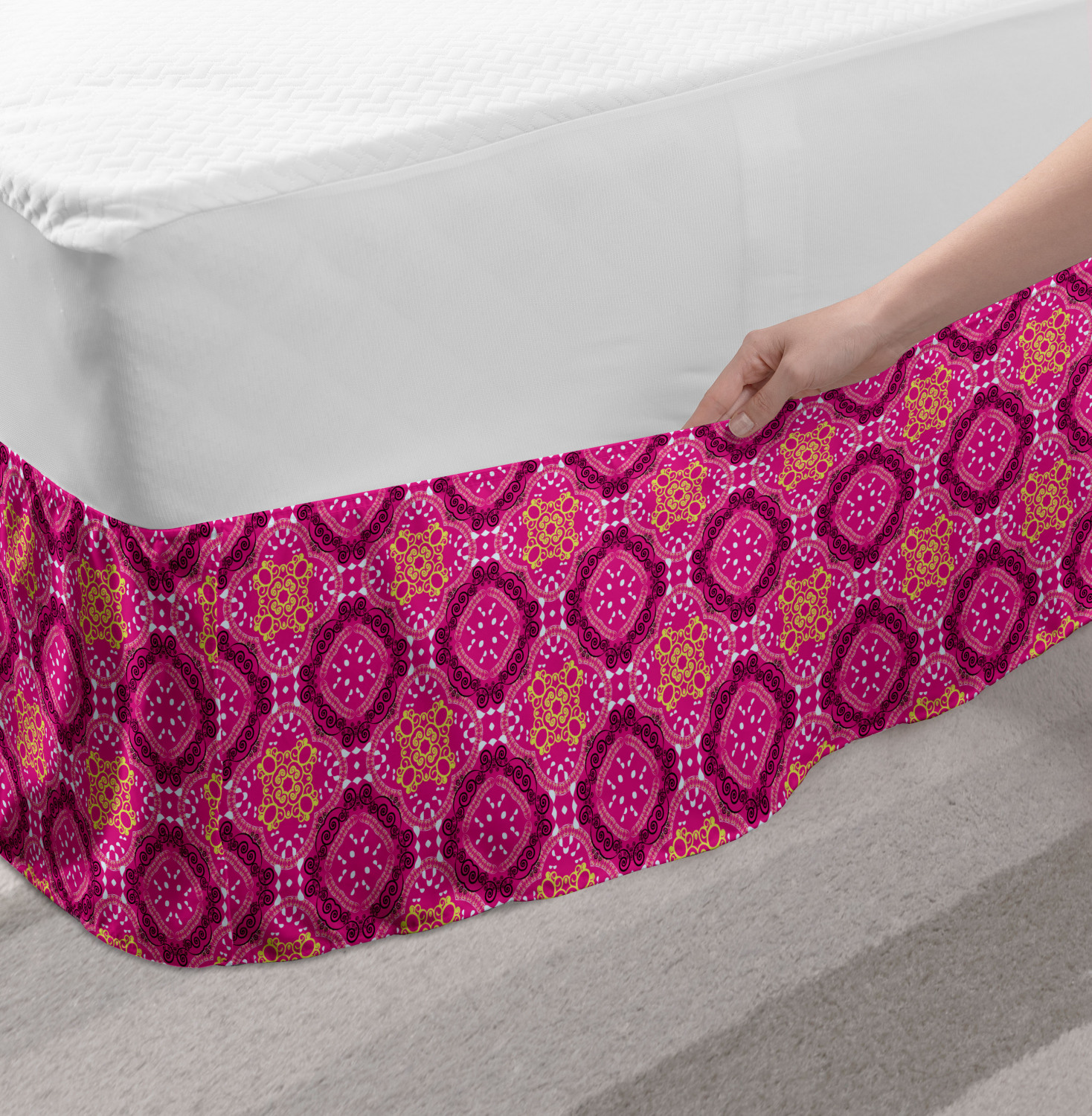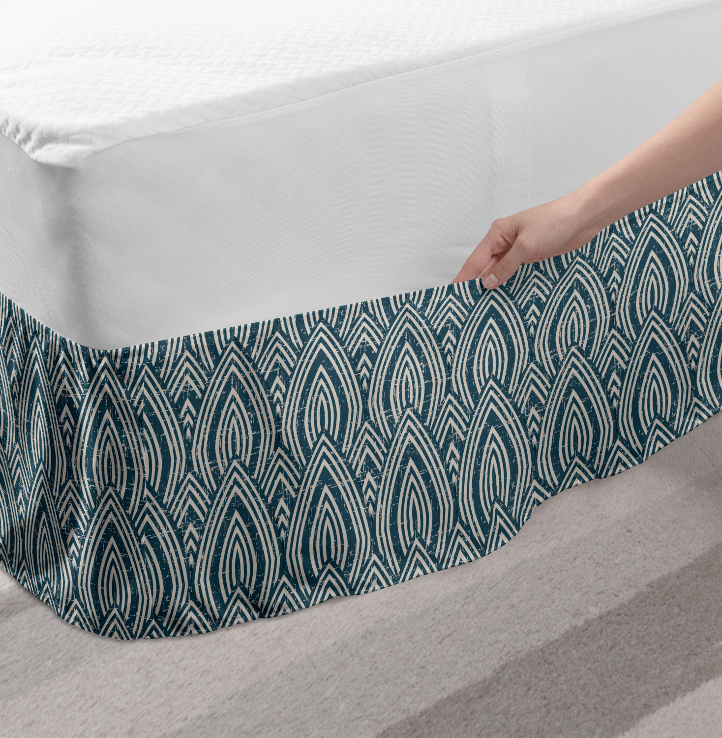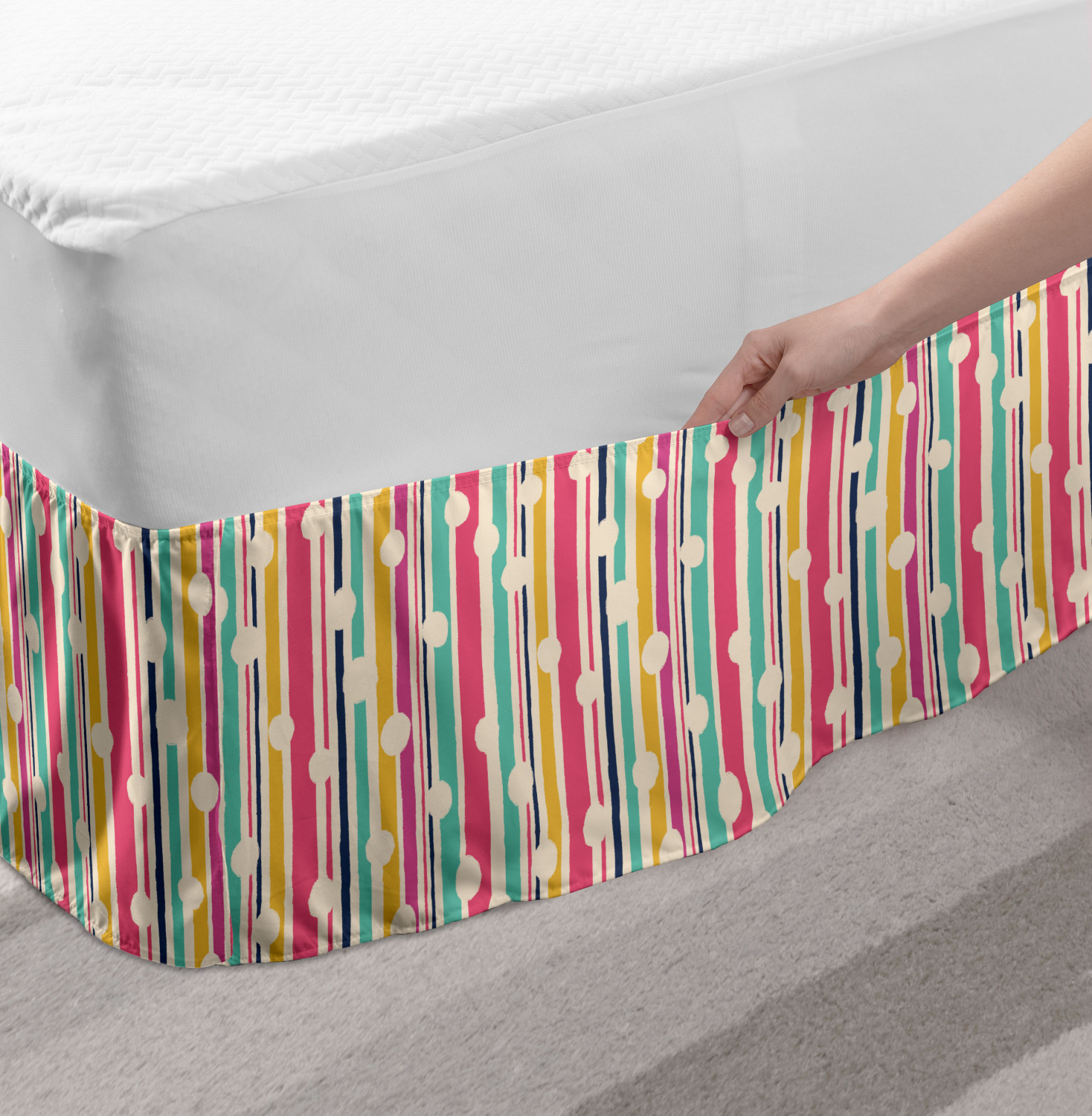Ambesonne Vintage Themed Bedskirt Elastic Wrap Around Skirt Gathered Design Ambesonne Bedskirt Bedroom Decor Wrap Around Elastic Bed Skirt Gathered Design In 4 sizes. 15 inches drop. All around wrap gathered. MADE IN TURKEY. MADE FROM - High quality 100% brushed soft microfiber fabric. Suitable for most types of beds. FEATURES - Install easily with elastic straps wrap under the mattress. Stays in place. Split corners. MACHINE WASHABLE - On cold cycle. Dryer safe and iron easy. No fading colors. For bedroom decor. PRINTED - With state of the art digital printing technology. Long-lasting bold colors & clear image. Change your bedroom's style with a simple touch of bedskirt! Our bedskirts are very easy to use; you can easily put around this elastic bed skirt and fasten up with straps under your mattress. Bring new energy to your master suite with colors and thousands of different patterns. You can easily match your bedding sets with our varied bed skirts. You can play safe and create vintage decor easily with these bed ruffles that belongs to retro-times. But you can ask for novelty and combine this piece with your modern choices. Our bed skirt is smartly designed with modern split corners. And you don't need to worry if it gets dusty or dirty. Just machine wash in the cold cycle and tumble dry on low. Thanks to new printing techniques the colors will not fade easily. Design a neat look for your bed with this gathered bed skirt. It is designed with a slim/low style ruffle to catch a more contemporary line. You can give these bed skirts as a Christmas, birthday, wedding gift, mother's day or house warming gift. It can be a great present for your mother, father, newly married friends, grandmother, aunt, uncle. The digital images we display have the most accurate color possible, however, due to differences in computer monitors, we cannot be responsible for variations in color between the actual product and your screen. Due to manual measurement, please kindly allow 1-2 cm discrepancy.
