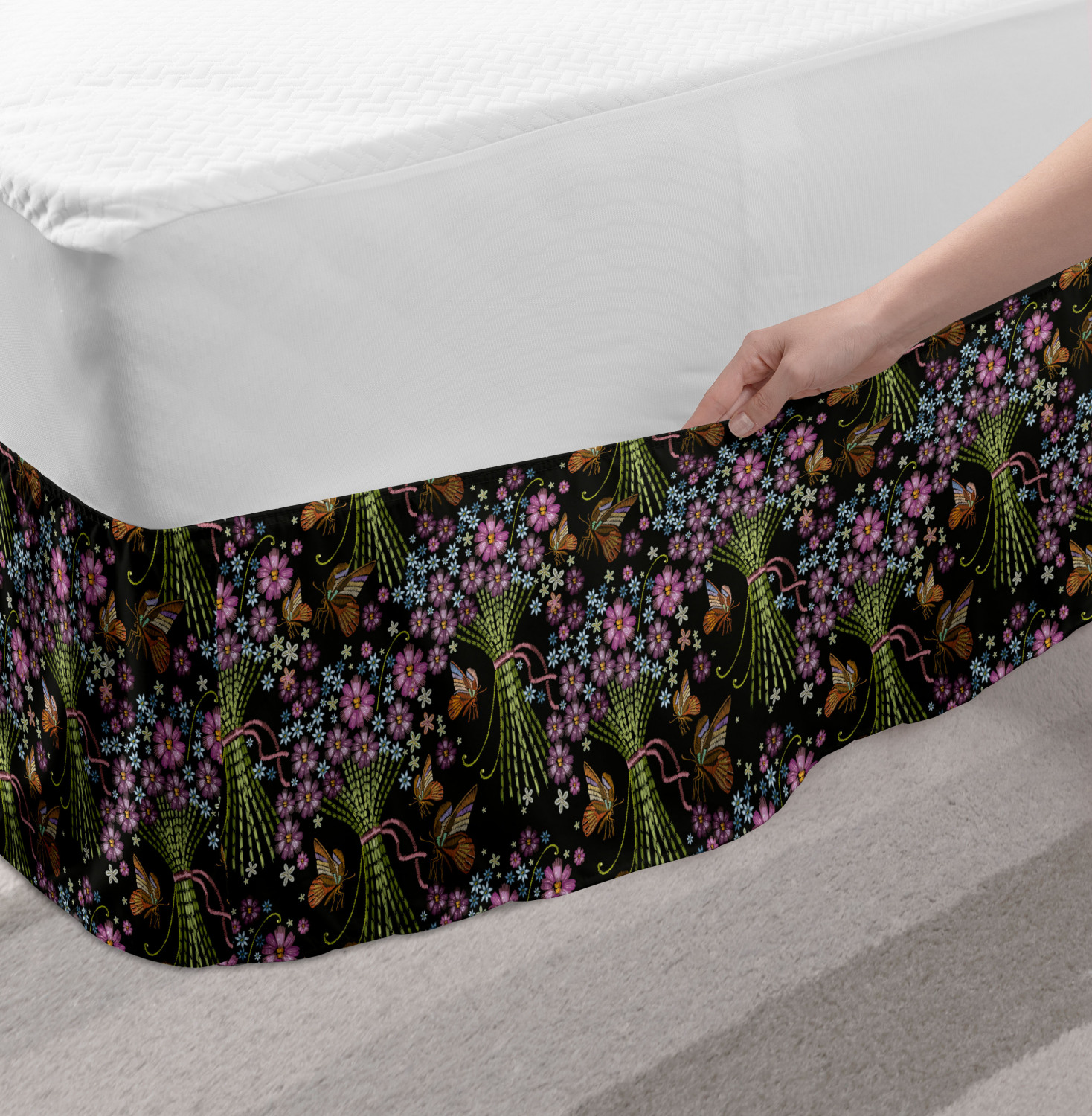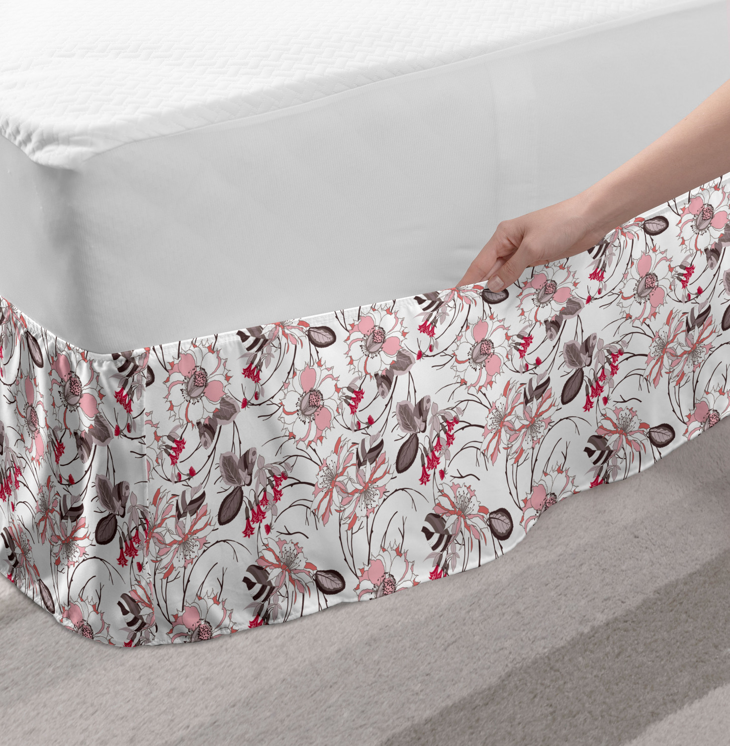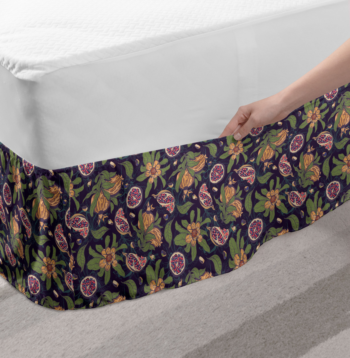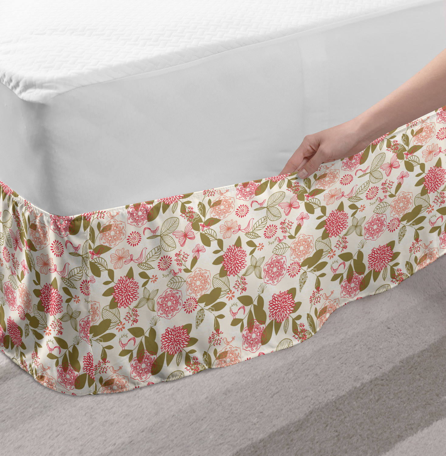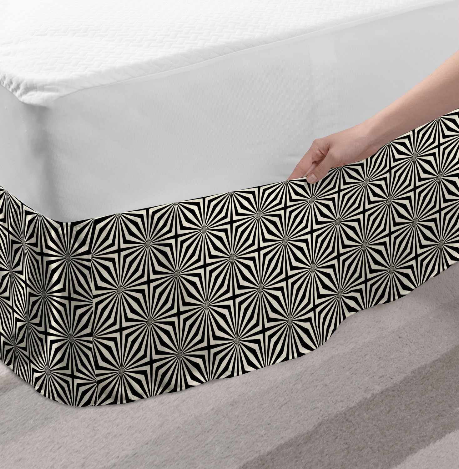 Ambesonne Vintage Themed Bedskirt Elastic Wrap Around Skirt Gathered Design Ambesonne Bedskirt Bedroom Decor Wrap Around Elastic Bed Skirt Gathered Design In 4 sizes. 15 inches drop. All around wrap gathered. MADE IN TURKEY. MADE FROM - High quality 100% brushed soft microfiber fabric. Suitable for most types of beds. FEATURES - Install easily with elastic straps wrap under the mattress. Stays in place. Split corners. MACHINE WASHABLE - On cold cycle. Dryer safe and iron easy. No fading colors. For bedroom decor. PRINTED - With state of the art digital printing technology. Long-lasting bold colors & clear image. Change your bedroom's style with a simple touch of bedskirt! Our bedskirts are very easy to use; you can easily put around this elastic bed skirt and fasten up with straps under your mattress. Bring new energy to your master suite with colors and thousands of different patterns. You can easily match your bedding sets with our varied bed skirts. You can play safe and create vintage decor easily with these bed ruffles that belongs to retro-times. But you can ask for novelty and combine this piece with your modern choices. Our bed skirt is smartly designed with modern split corners. And you don't need to worry if it gets dusty or dirty. Just machine wash in the cold cycle and tumble dry on low. Thanks to new printing techniques the colors will not fade easily. Design a neat look for your bed with this gathered bed skirt. It is designed with a slim/low style ruffle to catch a more contemporary line. You can give these bed skirts as a Christmas, birthday, wedding gift, mother's day or house warming gift. It can be a great present for your mother, father, newly married friends, grandmother, aunt, uncle. The digital images we display have the most accurate color possible, however, due to differences in computer monitors, we cannot be responsible for variations in color between the actual product and your screen. Due to manual measurement, please kindly allow 1-2 cm discrepancy.