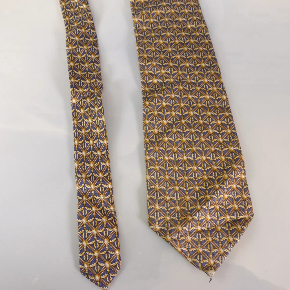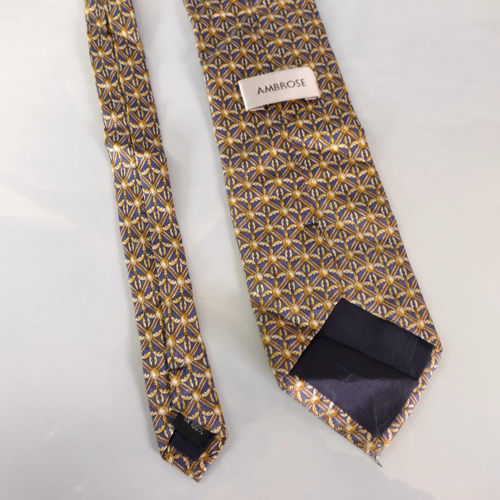 AMBROSE Men's Cornflower Blue Gold Geometric Art Deco Necktie 100% Silk Formal Pointed, Regular width & Length Made of 100% Silk Handmade Dry Clean Only Cornflower Blue, Gold Geometric Art Abstract Pattern Used Condition. Noted for Wear. Mild Defects - Minimal tear/s 🌱🌿 Proud to be a member of Eco - Packaging Alliance & utilize a sustainable packaging. 🌳 Ready to Ship items out Same or Next Business with tracking confirmation. Additional Necktie for $2 shipment for Domestic. Happy to bulk sell and combine shipping on multiple purchases won. Worldwide shipping available. Proudly posting 100+ New Listings everyday, 7 Days a week. Add me as a Saved Seller & Check back daily Items taken in photography - All colors bright & vibrant, actual item may differ in color in monitor or mobile screen & every individual may see colors differently. Kindly review all photos, conditions, & flaws if indicated. I'm grateful for offers & willing to negotiate so you can have these items. If you have questions, don't hesitate to message me. Thank You Exclusion: Shirt is not included for sale C0914-2-RL8-03