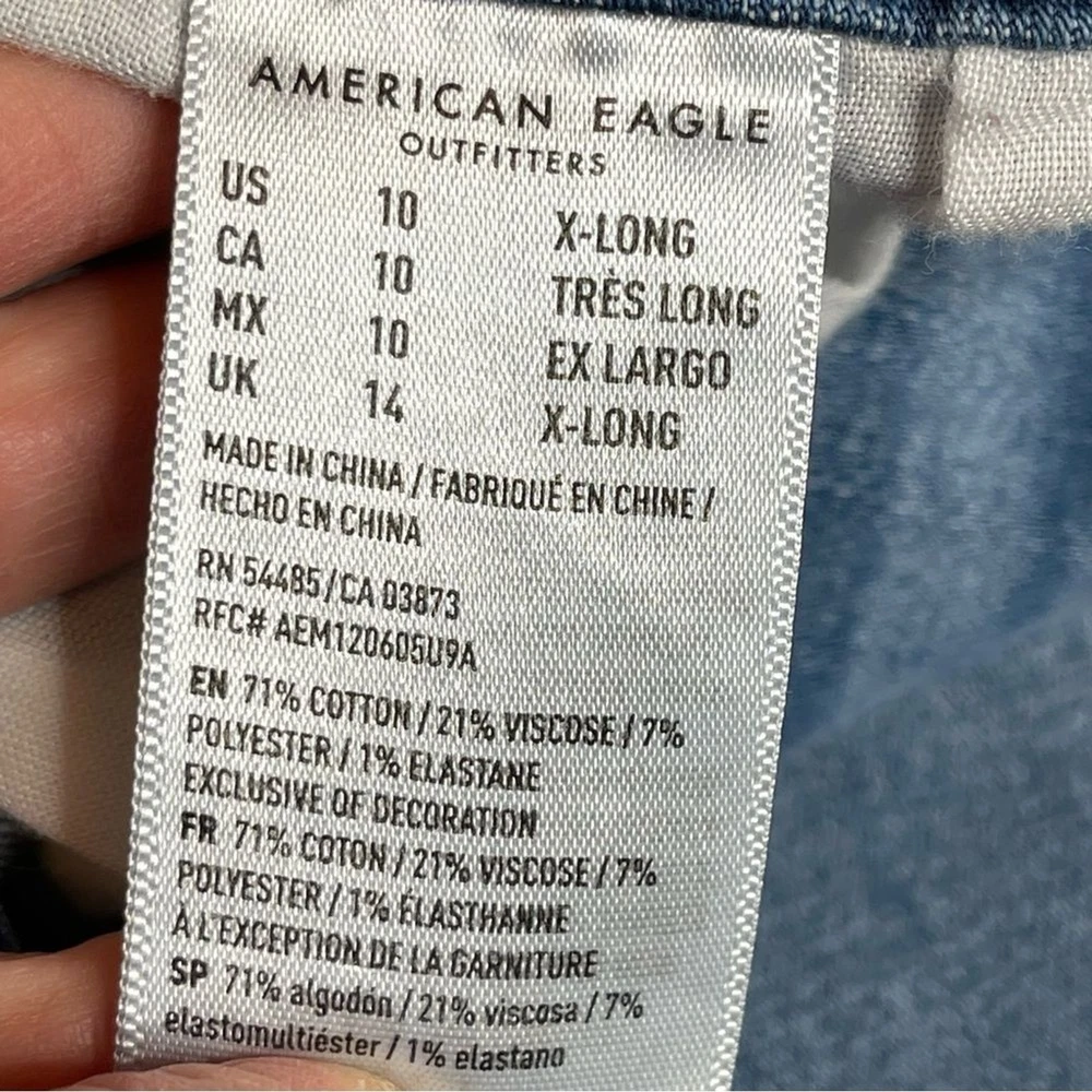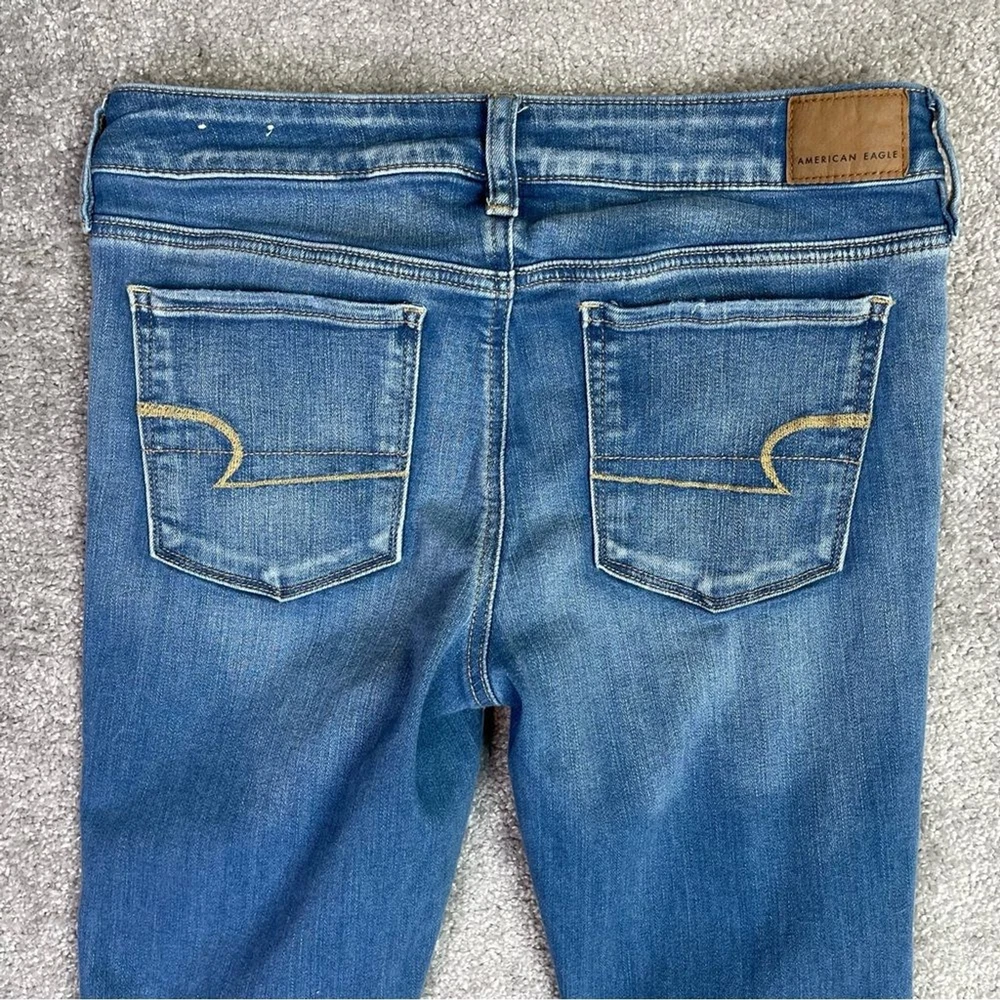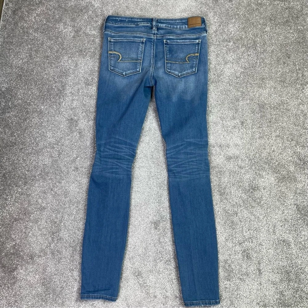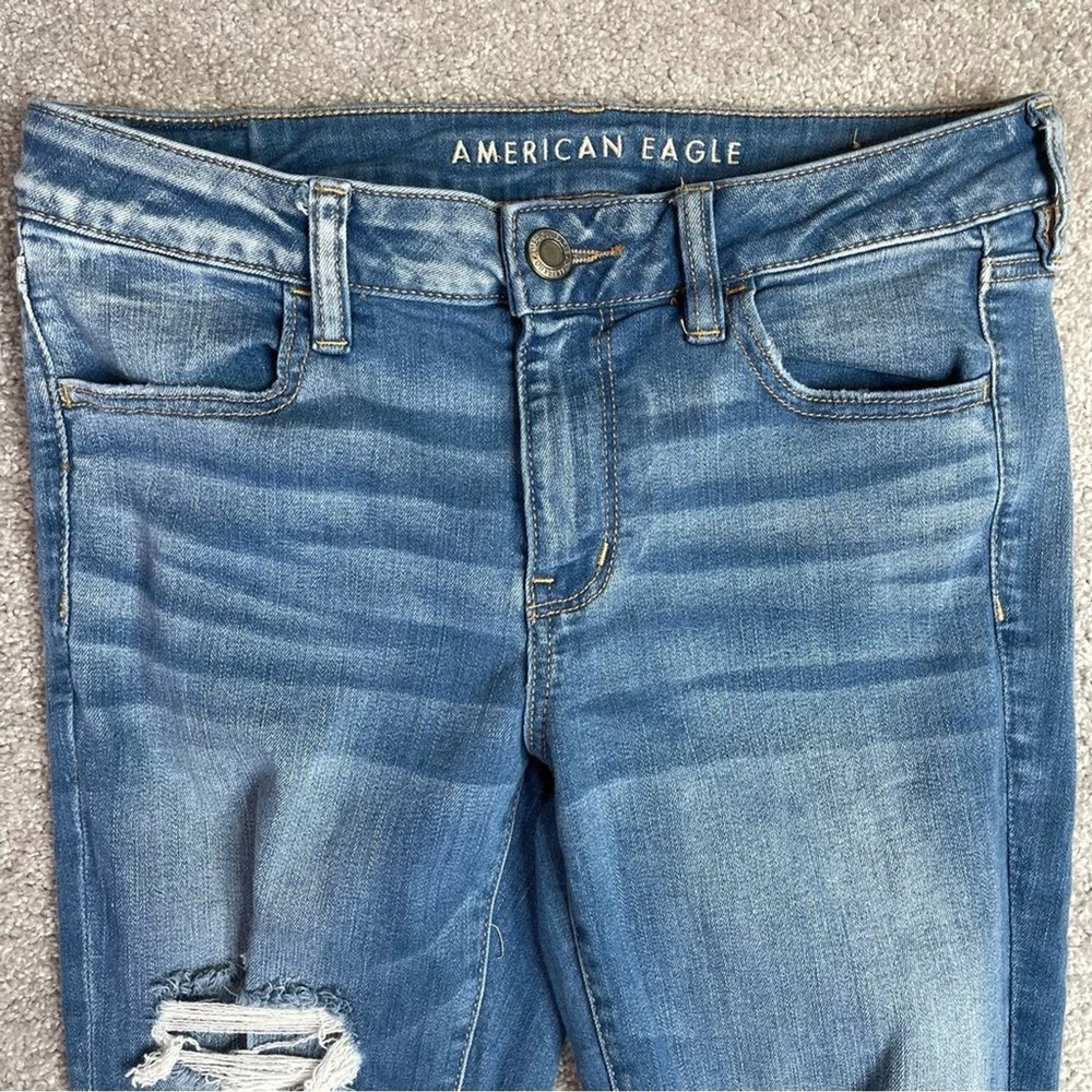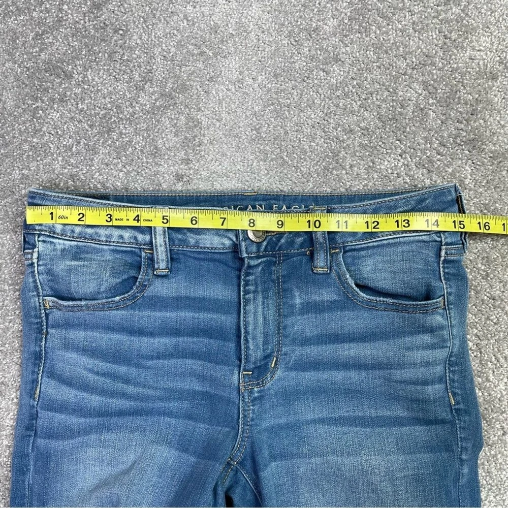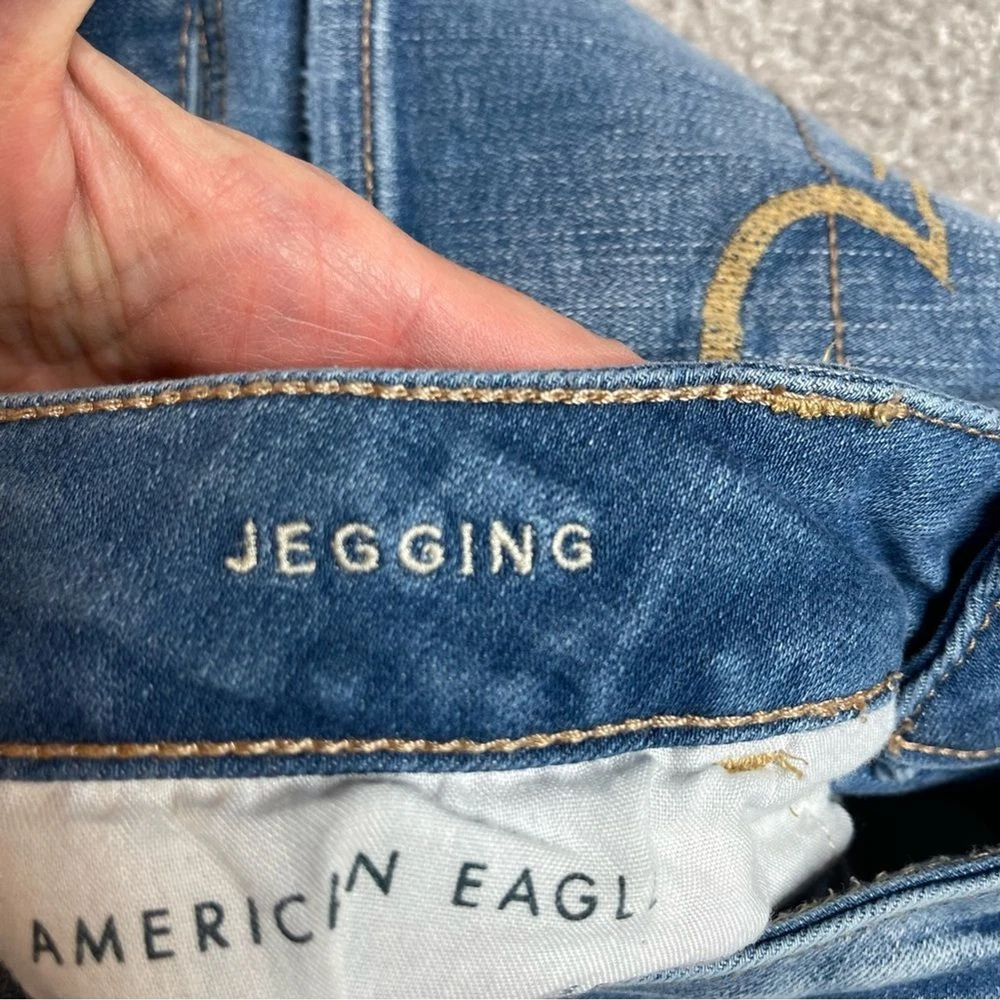 Brand: American Eagle Outfitters Material: Cotton Blend Seller Notes: “In excellent, pre-owned condition with no flaws to note.” Personalize: No Vintage: No Handmade: No Garment Care: Machine Washable Style: Jegging Theme: Preppy Model: American Eagle Jegging Country/Region of Manufacture: China Inseam: 31 in Fabric Wash: Medium Type: Jeans Color: Blue Fabric Type: Denim Size: 10 Tall Waist Size: 30 in Closure: Zip Season: Fall, Spring, Summer, Winter Fit: Regular Pattern: Solid Department: Women Features: Distressed, Pockets, Stretch Rise: Mid (8.5-10.5 in) Size Type: Tall Pocket Type: 5-Pocket Design Accents: Logo