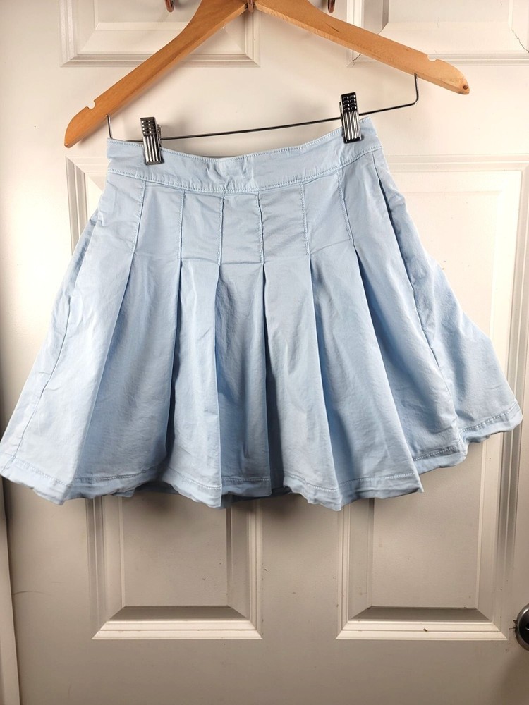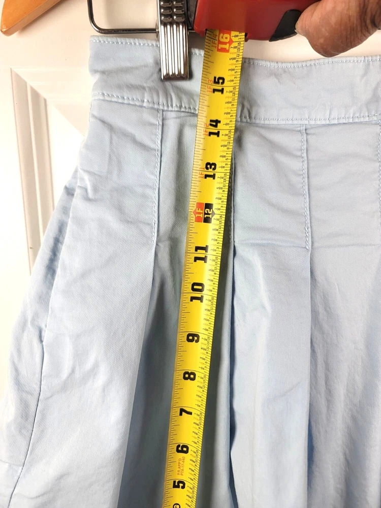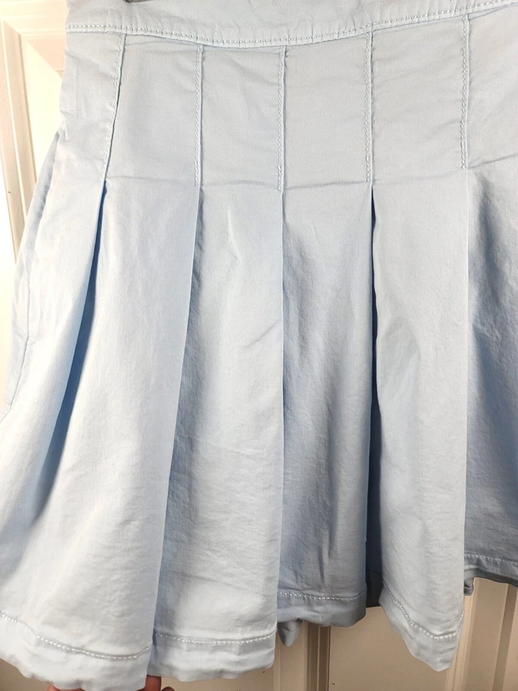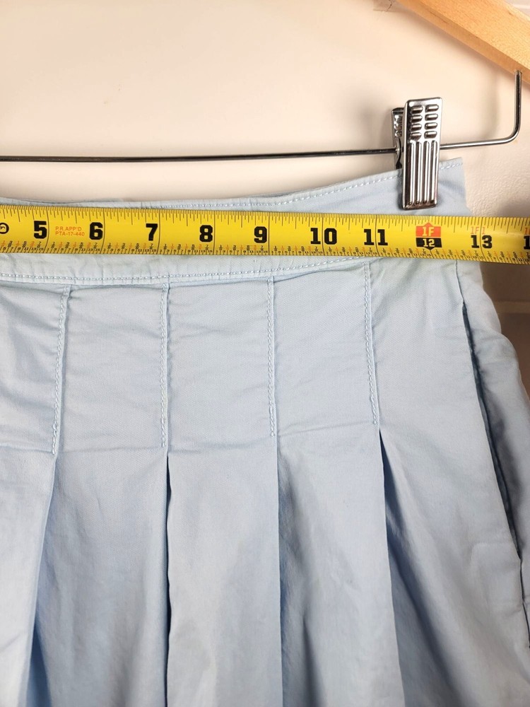 This skirt offers a chic look with its pleated design, making it suitable for various occasions. The back zipper ensures easy wear. • Pleated design • Back zipper closure • Side pockets • Waist width: 14 inches • Skirt length: 15 inches CONDITIONS pre owned, small stains, good conditions. see photos for flaws details and measurements.
