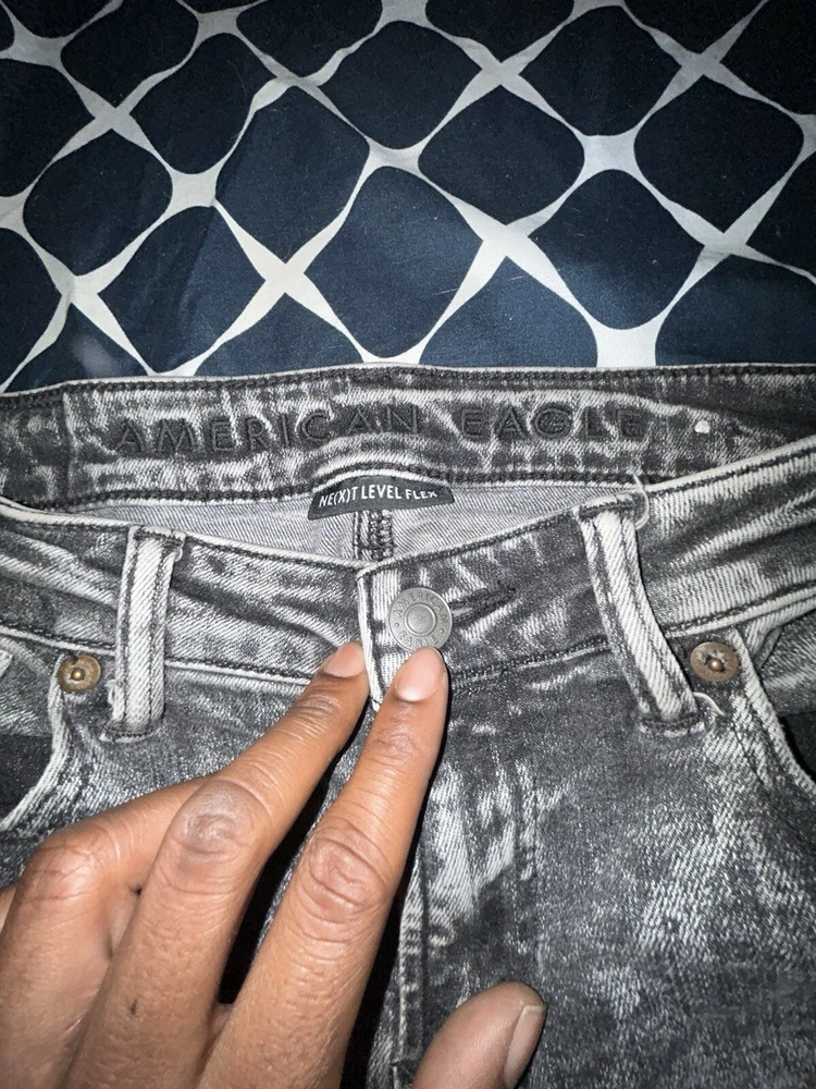 Elevate your denim game with these American Eagle Outfitters Next Level Stretch Jeans. Designed with the modern woman in mind, these jeans feature a comfortable and flattering fit that will keep you feeling great all day long. The stretch fabric is perfect for those who want to move freely and comfortably, while the jean's features, such as its unique design, make it a must-have for any fashion-forward Man. These jeans are perfect for any occasion, whether you're heading to work or going out for a night on the town.