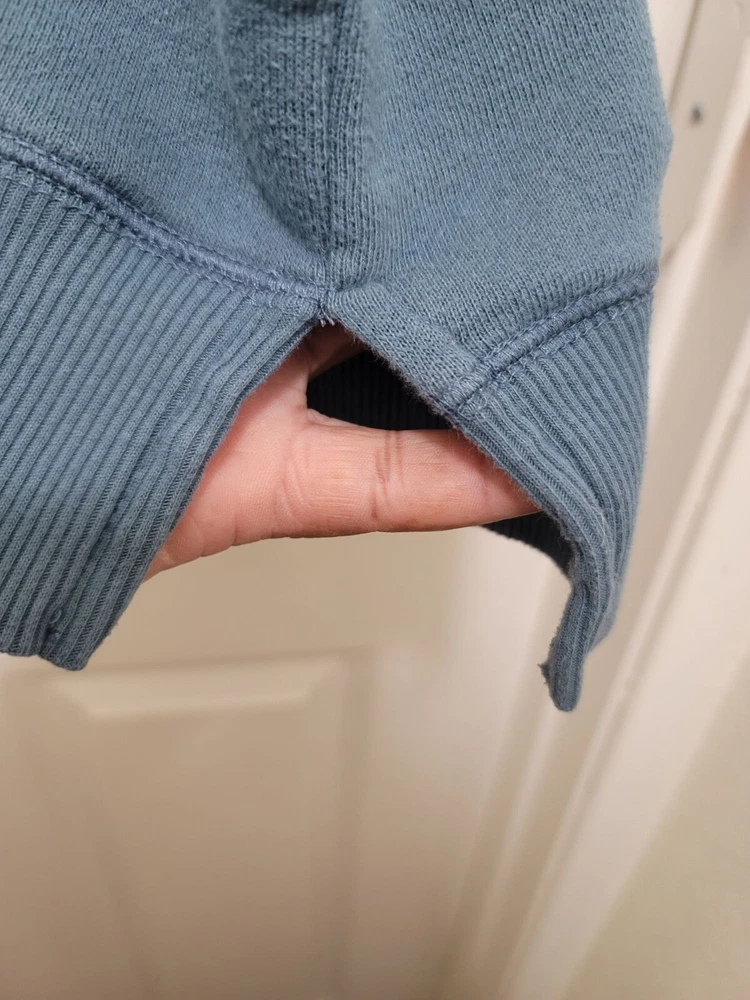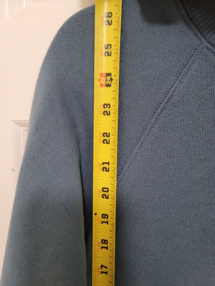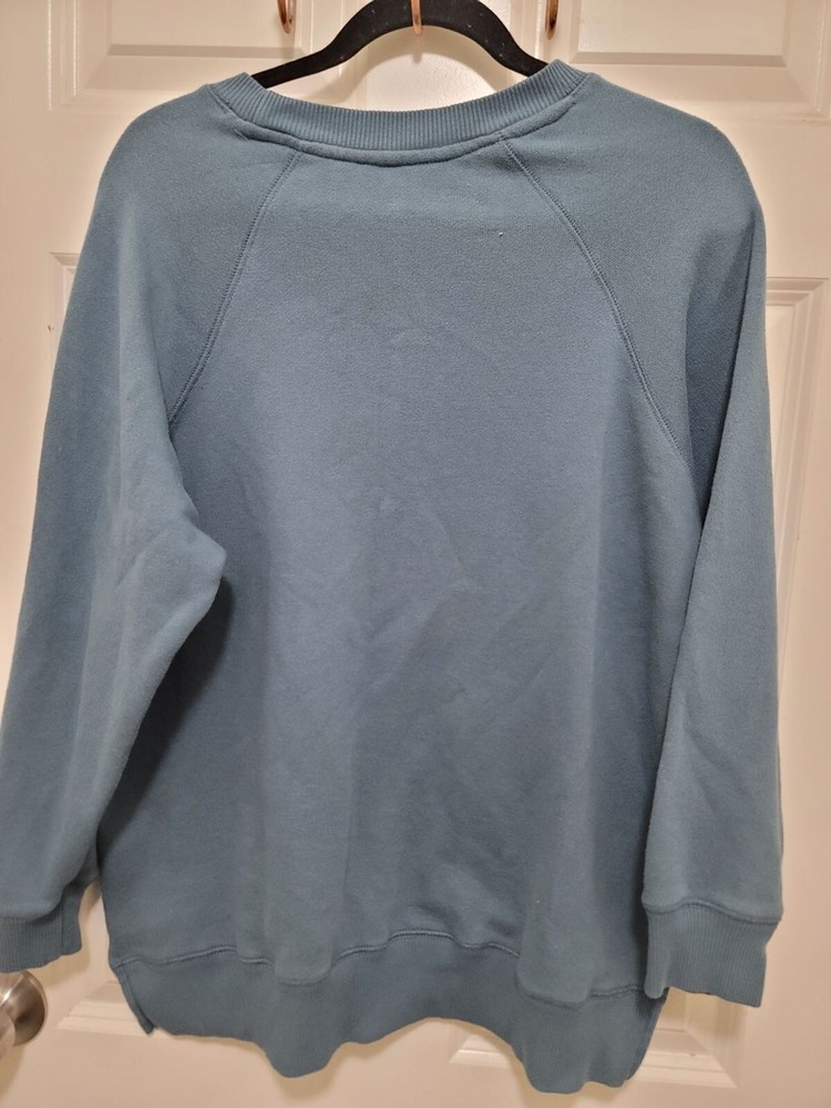 This light blue fleece sweatshirt from Aerie combines comfort with style. Featuring a motivational "Face Your Fears" embroidery, it's perfect for casual wear. • Crewneck with raglan sleeves • Motivational embroidery detail • Comfortable fleece material • Long sleeves with ribbed cuffs Minor pilling may be present. Chest = 22 inches, Sleeve length = 24 inches. CONDITIONS use, minor pilling, good conditions see photos for flaws details and measurements FACE YOUR FEARS