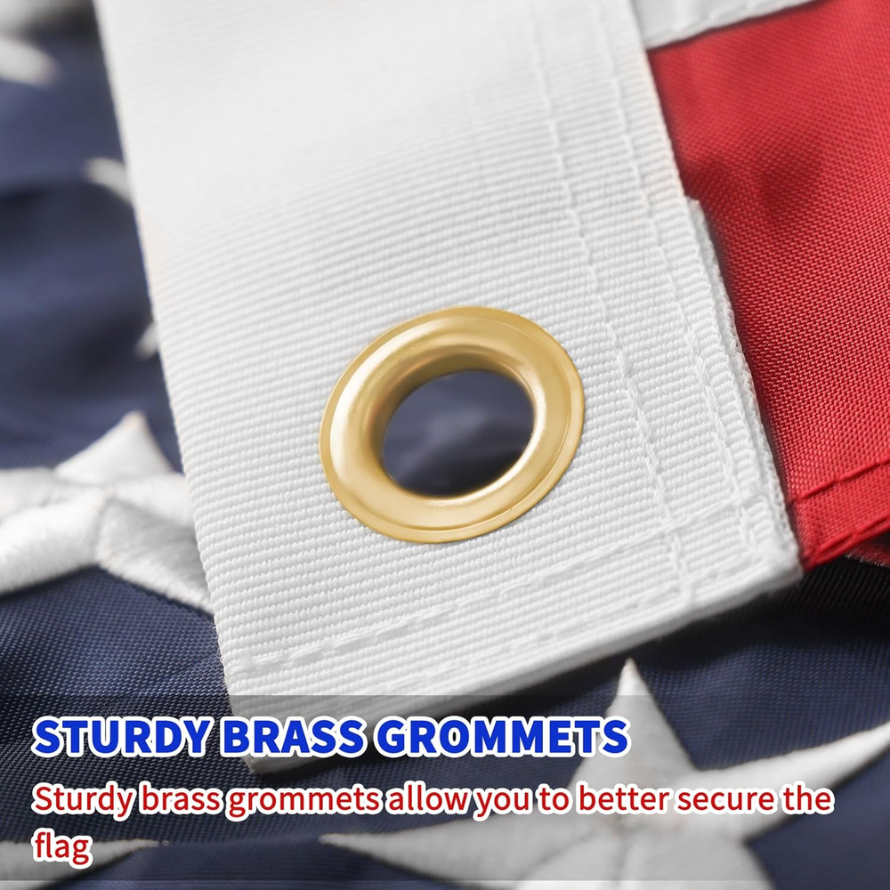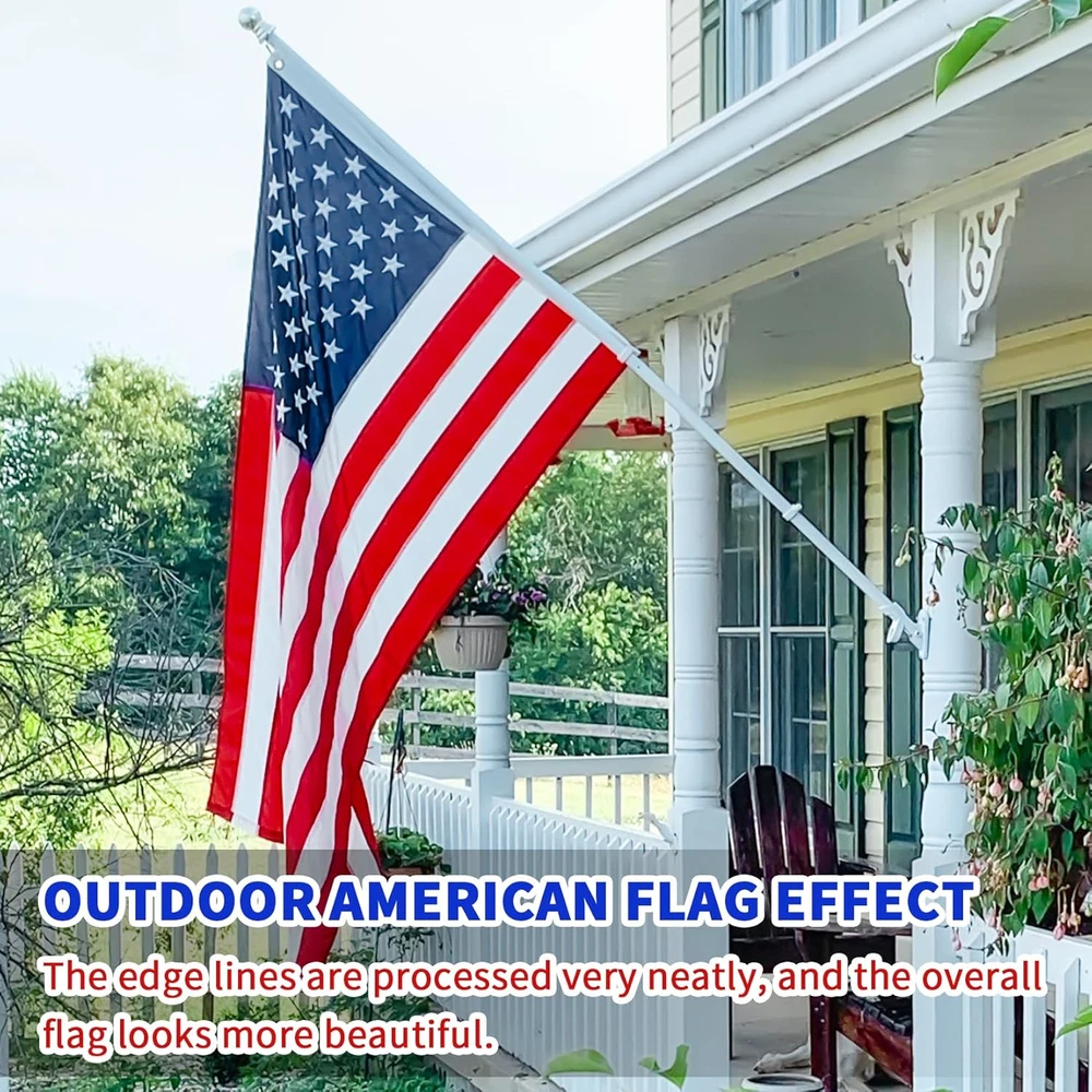 American USA Flag: American 100% American flag 5x8 outdoor is your American flag of the finest quality. The waterproof coating is the best choice for flying the flag in all weather conditions. Heavy duty outdoor 5x8 American flag, even being exposed to the hot sun for a long time, can still remain its bright color. Your best outdoor flag. It will outlast your neighbors and stay alive as long as you need it! High Quality American Flag with Embroidered Stars: As the best 5x8 USA flag, it features 50 luxuriously embroidered stars and delicate stitches. Every shining star is embroidered with high-quality white thread. The exquisite stitching process makes the texture of the American flag better, which shows the craftsmanship of the manufacturer of the 5x8 American flag. American Flag of Solid Material: This flag is made of durable cotton-spun polyester synthetic materials treated by special processes. Such material is waterproof and anti-fading, which can maintain better toughness and prolong the service life of the flag. The American flag 5x8 outdoor is 100% in the United States with high quality, no damage or tear, very suitable for flying in all kinds of weather conditions. USA flags 5x8 outdoor 100% in USA high wind. Class A High Quality American Flag: We are committed to providing high-quality American flags outdoors, reflecting the honor and spirit of our country, and expressing our respect and pride for the American flag. There is no better way to express your patriotism than to fly our American flag. We strictly control every detail of the process, every American flag before shipment has completed a thorough quality inspection to provide reliable quality. Quality Service: You will receive the American flag with guarantee. We offer “a 120-day warranty”. If you have any problem with the flag, please feel free to contact us! Product Description