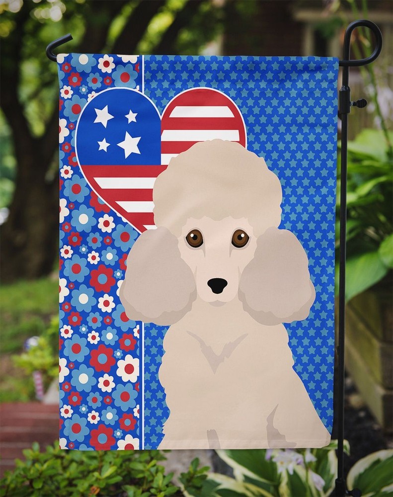 Thank you for visiting our Garden Flag listing. We now have over 20 practical, useful, and quality items featuring your favorite dog breeds. Click on the Sellers other items link above and then type in your favorite breed in the search bar. Now over 300 breeds plus free shipping. Highlights Vibrant Outdoor Decor: Elevate your garden, patio, or yard with Caroline's Treasures Garden Flag, featuring stunning artwork that adds a pop of color and personality to your outdoor space. Premium Quality and Durability: Made from two pieces of thick, double-sided polyester fabric, this 2-ply garden flag is water-resistant, weatherproof, and designed to withstand wind, rain, and snow, ensuring long-lasting beauty. Readable on Both Sides: With correctly readable words on both sides, this garden flag offers a delightful visual experience from any angle, making it a captivating focal point in your outdoor decor. Made in the USA: Proudly crafted in the USA, Caroline's Treasures Garden Flag is a symbol of exceptional quality and craftsmanship. Enhance your outdoor setting with this high-quality flag and enjoy its vibrant charm for years to come. Poodle gifts,Poodle collectibles Specification Brand:Caroline's Treasures Details Garden Flag featuring breed specific Poodle artwork. This Garden Flag is from Caroline's Treasures collection USA Love America. Enhance the beauty of your garden, patio, or yard with Caroline's Treasures Decorative Garden Flag, proudly made in the USA. Crafted from two pieces of thick, double-sided polyester fabric, this 2-ply garden flag is designed to withstand various weather conditions, making it water-resistant and weatherproof. Featuring correctly readable words on both sides, this garden flag offers a delightful visual experience from any angle. With its heavier weight, it stands out among other garden flags, ensuring stability and durability even in wind, rain, and snow. Measuring approximately 11 1/4 inches by 15 1/2 inches, this flag allows you to personalize your outdoor decor. It comes with a 1 1/2-inch sleeve sewn in, allowing easy attachment to any standard garden flag stand or garden size porch hanger (sold separately). Make a statement in your outdoor space with Caroline's Treasures Decorative Garden Flag, a vibrant and high-quality flag that adds color and personality to your surroundings. Proudly made in the USA, it's a symbol of quality craftsmanship and attention to detail. This Garden Flag is from Caroline's Treasures Dogs category of products.
