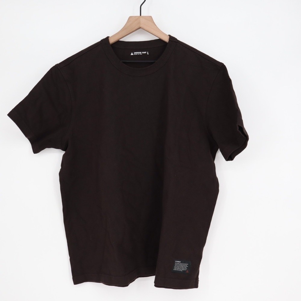 American Giant Everest T-shirt in a rich brown hue. This classic crew neck, short-sleeve tee is crafted for durability and comfort. Its versatile design makes it perfect for casual outings, layering, or everyday wear. Measurements: • Chest: 25 in • Length: 28 in • Size: L Department: Men Fit: Classic Sleeve Length: Short Sleeve Pattern: Solid Type: T-Shirt Features: Easy Care, Tagless Neckline: Crew Neck Fabric Type: Knit Material: Cotton Accents: Logo Product Line: Fear of God ESSENTIALS Season: Spring, Summer, Fall, Winter Model: Sportsman Garment Care: Machine Washable Keywords: American Giant, Everest T-shirt, brown tee, crew neck, short sleeve, basic tee, everyday wear, casual top, durable, comfortable, USA made, menswear, layering piece All orders are shipped the same business day or the next business day. Thank you for supporting my small business.