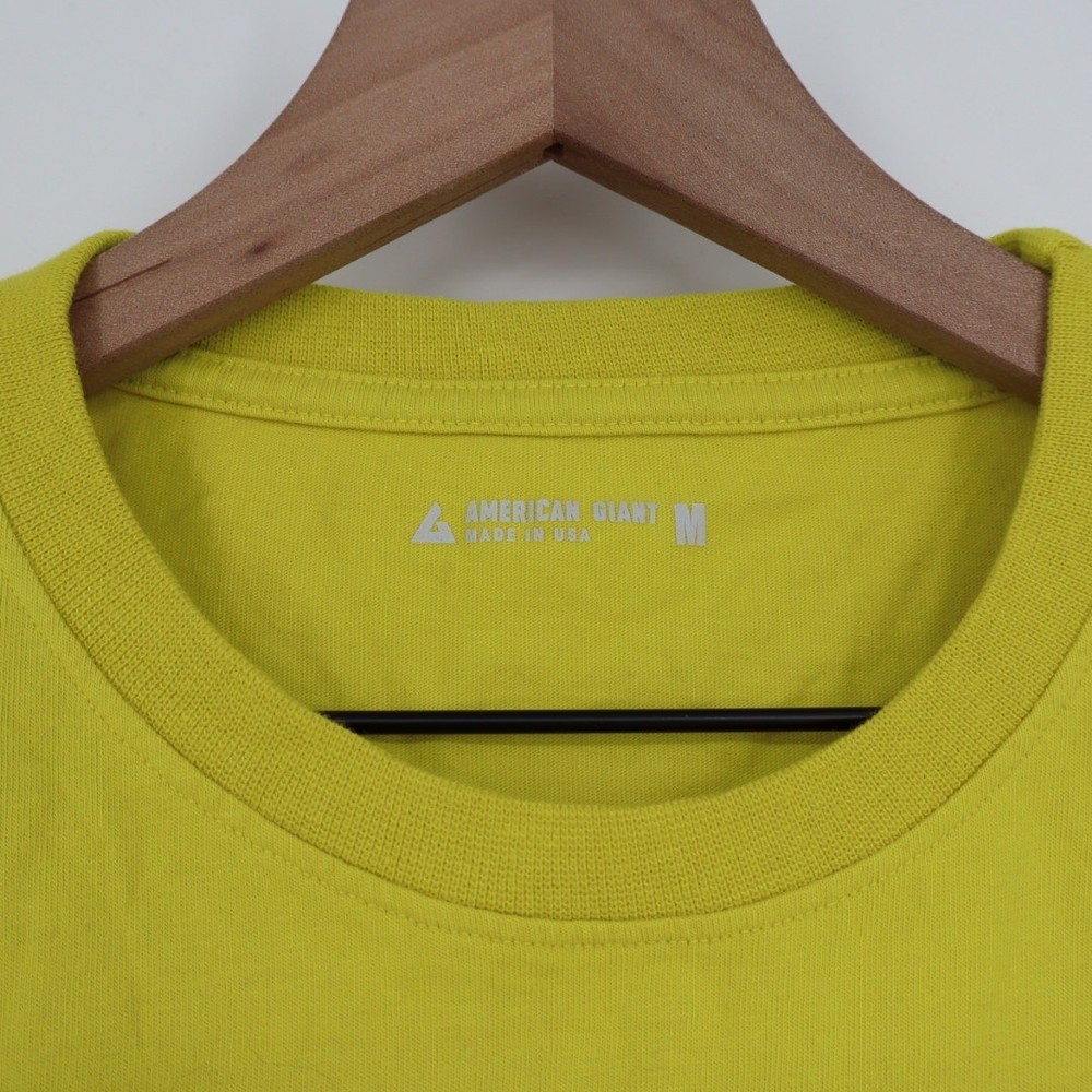 American Giant classic crew neck pocket t-shirt in a vibrant yellow hue. This essential tee offers a comfortable fit and a single chest pocket for a touch of utility. Perfect for everyday wear, layering, or casual outings. Measurements: • Chest: 22 in • Length: 28 in • Size: M Department: Men Fit: Regular Sleeve Length: Short Sleeve Pattern: Solid Type: T-Shirt Features: Pockets Neckline: Crew Neck Fabric Type: Jersey Material: Cotton Accents: Logo Season: Summer Garment Care: Machine Washable Country of Origin: United States Unit Type: Unit Keywords: American Giant, pocket tee, crew neck, yellow shirt, mens tee, basic tee, everyday wear, casual, cotton, short sleeve, made in usa, wardrobe staple, normcore All orders are shipped the same business day or the next business day. Thank you for supporting my small business.