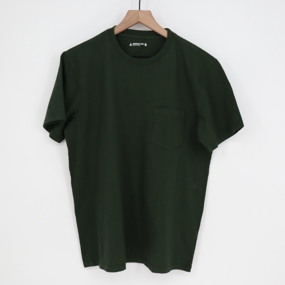 Classic mens forest green pocket t shirt from American Giant. This comfortable tee is crafted for durability and everyday wear, featuring a timeless crew neck and a single chest pocket. Its versatile design makes it perfect for casual outings or layering. Measurements: • Chest: 22 in • Length: 27 in • Size: M Department: Unisex Adults Sleeve Length: Short Sleeve Pattern: Solid Type: T-Shirt Features: Pockets, Preshrunk, Ring Spun Neckline: Crew Neck Fabric Type: Jersey Material: Cotton Accents: Logo Product Line: American Giant Season: Spring, Summer, Fall Model: Sportsman Garment Care: Machine Washable Keywords: American Giant, pocket tee, crew neck, short sleeve, basic, casual wear, everyday, solid, workwear, sustainable, durable, comfortable, wardrobe staple All orders are shipped the same business day or the next business day. Thank you for supporting my small business.