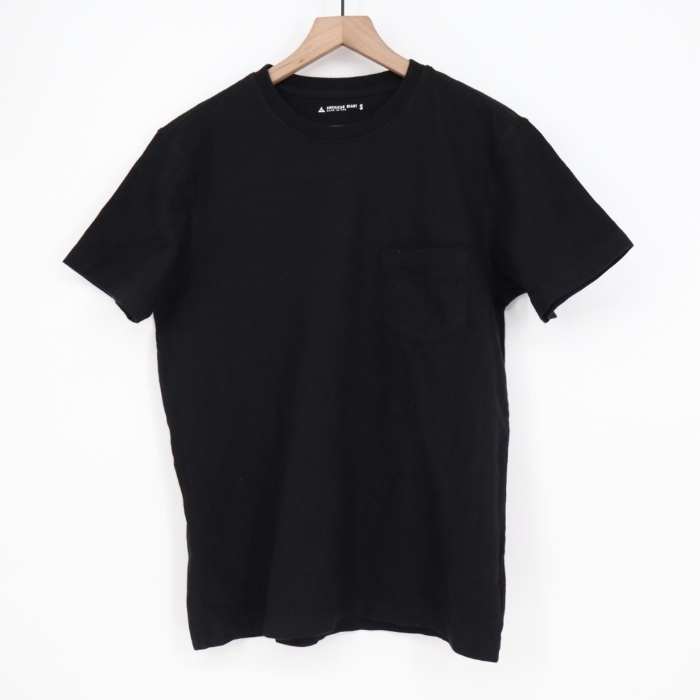 The American Giant T-Shirt is a classic black cotton crew neck short sleeve shirt designed for men in size small. This outdoor-themed shirt features a solid pattern with a logo accent, making it a versatile option for summer, fall, and spring seasons. Easy to care for with machine washable instructions, this breathable shirt also includes a pocket detail and is made in the United States by the brand American Giant. Perfect for a casual and comfortable look, this T-shirt is a timeless addition to any wardrobe. Measurements: * Chest: 20 in * Length: 26 in Department: Mens Style: T-Shirt Type: T-Shirt Pattern: Solid Performance/Activity: Casual, Active Features: Comfort, Easy Care Occasion: Casual Length: 26 in Closure: Pullover Chest: 20 in Keywords: American Giant , Casual, Comfortable, Pullover, Cotton, Active, Everyday Wear, Easy Care. All orders are shipped the same business day or the next business day. Thank you for supporting my small business.