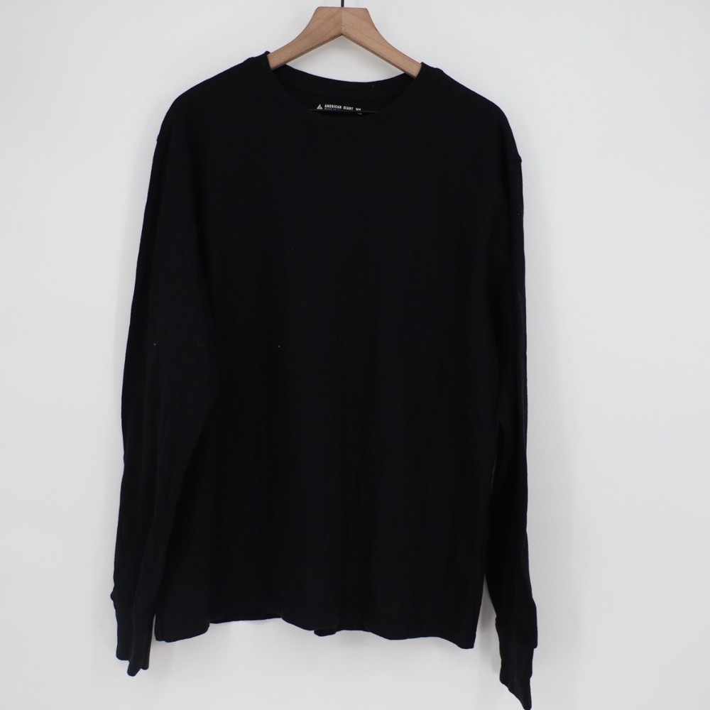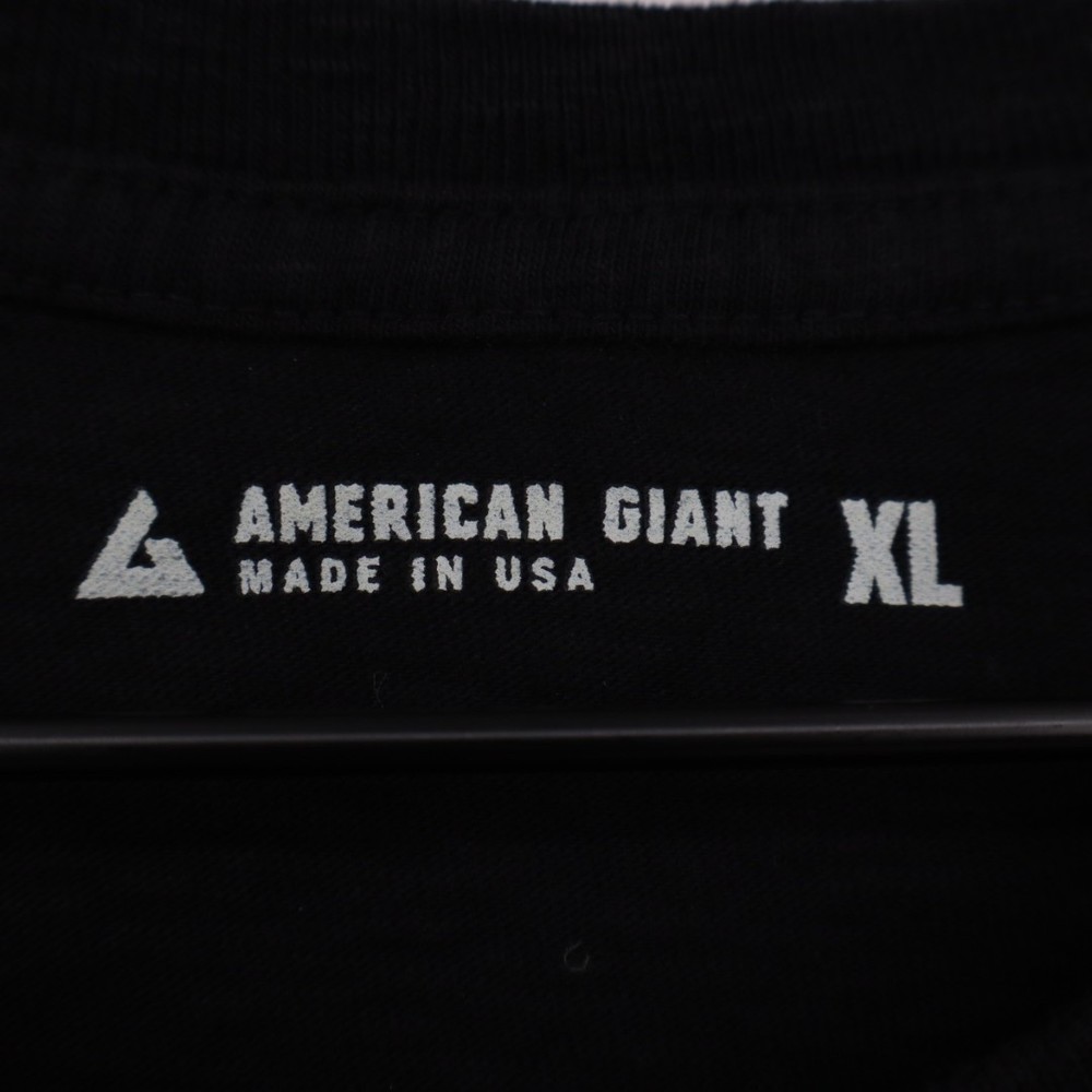 The American Giant T-Shirt for men in size XL is a classic black cotton crew neck long sleeve shirt perfect for street wear. Made in the United States, this regular fit shirt is machine washable and features a solid pattern with a collarless design. With its easy care fabric and timeless outdoor theme, this t-shirt is suitable for all seasons and is a versatile wardrobe staple for any man looking for a high-quality and stylish basic shirt. Measurements: * Chest: 24 in * Length: 28 in Department: Mens Style: T-Shirt Type: T-Shirt Pattern: Solid Performance/Activity: Casual Features: Comfort, Easy Care Occasion: Casual Length: 28 in Closure: Pullover Chest: 24 in Keywords: American Giant, Casual, Comfortable, Cotton, Crew Neck, Long Sleeve, Street Wear, Pullover. All orders are shipped the same business day or the next business day. Thank you for supporting my small business.
