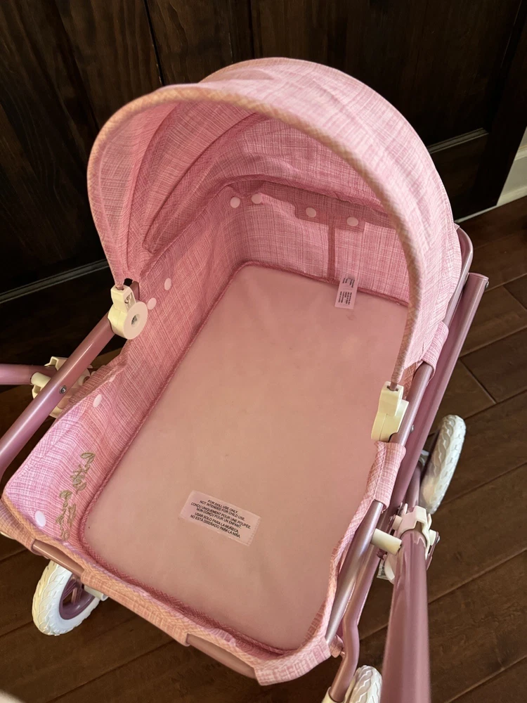 This is a gently used stroller with very minor signs of use. This American Girl Bitty Baby Bassinet Stroller is perfect for your little one's playtime with their 15-inch doll. The stroller is designed with a pink color and comes with a comfortable bassinet for your doll to rest in. The furniture is made of high-quality materials and is designed to be durable. The stroller is perfect for imaginative play and will allow your child to create their own stories and adventures with their favorite doll. It is suitable for both girl dolls and boy dolls and can be used as a play doll or a baby doll. Get your little one this unique American Girl Bitty Baby Bassinet Stroller today and let them enjoy hours of fun playtime with their doll.