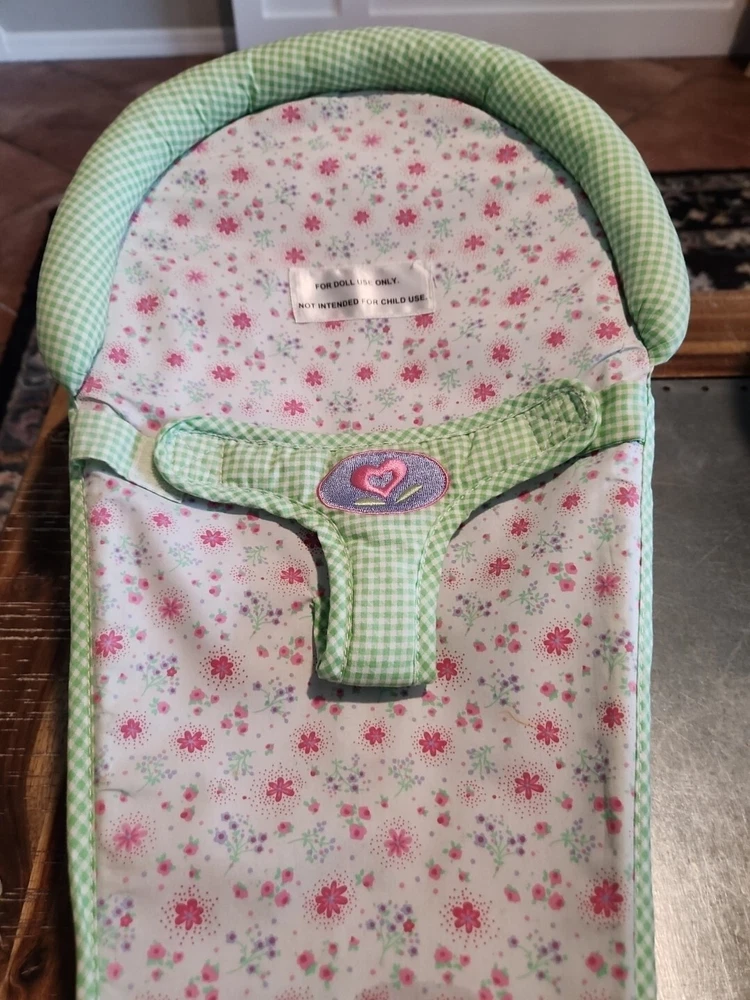 Enhance your little girl's American Girl Bitty Baby Doll experience with this vibrating bouncer bouncy seat. The perfect addition to your collection, this furniture set includes a bouncer to keep your doll comfortable and entertained. This bouncy seat is perfect for aspiring little mommys. Made from high-quality materials, this bouncer is designed to last and is ideal for children aged 3 and up. This set is part of the Bitty Baby franchise and is a must-have for collectors and fans alike. Add this to your collection today and create new and exciting adventures for your American Girl Bitty Baby. Vibrations works. Music does not work. See pics. Chair is clean.