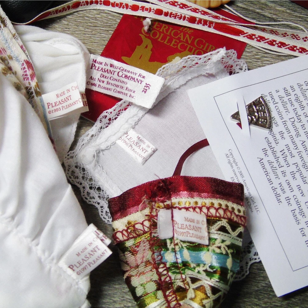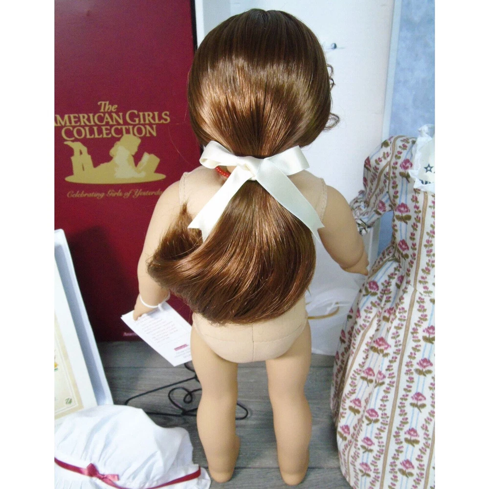 You Are Looking To Buy: American Girl DOLL 18" FELICITY MERRIMAN In Original MEET OUTFIT With ACCESSORIES. Red Hair Green Eyed Doll In American Girl Box by Pleasant Company With Meet Accessories In Box And 'Meet Felicity' BOOK! Who she is: Felicity Merriman Was The Fourth (4th) Historical Character Of The American Girl Dolls Representing The Revolutionary War Period! Felicity Was Released In Fall 1991. Felicity Was Officially Archived On March 28, 2011 And Re-released In 2007 For BeForever Collection! Light Skin, Green Eyes, Red Hair With Pin Curls On Sides! Felicity's Meet Outfit Has Had 3 Distinct Differ •The First (1st) - As Is With This Set - Is The Pleasant Company Label Dated From 1991-2005 A Cream Flower Striped "Rose Garden' Gown, White Shift Undergarment, Off-White Stockings, Black Shoes With Brass Buckle And Ivory Satin Hair Ribbon. Also Included In This Set Is Felicity's Original Meet Accessories In Box- Coral Necklace, Round-Ear Cap, Garters, Coin Bit, Handkerchief, And Drawstring Purse! •The Second Meet Outfit Was Felicity's Purple Travel Gown With Embroidered Flowers & Mop Cap, Knit White Socks And Black Shoes With Brass Buckles •The Third Meet Outfit Is Felicity's BeForever Meet Outfit - A Blue & Yellow Brocade Gown. Silk Brocade With Flowers, Vines And Buds Woven In Various Red and Yellows. With A Petticoat Panel Of Yellow Cotton With Diamond 'Quilting' In Gold, White Stockings and Brown Colonial Shoes With Gold Brass Buckles! •Felicity (nicknamed Lissie) is a tomboyish, daring, adventurous, spunky, brave, and fiercely independent-minded girl. She is very active for a girl her age in her era and is annoyed at her lack of freedom as a young girl and the ladylike things and personality that is expected of her. Felicity believes in fighting for what she wants and can be quite stubborn and headstrong at times; this gives her a strong connection to Benjamin Davidson. When she wants something, she goes for it, quite often without thinking about it. She sometimes wavers between brave and foolish and sets her heart on things often. When Felicity is angry, she's never afraid to speak her mind and stand up to bullies, as she did with Jiggy Nye. Felicity also isn't afraid to tease Annabelle, coming up with the name "Bananabelle". Felicity is good with coming up with names. She came up with Polly's, Posie's name, Penny's, and Patriot. •Felicity learned to ride and make friends with horses at Grandfather's Plantation; this aids her in taming Penny, but is a hindrance when it gives her overconfidence in Felicity Takes A Dare. •She is constantly fussed at for being not very ladylike. For the most part Felicity is a "tomboy" with a love for horses, nature, and the great outdoors. She is quite impatient—especially when it comes to things she finds dull and boring—and is often regarded as "flighty" and "thoughtless" by her mother and often chided for not finishing or tending to her domestic work properly. She shows disinterest for the most part in cooking, sewing, dance, and other then-feminine skills, though she does like working in her garden and playing her guitar, which was considered feminine then. Sewing especially bores her and she is generally sloppy in her work. Felicity loves horses more than anything, hence her affection for Penny that is carried throughout the series and her dedicated care towards her from the start. She eventually learns how to be more of a lady throughout the series with events such as dancing at a fancy dancing lesson designed as a ball, and learning how to serve tea; however, she is still quite active. •Felicity enjoys working in her father's store, where she can imagine where all the items come from. She tends to act more like a fine lady at the store. •Felicity enjoys making her best friend Elizabeth laugh. •American Girl characterizes her as "spunky" and "spritely." Americangirlpublishing.com describes her as "independent", "loyal", and "spirited". American Girl e-card describes her as steadfast. •This Pleasant Company Felicity Doll Arrives In Her Original Burgundy Box With Wrist Tag & Accessories In Box. Felicity Will Be Dressed In Her Original Pleasant Company Meet Outfit Dress, Shift Undergarment With Somewht Loose Elastic At Neck, Stockings, Garters, Black Shoes With Buckle Coral Necklace & Bonnet Cap. Included In Her Boxed Accessories Is A Drawstring Purse, Colonial Bit Coin & Handkerchief! A Paperback "Meet Felicity" Book Accompanies Felicity (Dress Mannequin Sold Separately) •Size: 18" Full Size American Girl Doll •Excellent Condition In Box With Boxed Accessories - From Adult Collector. Great Gift for Him or Her - or For Yourself! Buy In Confidence From 100% Positive Feedback Seller Thank You! We will ship your order immediately upon receipt of payment. For your convenience, we do combine shipping and often discounts on multiple item orders to same address. Please Come Back To Shop And Buy Again!