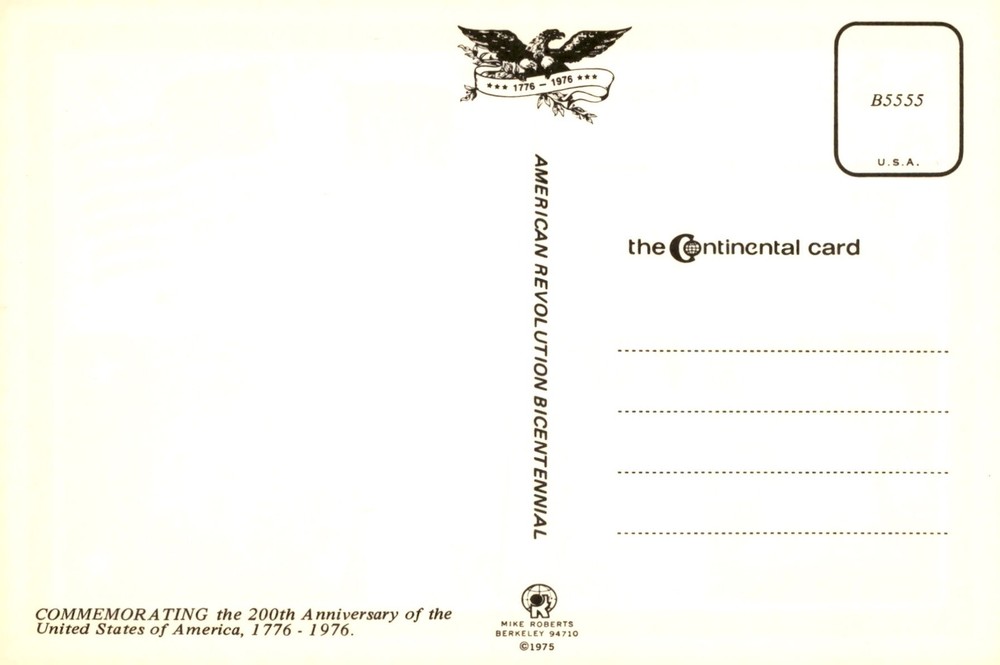Commemorative postcard celebrating the 200th Anniversary of the United States of America, featuring the iconic 'Spirit of '76' image.