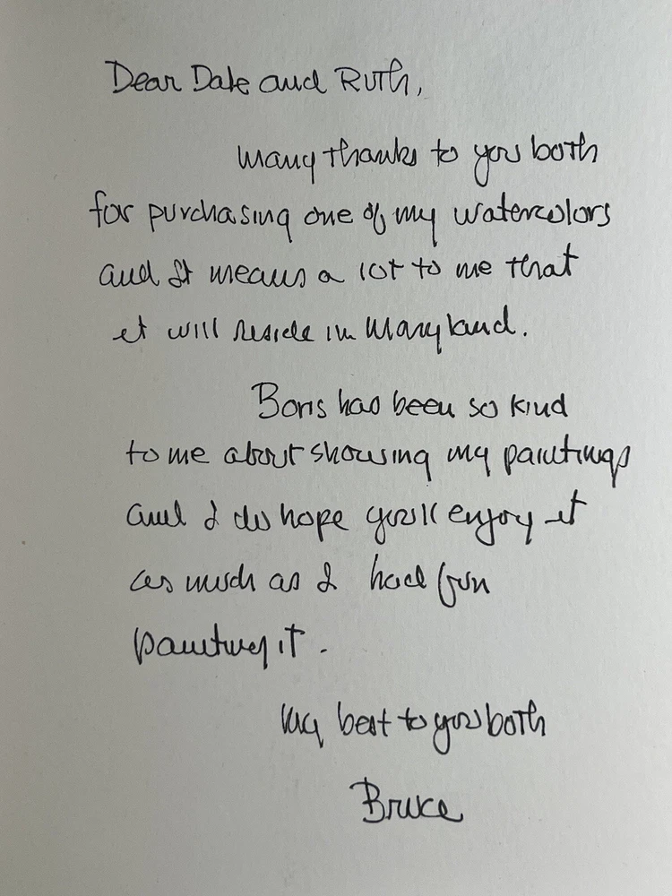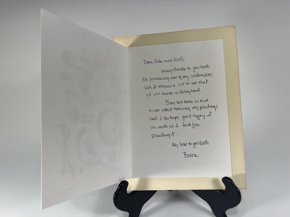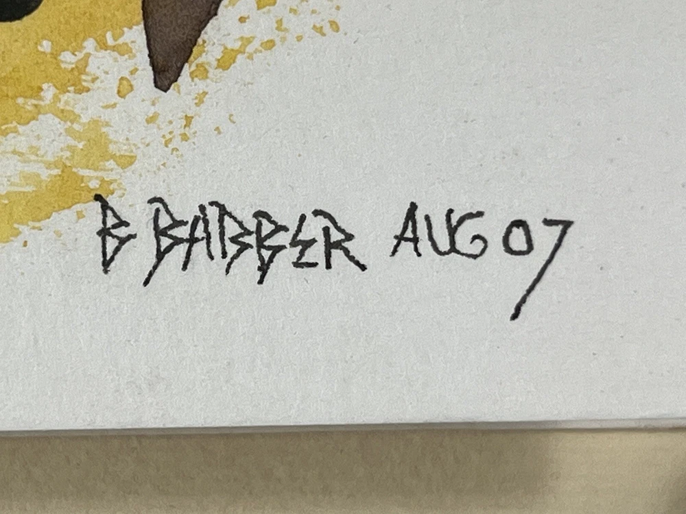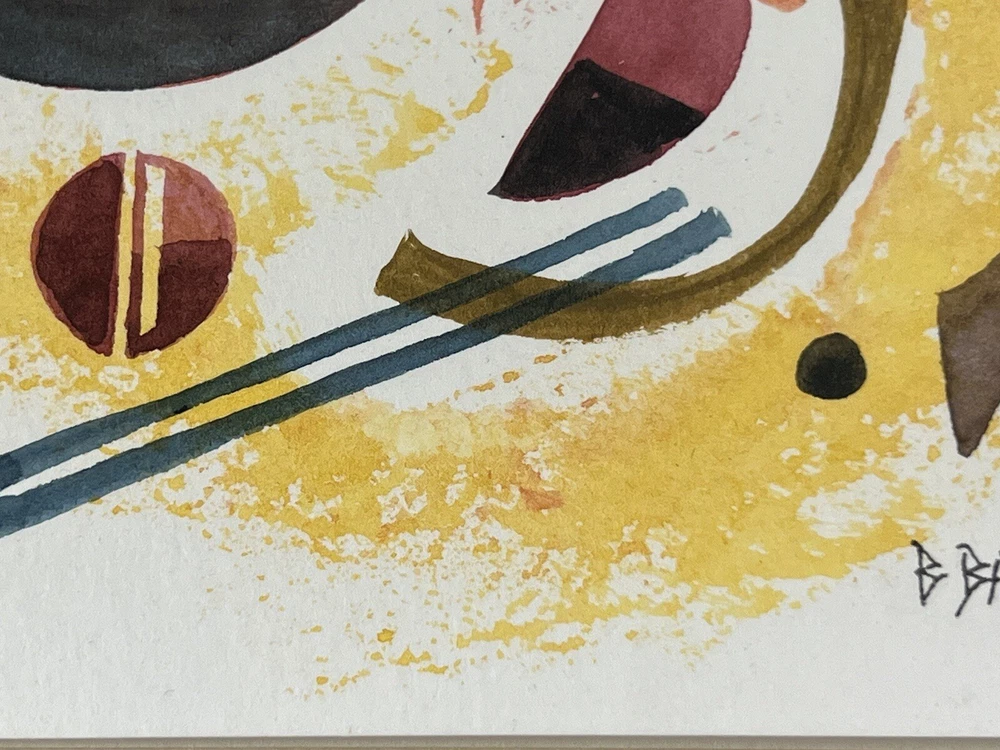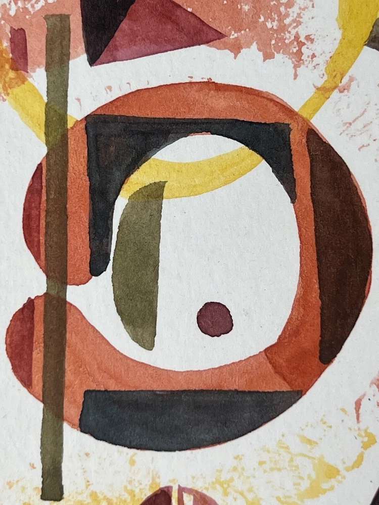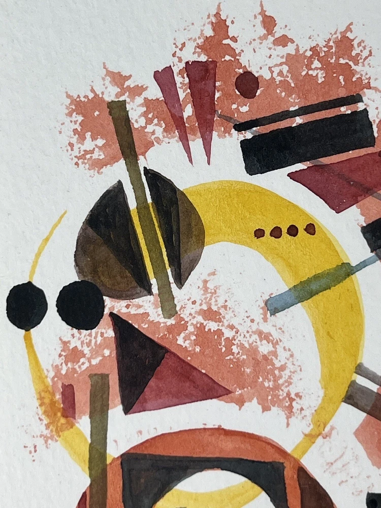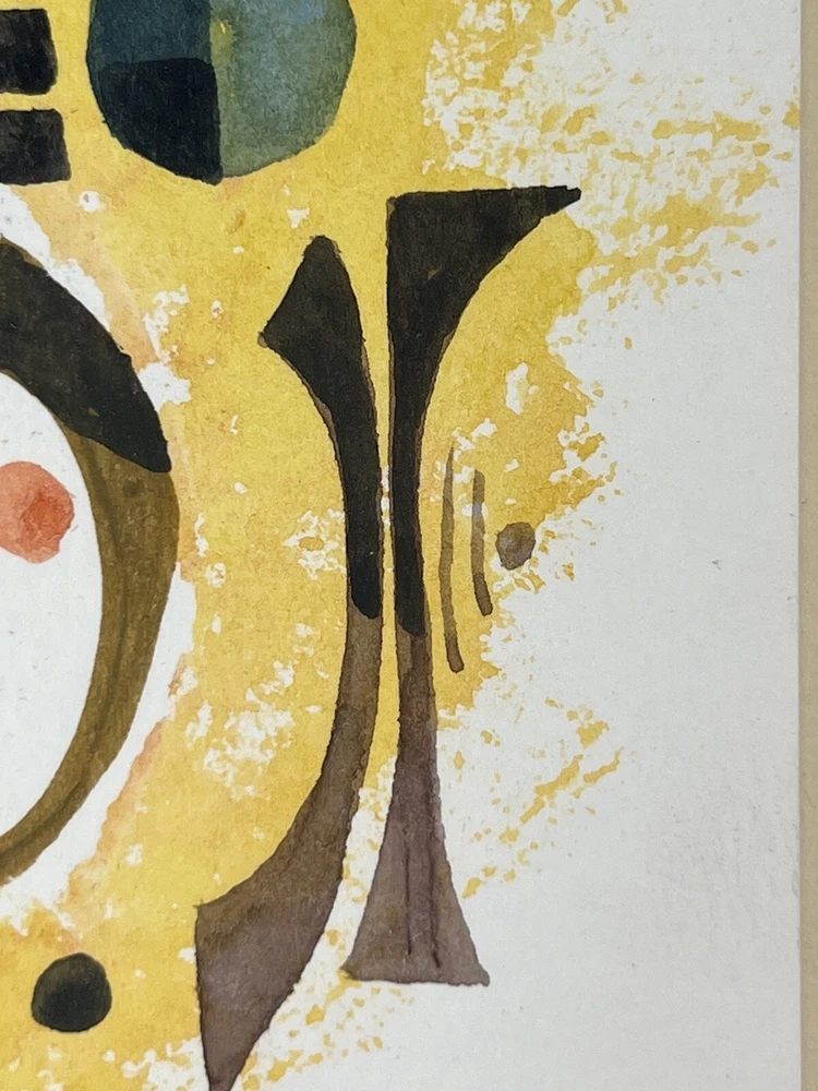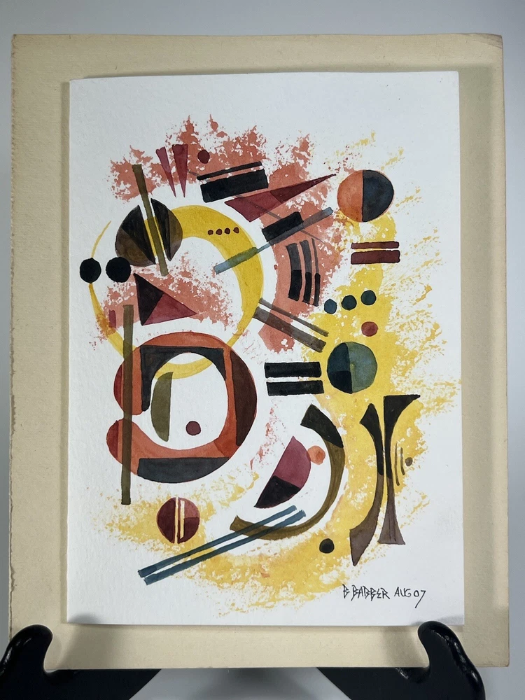 Very Fine American Watercolor on paper card Abstract Composition signed Bruce Barber (Buffalo artist b.1925) dated August 2007. Measures overall with backing 6 1/2 X 8 1/4 and the page measures 7 X 5 inches appears to be in very good condition.