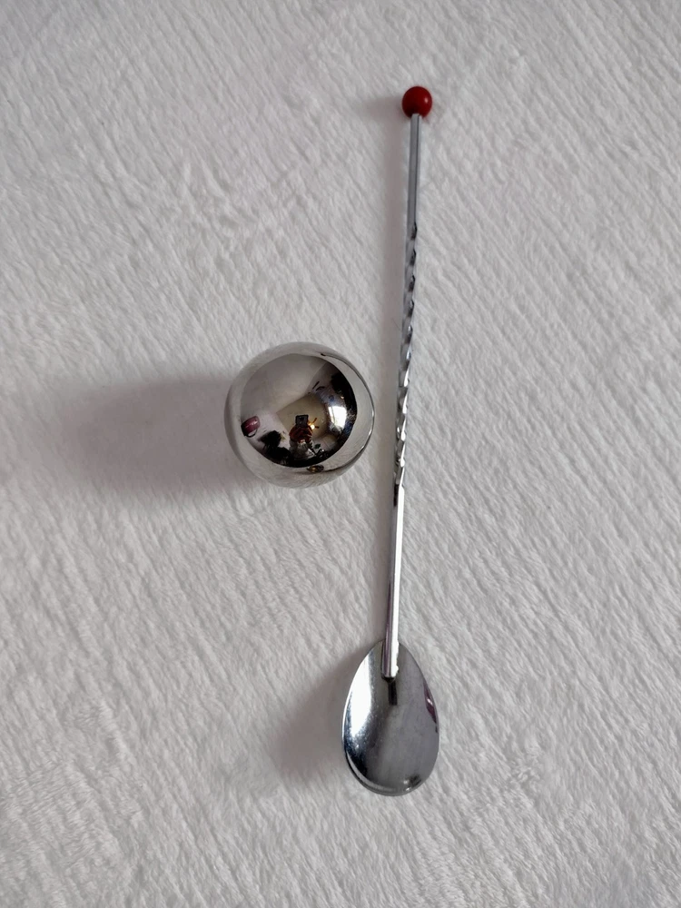 Vintage Amythyst Martini cocktail mixer with spoon and stainless steel ball. In excellent condition. Measures 9 3/4" tall. 5" width with handle. Top diameter measures 3 5/8", bottom diameter 2 3/4". Very Nice! Great Mother's Day gift. Check my other listings for more great products and deals.
