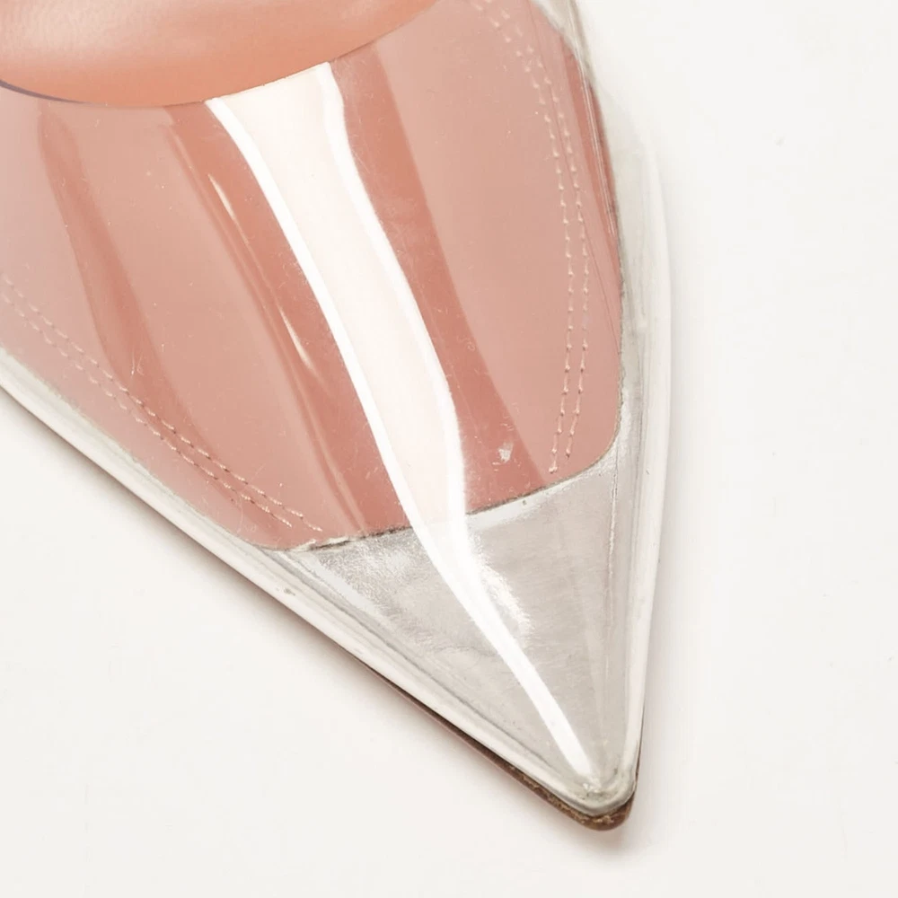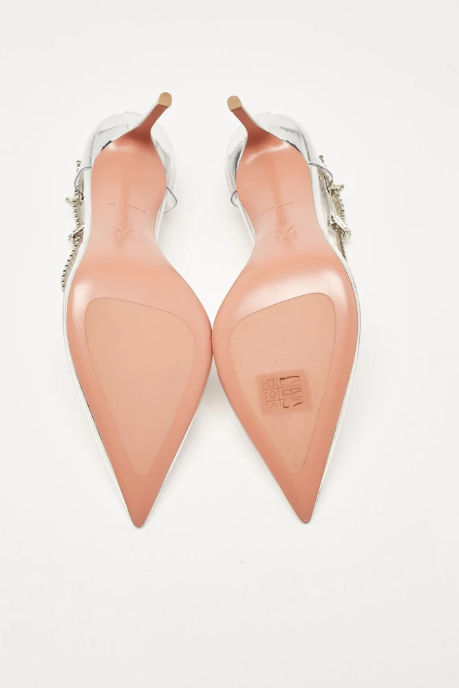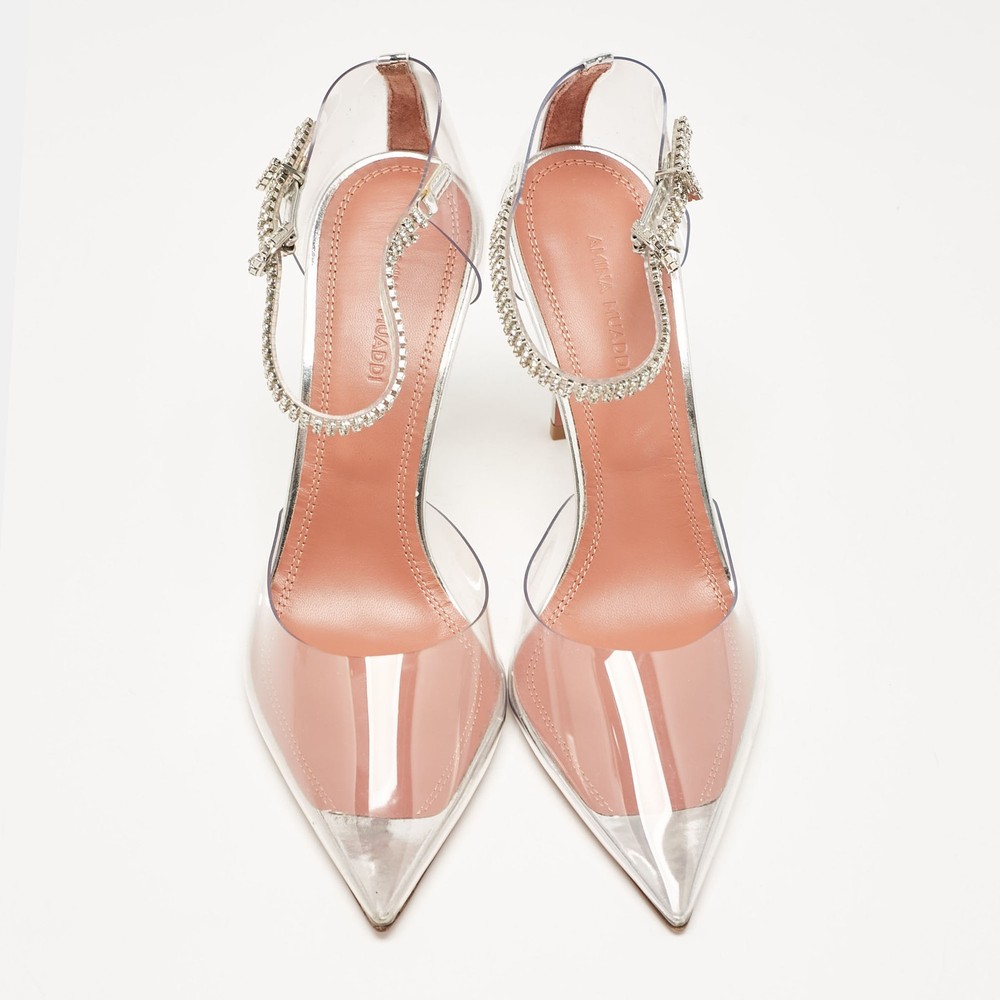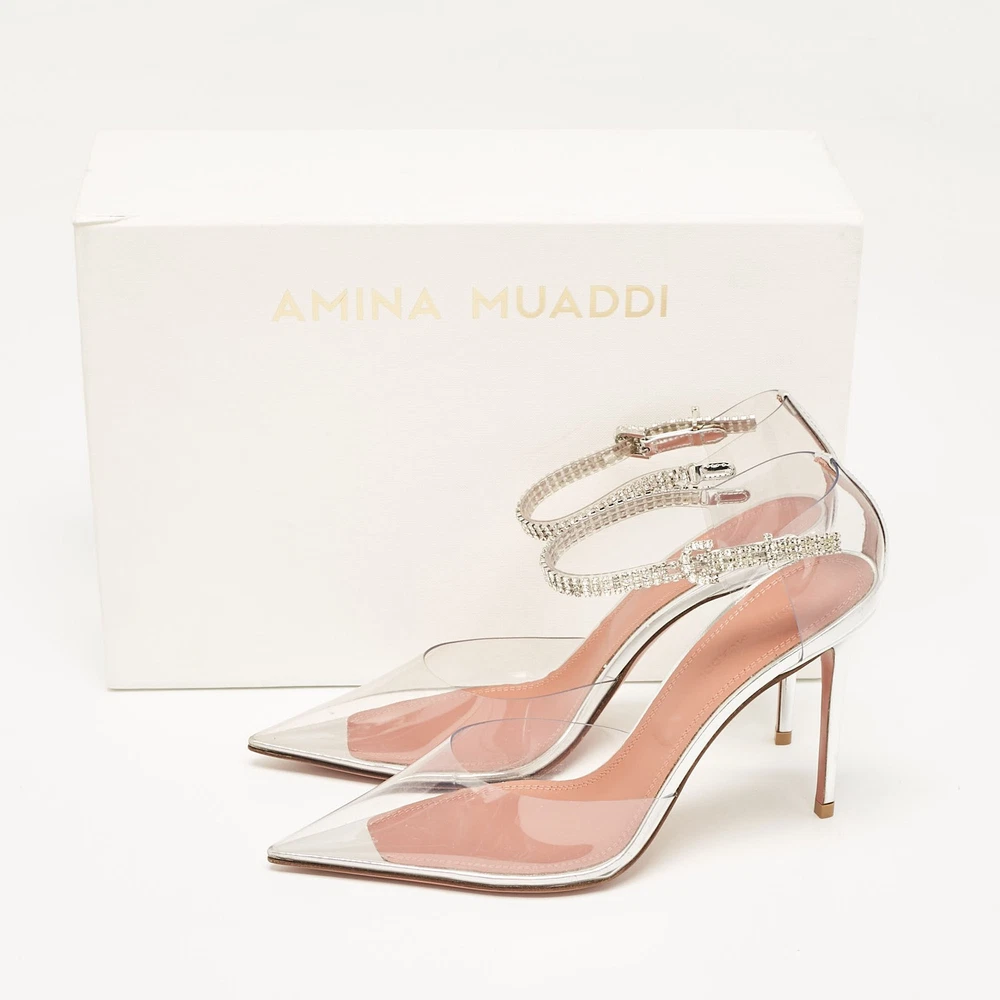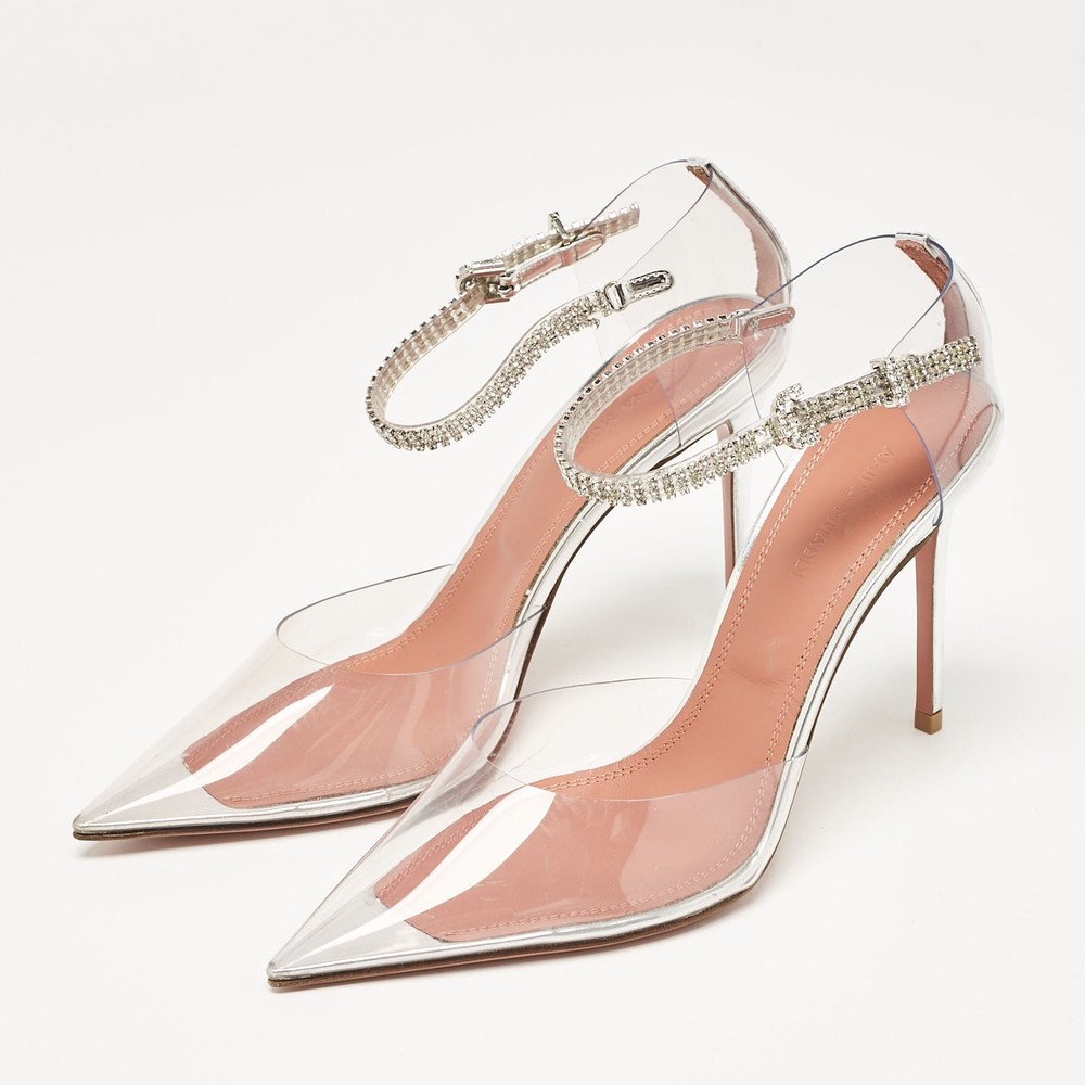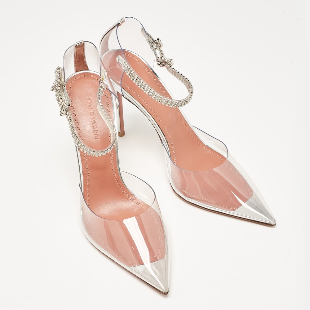 Curvaceous arches, a feminine appeal, and a well built structure define this set of Amina Muaddi pumps. Coming with comfortable insoles and sleek heels, style them with your favorite outfits.Certified by The Luxury Closet - This item has gone through a detailed authentication process overseen by our experts. We offer a lifetime guarantee of authenticity on all our items. Import duties, taxes and charges are not included in the item price. These charges are the buyers responsibility. Please check with your country’s customs office to determine what these additional cost will be prior to buying. Our eBay Store About Us Contact Us Add to Favorite Sellers Amina Muaddi Transparent PVC and Leather Ursina Pumps Size 37 $488.4 Curvaceous arches, a feminine appeal, and a well built structure define this set of Amina Muaddi pumps. Coming with comfortable insoles and sleek heels, style them with your favorite outfits. Product Details Brand Color Transparent Dimensions Material Leather, PVC Size 37 Outsole Width 8 cm Outsole Length 24 cm Heel Height 10 cm Includes Original Box Certified by The Luxury Closet This item has gone through a detailed authentication process overseen by our experts. We offer a lifetime guarantee of authenticity on all our items. How We Check The in-house team of experts at The Luxury Closet is highly trained to verify the authenticity and the condition of the luxury products. They ensure that only 100% authentic items are put on sale.The evaluation process is unique with its own mix of assessment criteria and differs according to the category. Each item is evaluated based on the following combination of hallmarks, hardware, stitching, symmetry, material, craftsmanship, stamping, codes, hologram stickers, and packaging. Our authenticators also check if the items have been modified or amended (e.g., aftermarket diamonds, replaced batteries, repaired bags, etc.) International Buyers Import duties, taxes and charges are not included in the item price. These charges are the buyers responsibility. Please check with your country’s customs office to determine what these additional cost will be prior to buying.