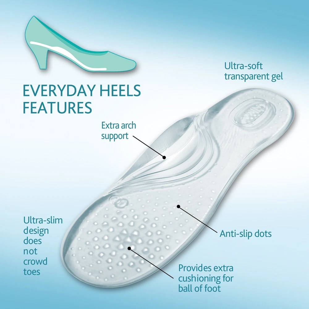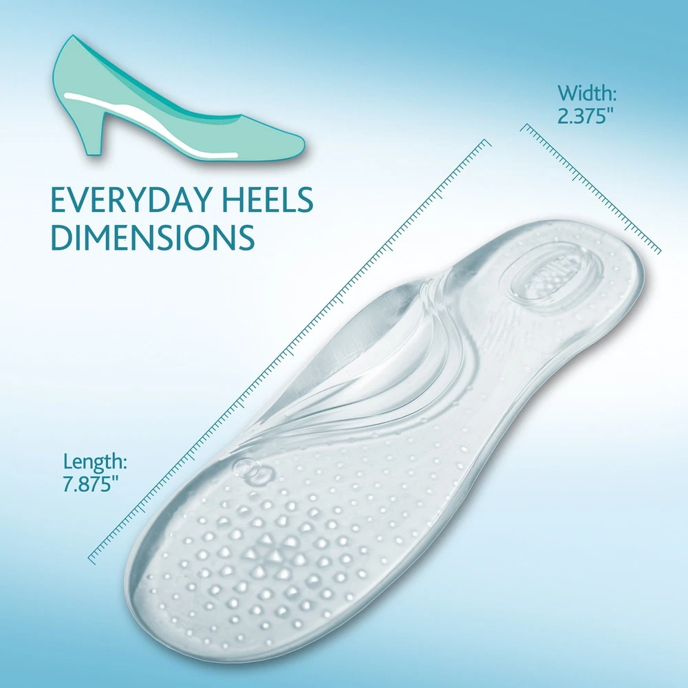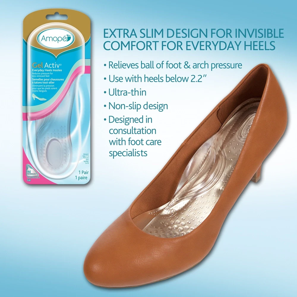 Amope GelActiv Everyday Heels Insoles for Women, 1 pair, Size 5-10 We understand that a perfect pair of high heels can make you look and feel great. But regardless of how great they look, they can start to hurt after a while and you feel like taking them off. Now you don't have to sacrifice comfort for the sake of style anymore. Introducing the latest innovation from Amopé. New Amope GelActiv Insoles are the cushioning gel insoles that transforms fashion heels into your favorite pair of comfy sneakers. These insoles for women are made of soft, elastic gel to help relieve pressure and discomfort from your feet to keep you going all day. They sit perfectly between the slope of your shoes and sole of your foot to provide maximum level comfort and support that you would come to expect a premium womens insoles. Amope gel insoles and shoe inserts were designed and assessed in consultation with podiatrists and foot care specialists. Powered by GelActive technology, they provide superior cushioning and shock absorption for lighter-feeling feet all day. Now looking great and feeling great in your high heel shoes are not mutually exclusive. Tried gel insoles before and didn’t like them? These womens insoles are different. Ultra thin insoles won’t crowd your toes - 25% thinner than Dr Scholls Dreamwalk Insoles Women. Transparent and discreet shape means they won’t show. Unique non-slip adhesion gel ensure the insole and your feet stay firmly in place yet can be removed/reapplied. Why AMOPE? Ultra-thin & discreet shape made from soft elastic gel to help relieve pressure Directions: Insert insole so that the raised area of the insole makes direct contact with the natural arch of your foot. Reposition as needed Suggested For: Women’s heels below 2.2” ranging from size 5-10 Reuse: Pull insole gently out of the shoe. Then, re-insert into a newly desired everyday heel Non-Slip: Adhesion gel to help ensure that your feet and the insole stay firmly in place Shipping from the USA All of our products are shipped from the USA, ensuring quick delivery to your destination. Payment We offer the following payment methods: PayPal, credit card, bank transfer, and eBay's secure payment system. Free Shipping & Free Returns Shipping within the USA is FREE. Additionally, any return is absolutely free for you. Risk-Free Purchase You have the option to return an item within 30 days without any justification. We cover the return shipping costs! Fast Shipping We ship immediately upon receipt of payment. Generally, the package is delivered within 2-3 days in the USA. If it takes longer, we will contact you. Quality and Costs Made in Europe, USA, China No customs fees or additional charges Total satisfaction guarantee Invoice with declared VAT available upon request in .pdf format Feedback Your feedback is very important to us. After you pay for your purchase, you will automatically receive positive feedback from us.