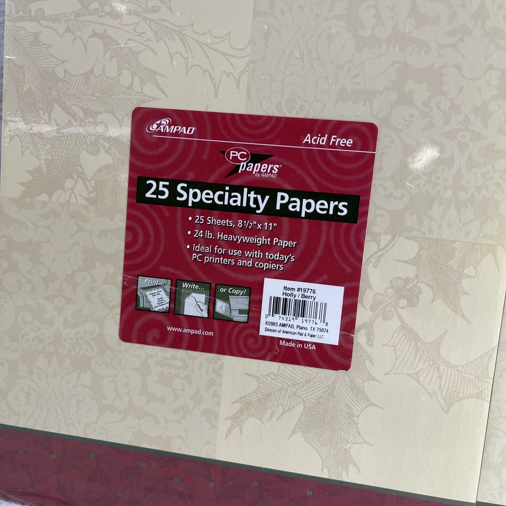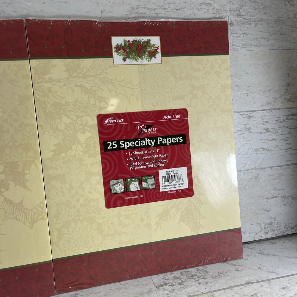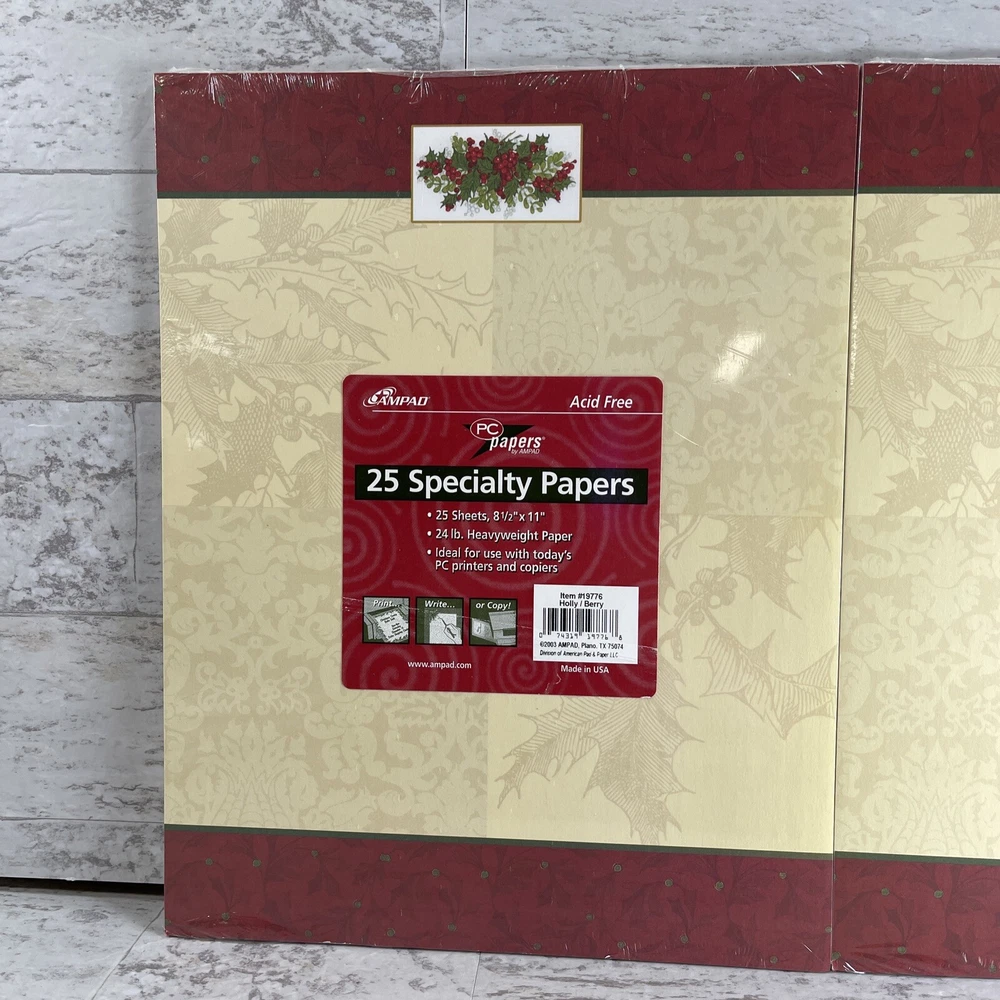 Ampad Set of 2 Acid Free Heavyweight Christmas Specialty Paper 8.5" x 11" New.