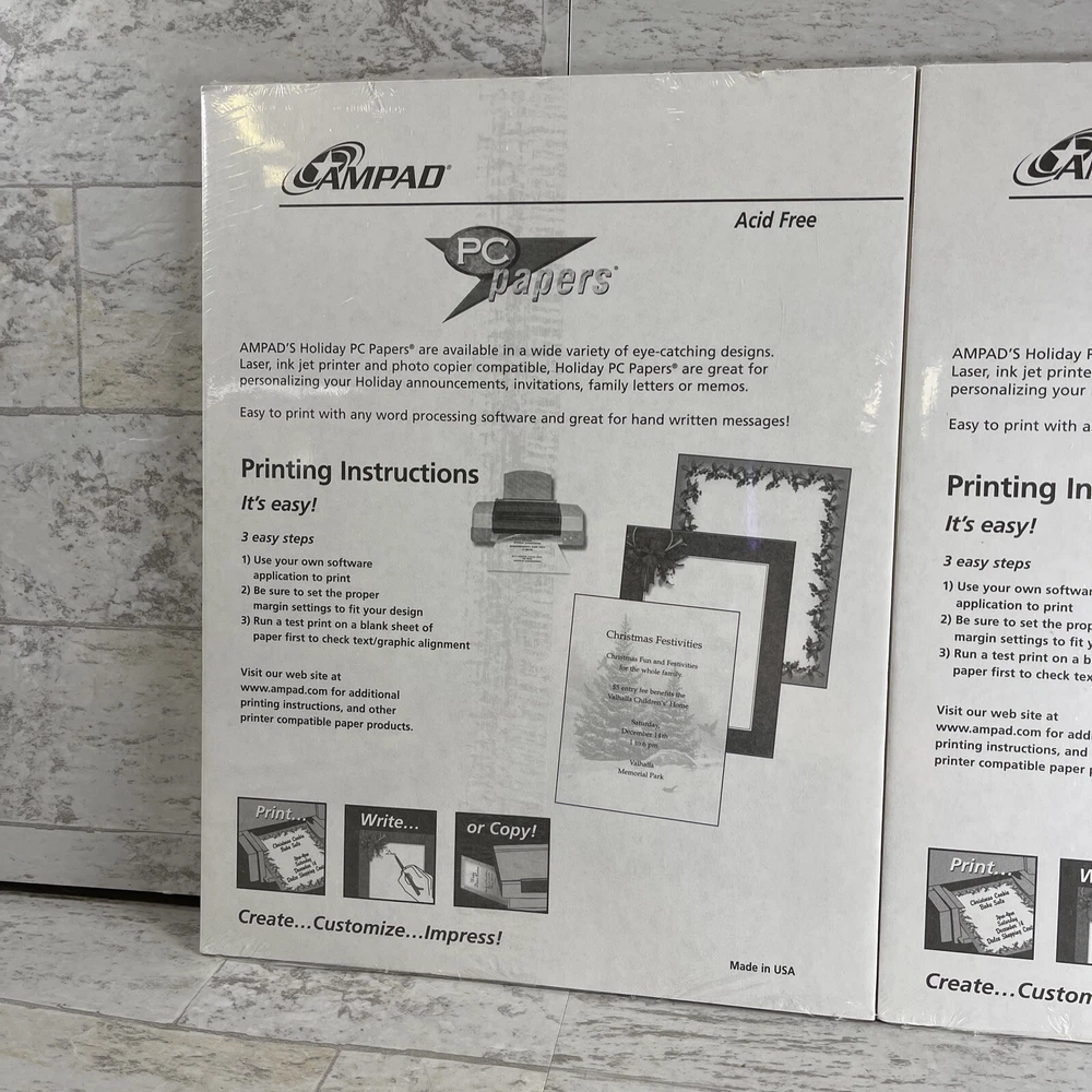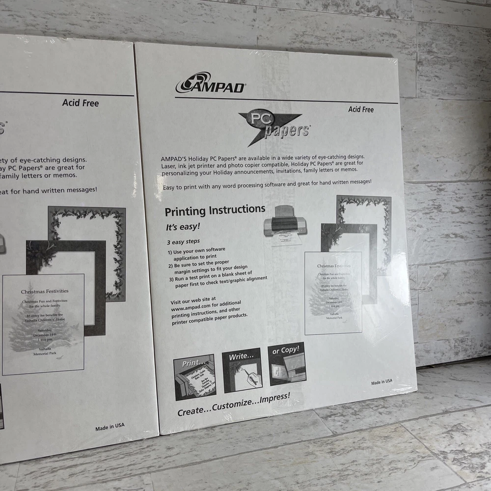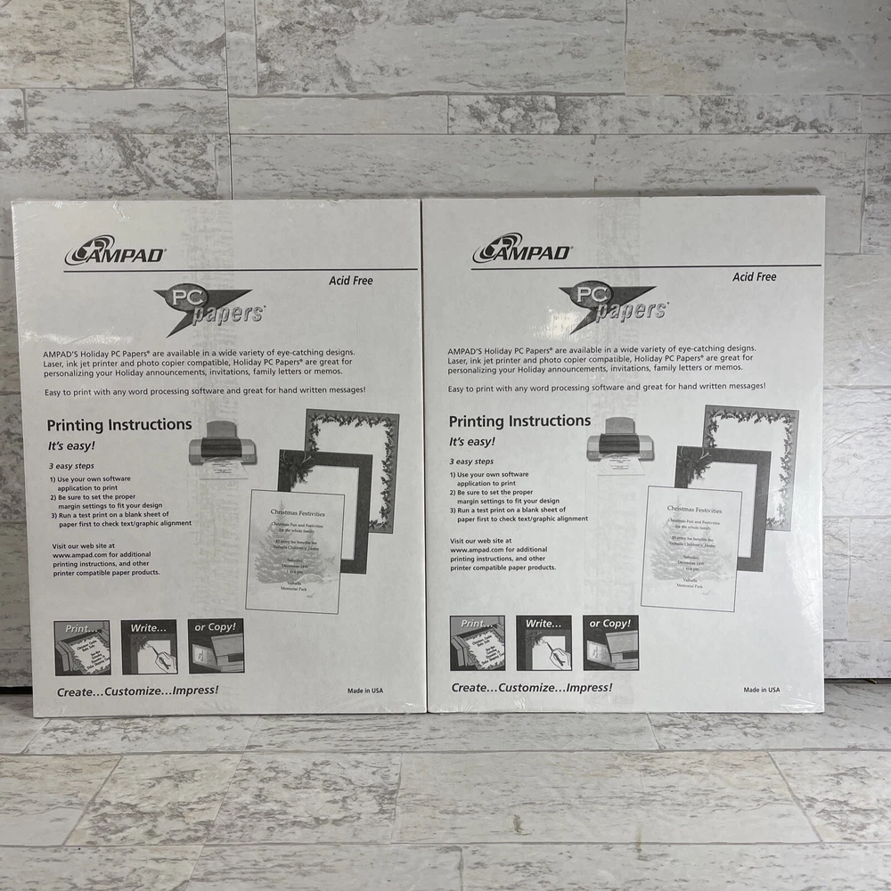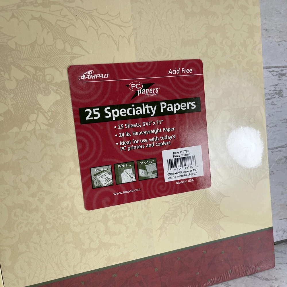 Ampad Set of 2 Acid Free Heavyweight Christmas Specialty Paper 8.5" x 11" New.
