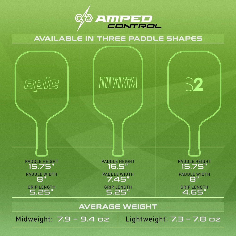 In 2017, Selkirk revolutionized pickleball with the original AMPED pickleball paddle, offering power and control through the industry's first thick innovation that came in at ⅝” when all other paddles were ½” or less. Now, the AMPED Control evolves the game further with a next-generation Ultra Durable surface coating for long-lasting spin, while preserving the classic AMPED feel loved by players. Crafted to deliver control and spin in one uncompromising paddle, the AMPED Control offers a familiar and consistent feel of a control paddle, alongside long lasting spin and next level technology to skillfully win points. 【 REVOLUTIONARY PERFORMANCE 】 More than just a brand! We are pickleball. Designed, tested, and trusted by the pros, the AMPED Control is engineered with cutting-edge materials and technology to push your game to the next level. 【 NEXT-GEN FIBERFLEX+ FACE – CONTROL REDEFINED 】 Experience a leap forward in paddle technology with the FiberFlex+ fiberglass face, delivering elite-level touch and responsiveness. Whether at the baseline or dominating the net, precision is now second nature. 【 ULTRA DURABLE SPIN COATING 】 Game-changing micro-textured surface technology creates explosive spin and control, gripping the ball for longer-lasting spin potential. Your opponents won’t know what hit them. 【 THE ULTIMATE SWEET SPOT 】 Built for unmatched consistency and finesse, the X5 polypropylene honeycomb core dampens vibrations while expanding the precision-engineered sweet spot. The result? A softer touch with deadly accuracy. 【 ENGINEERED FOR CHAMPIONS 】 Featuring the low-profile EdgeSentry Edgeguard for durability and balance, the AMPED Control is designed to outlast and outperform. Backed by Selkirk’s Limited Lifetime Warranty, this is a paddle built for peak performance and unstoppable play.