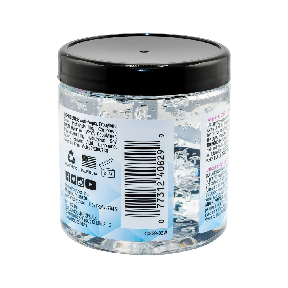 Product Description Ampro Clear Ice Ultra Hold Styling Gel for Resistant Hair Textures 8.8oz (4 Pack) Clear Ice Ultra Hold Protein Styling Gel is a vegan, alcohol-free styling gel designed to provide ultra-hold for even the most resistant hair textures. The updated formula is creamy smooth, making it easy to distribute through hair and perfect for layering. With soy protein that bonds with hair’s natural amino acids, this gel may help strengthen hair, encourage growth, and reduce breakage. Additionally, special emollients help protect hair during thermal styling. This unisex product is suitable for both women and men. Ultra-hold styling gel gives the extra control needed for the most resistant hair textures. Protein rich formula provides thermal protection and helps strengthens hair Non-flaking styling gel adds a non-greasy, healthy-looking shine to all hair textures and hair colors. Vegan formula is alcohol and paraben free Clear Ice Ultra Hold Gel is ideal for men and women with textured hair who need extra control Alcohol-free formula that adds beautiful shine. Great for sculpted hair styles. Moisturizing Unisex Ingredients Aqua, Propylene Glycol, Triethanolamine, Carbomer, DMDM Hydantoin, VP/VA Copolymer, Fragrance, Hydrolyzed Soy Protein, Benzoic Acid, Limonene, Coumarin, Citral, Violet 2/CI60730